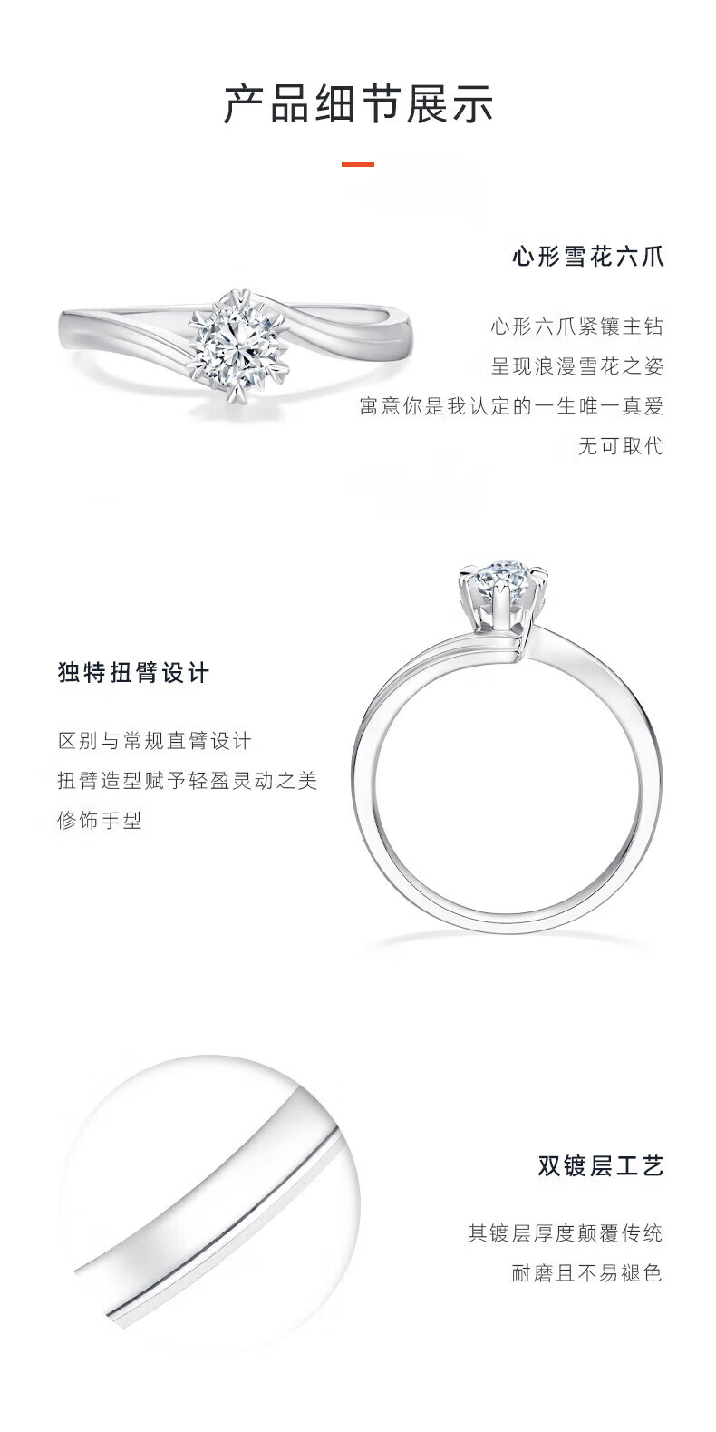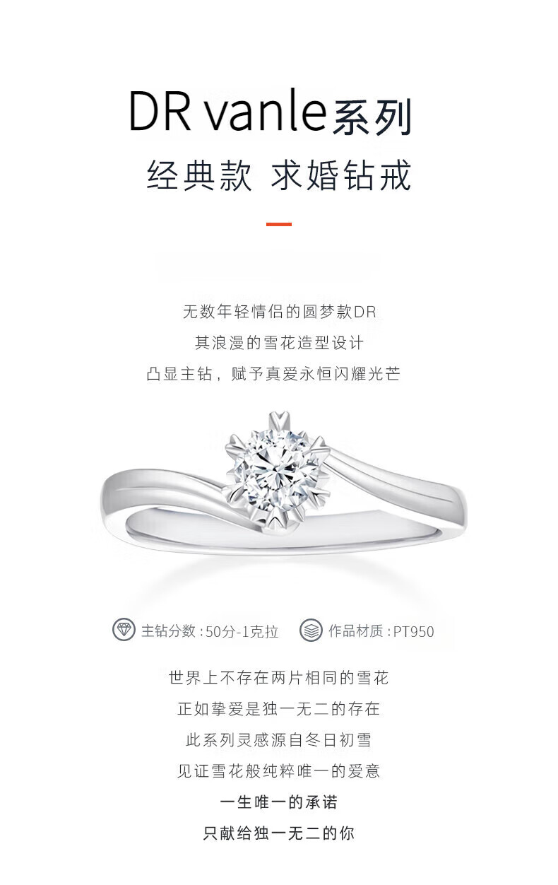 DR Proposal Diamond Ring K Gold/PT950 Platinum Elegant Snowflake Moissanite Diamond Ring Wedding Valentine's Day Birthday Gift 50 Points D-E Color/Extreme White Gift Box + Certificate PT950 Live Mouth (Size Adjustable)