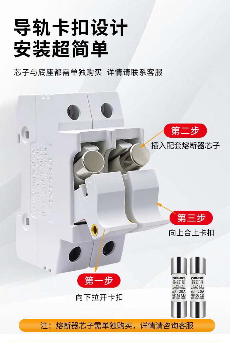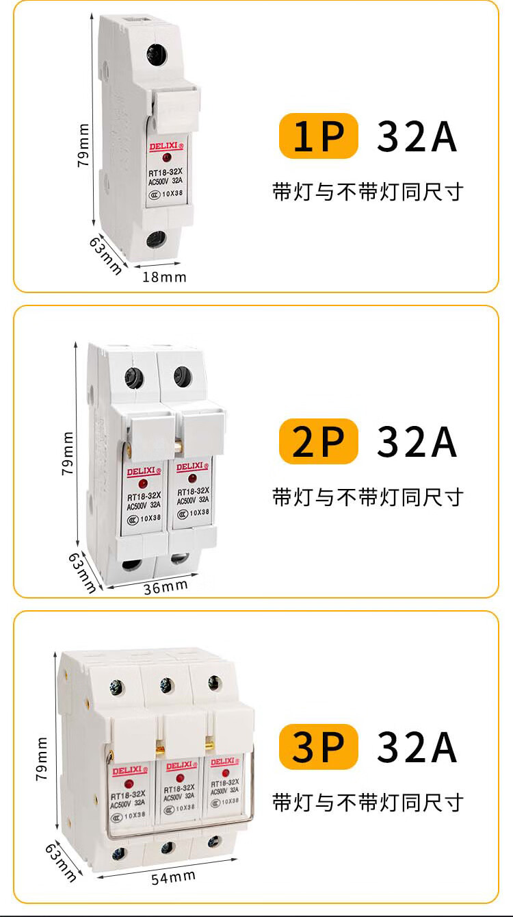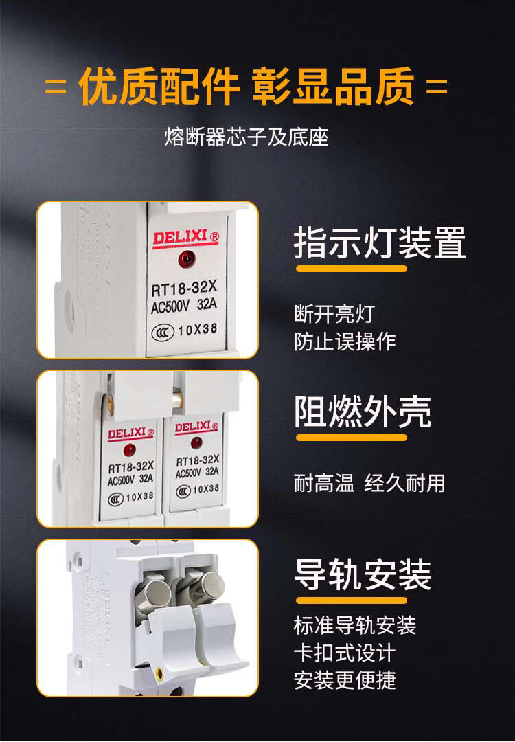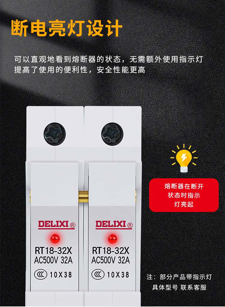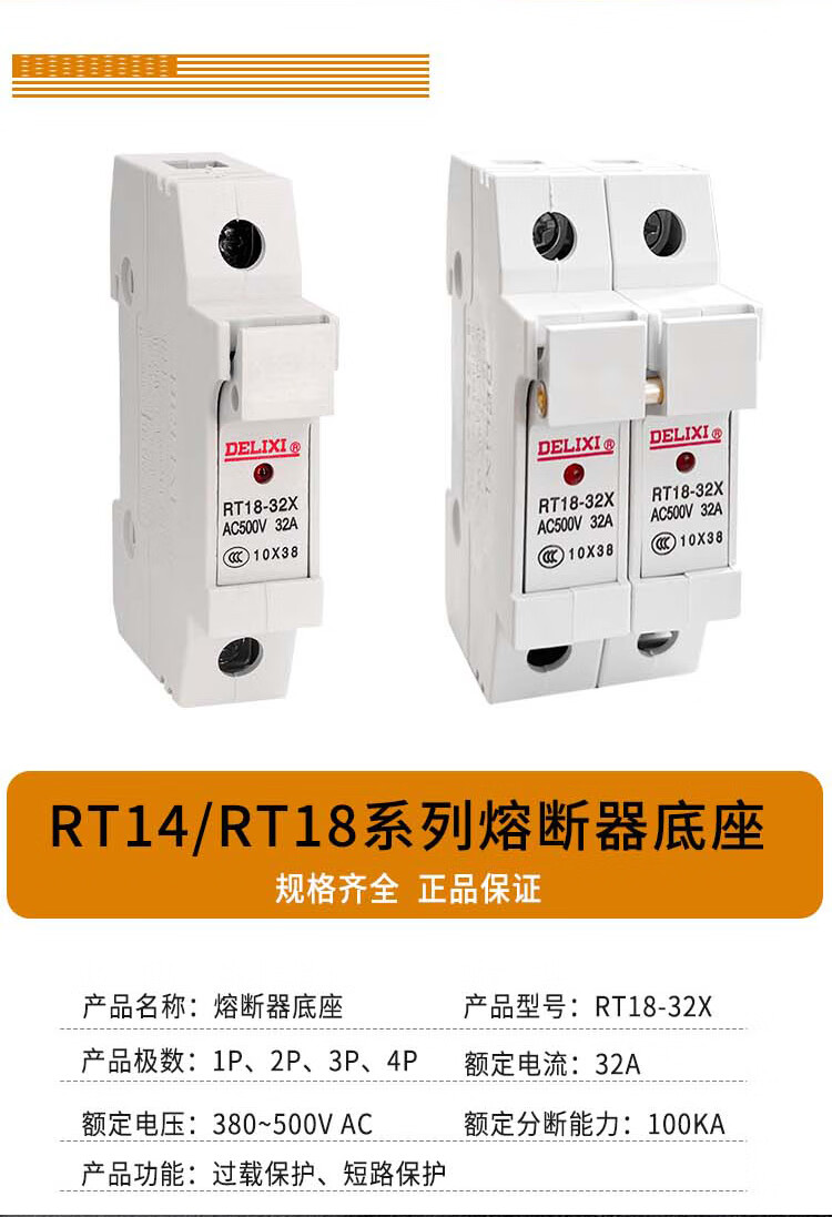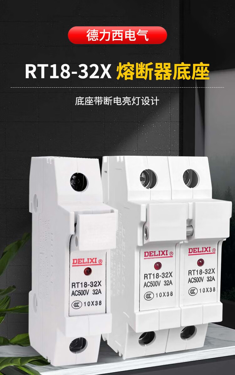 Delixi fuse base cylindrical cap fuse base X1P with light without fuse core RT18-32X 4P base