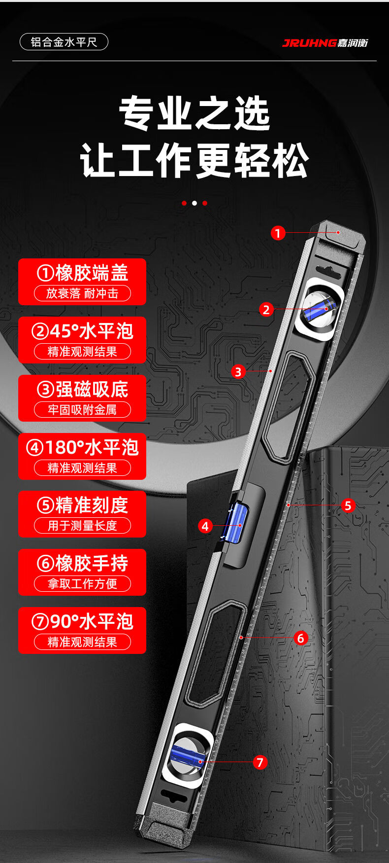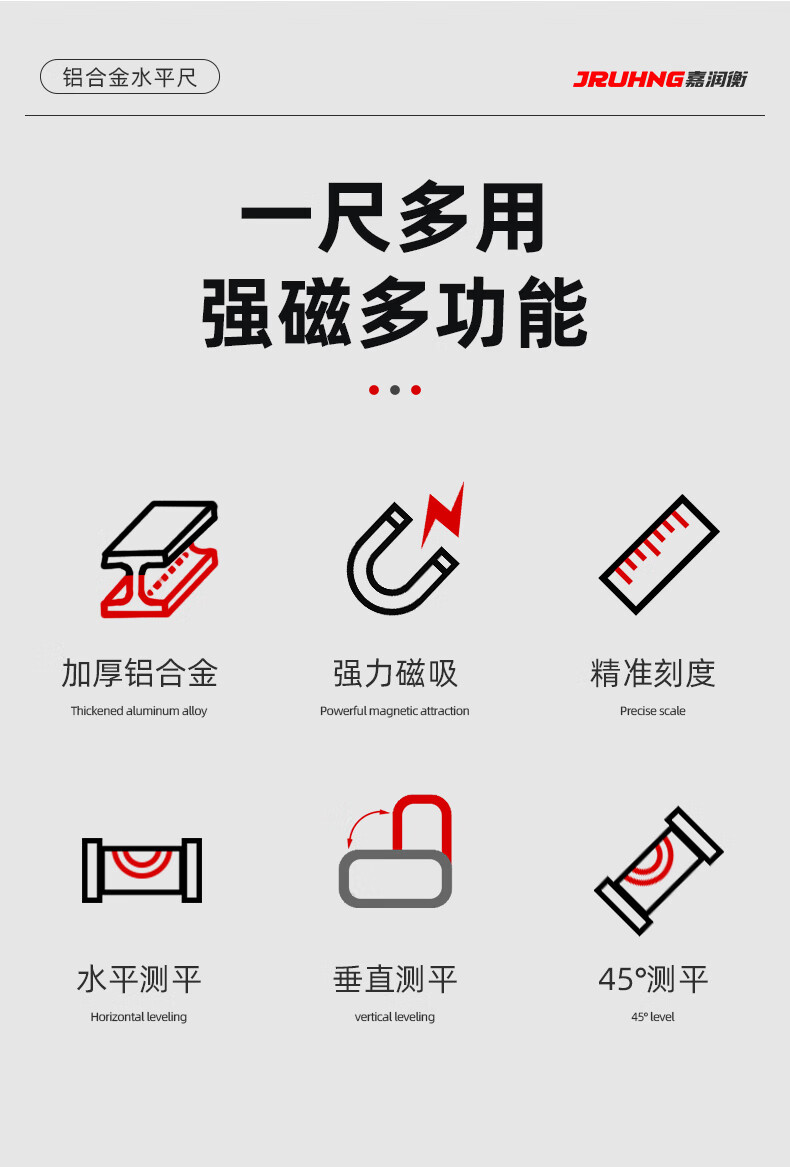 Huili's high-precision solid cast aluminum level ruler with strong magnet for household mini level aluminum alloy anti-fall balancer flagship model aluminum alloy solid 80cm with strong magnet