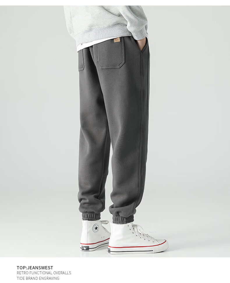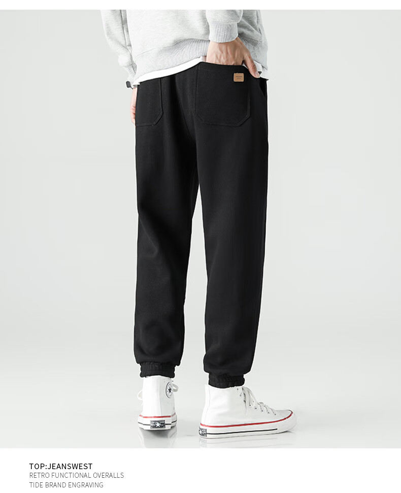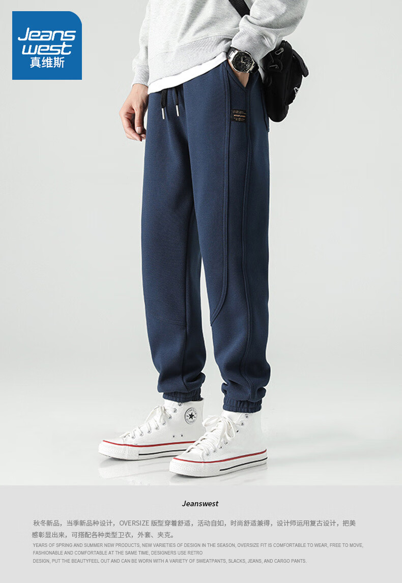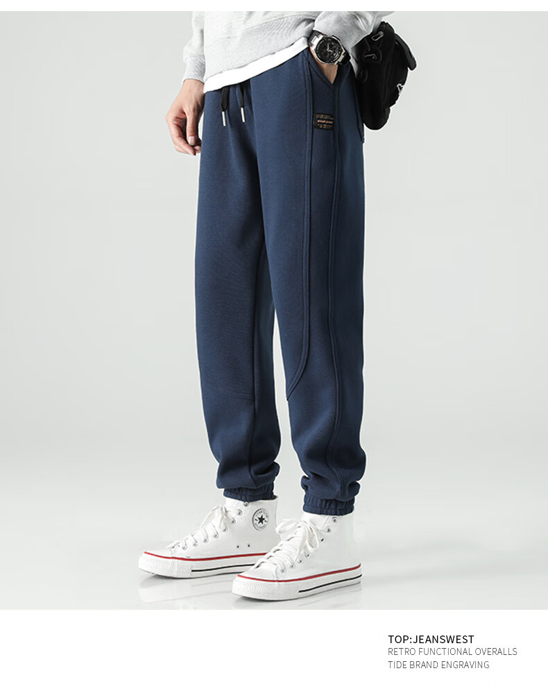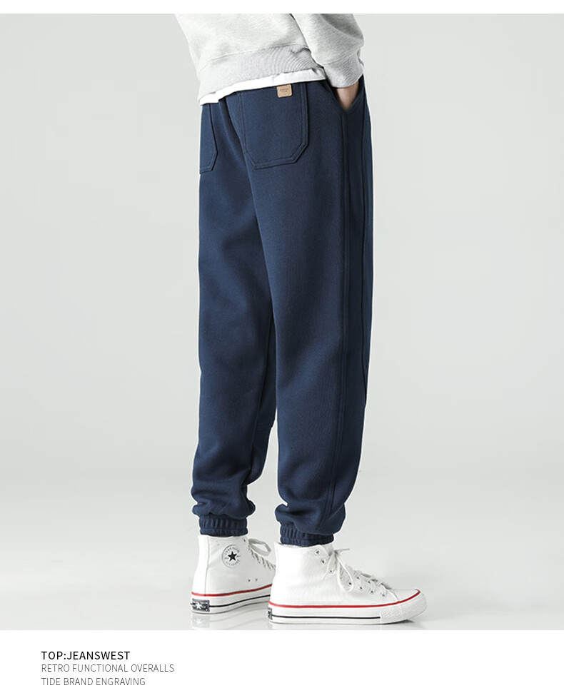 Jeanswest Velvet Thickened Men's Pants 2025 Autumn and Winter Tie-Leg Sweaters Loose Sports Pants Casual Pants K6136 Navy Velvet L