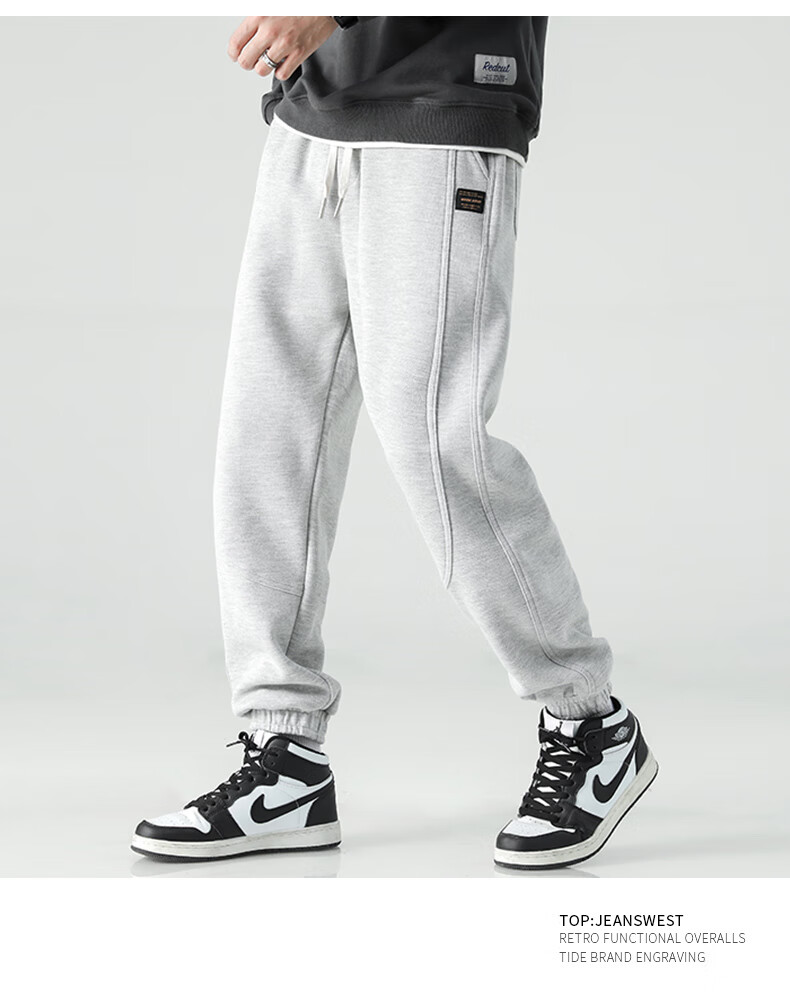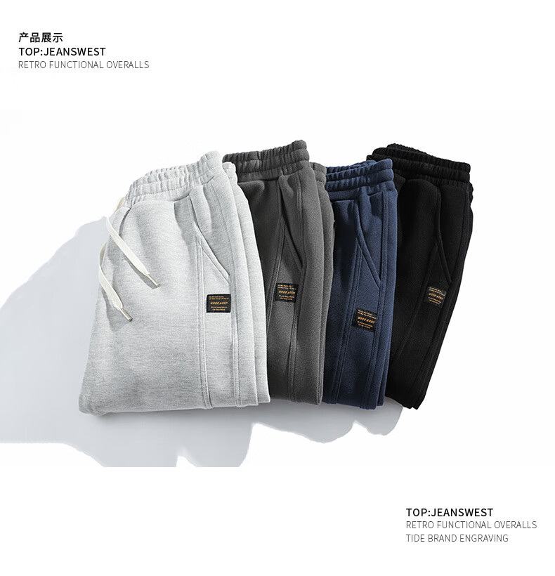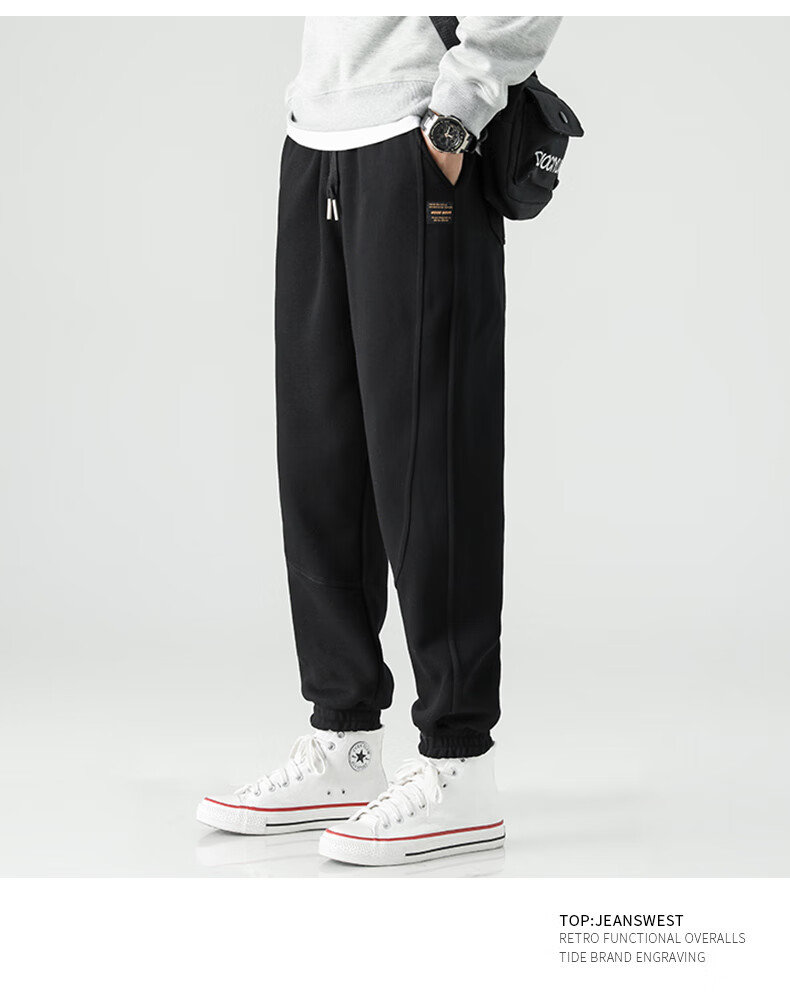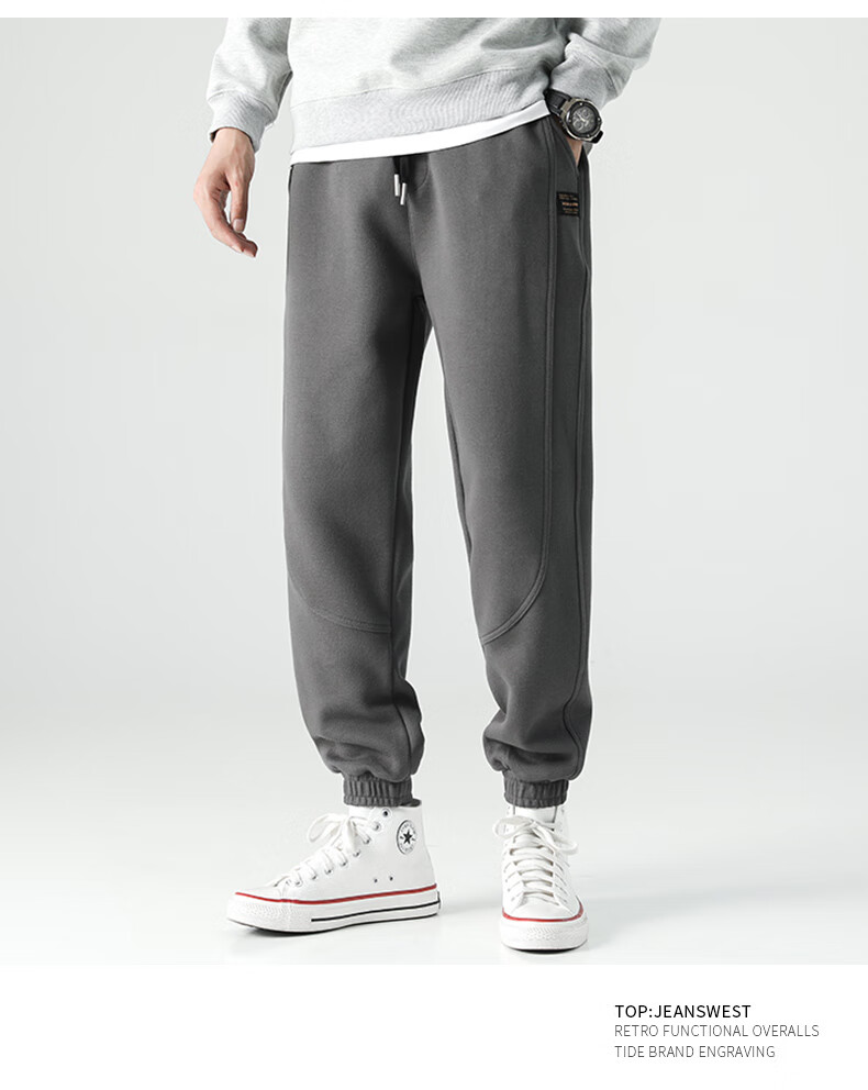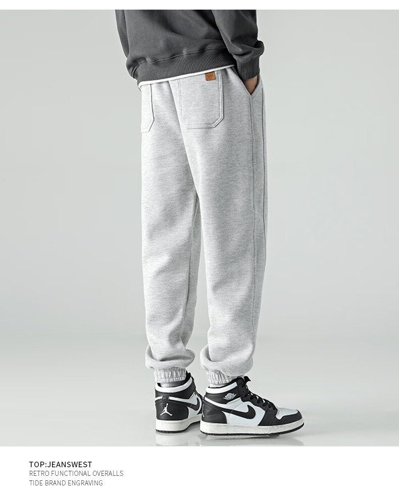 Jeanswest Velvet Thickened Men's Pants 2025 Autumn and Winter Tie-Leg Sweaters Loose Sports Pants Casual Pants K6136 Navy Velvet L