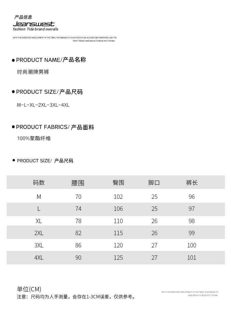 Outseam (cm) 99 cm 101.5 cm 104 cm 106.5 cm 109 cm