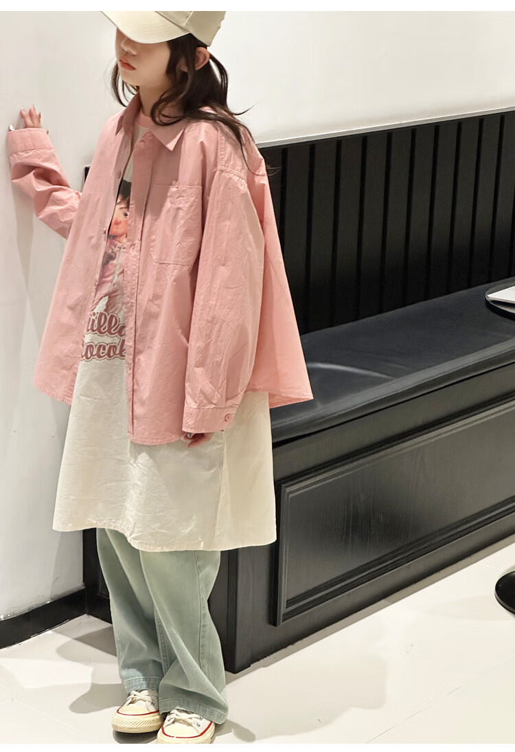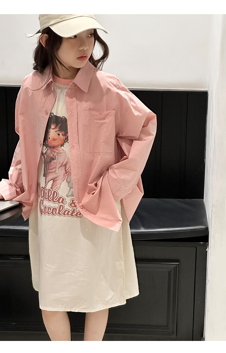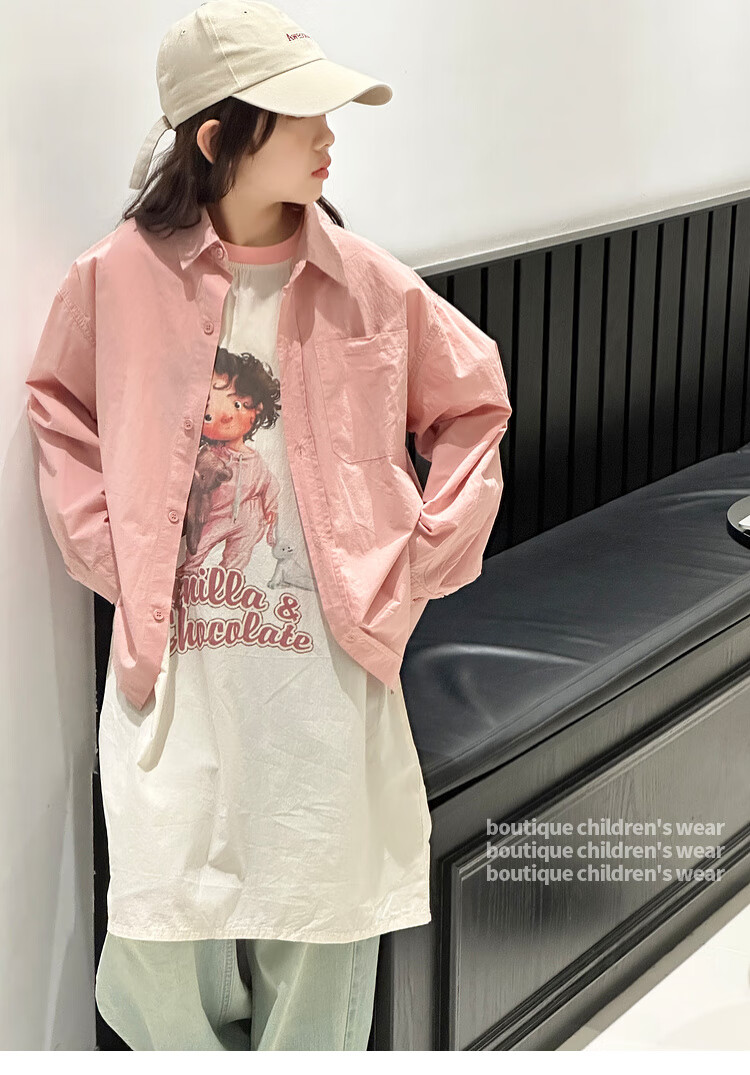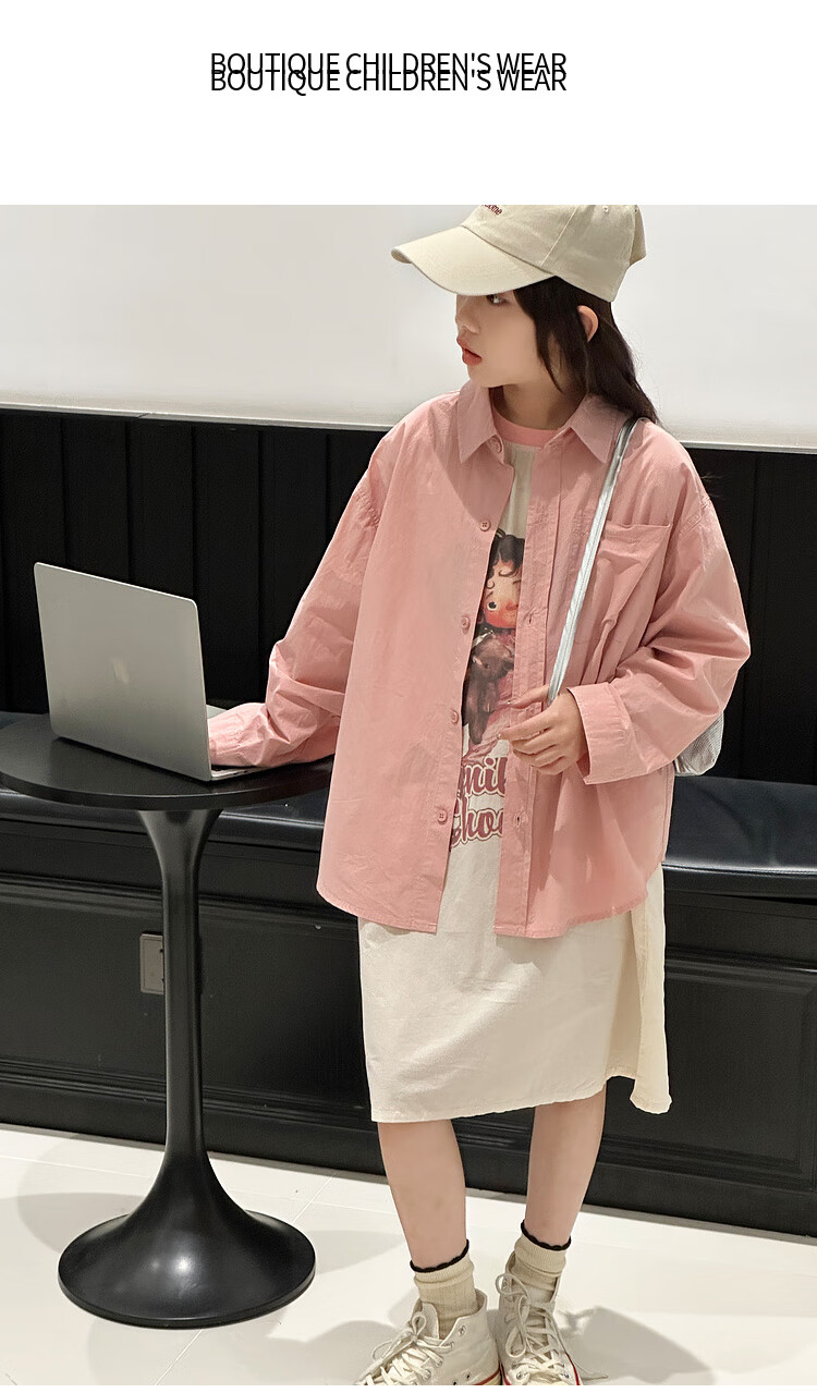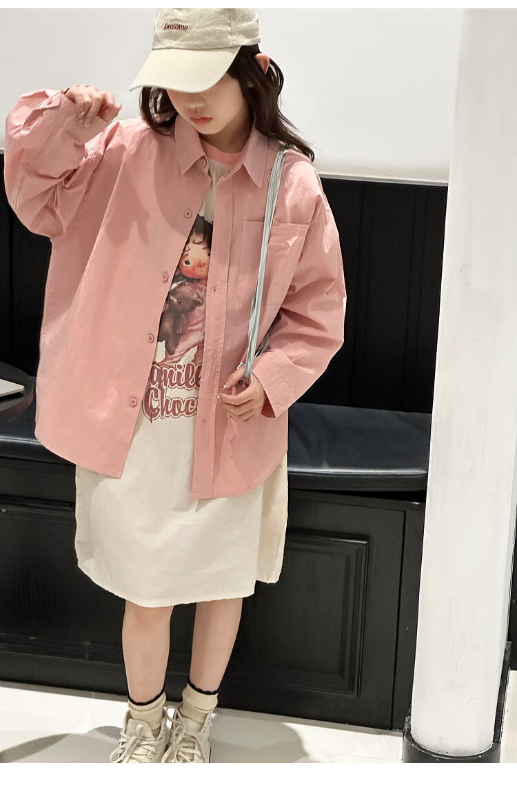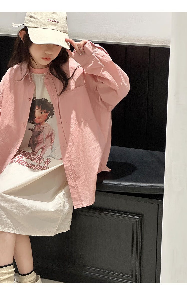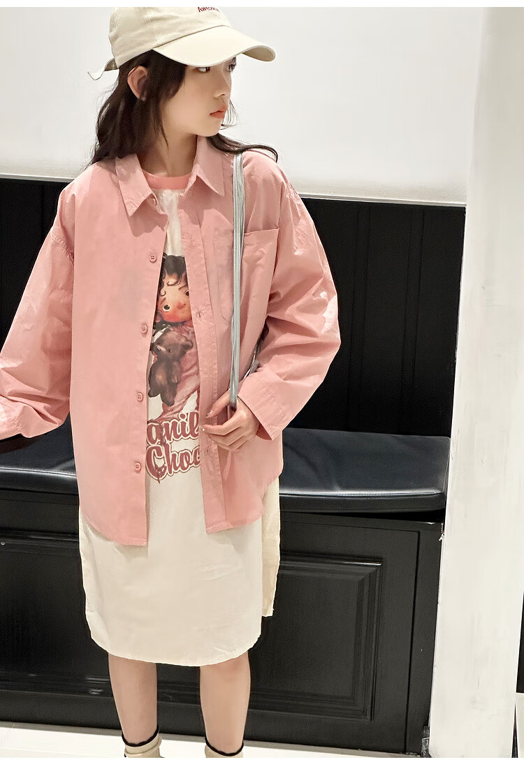 BJT Girls' Long Sleeve Shirt 2025 New Big Children's Spring and Autumn Style Fashionable Shirt Children's Autumn Casual Shirt Pink 130 cm