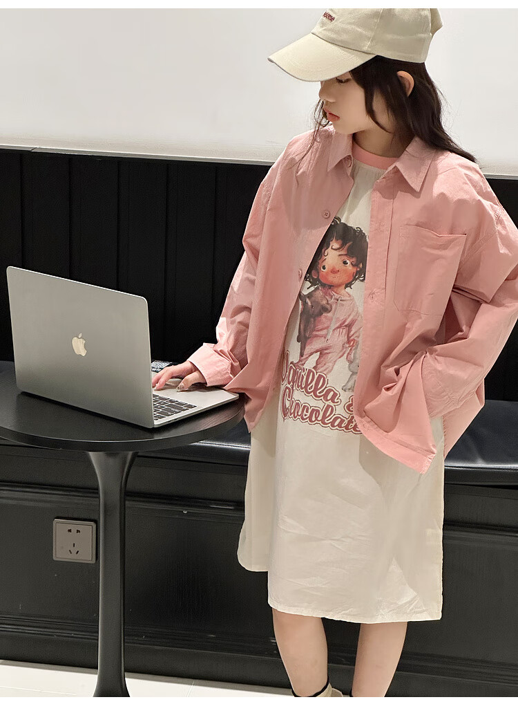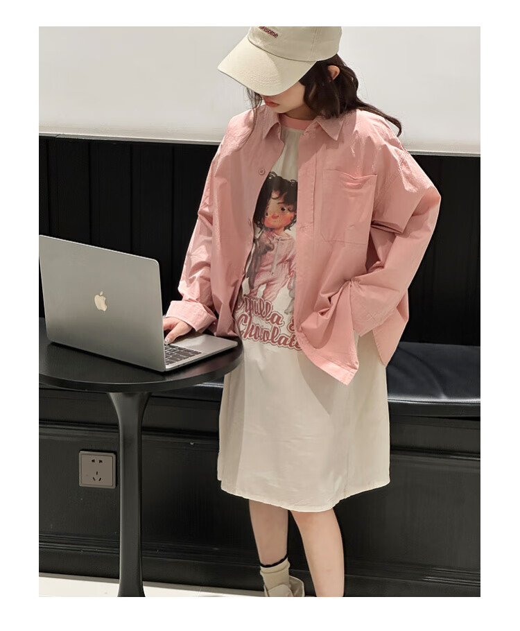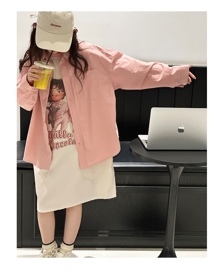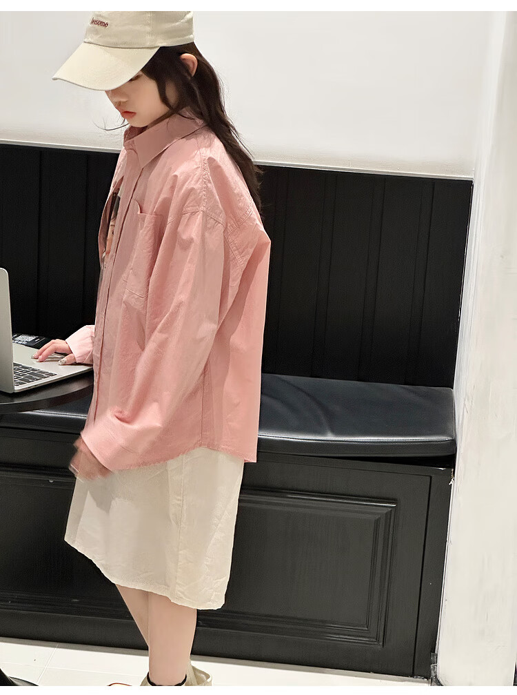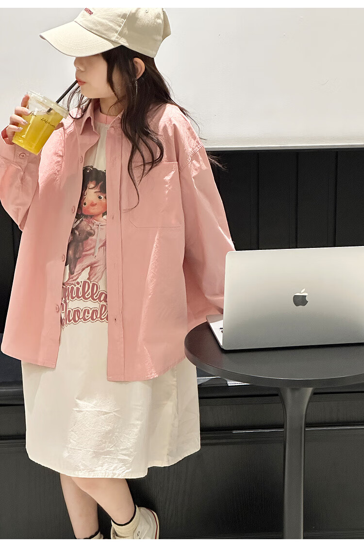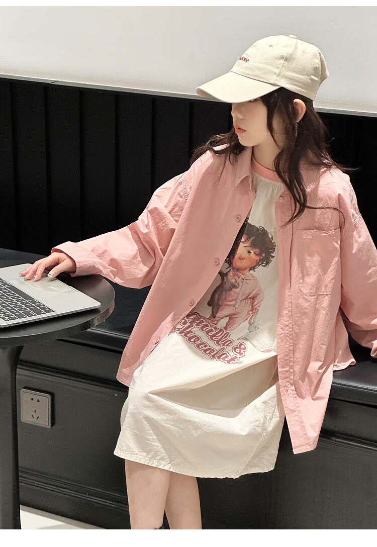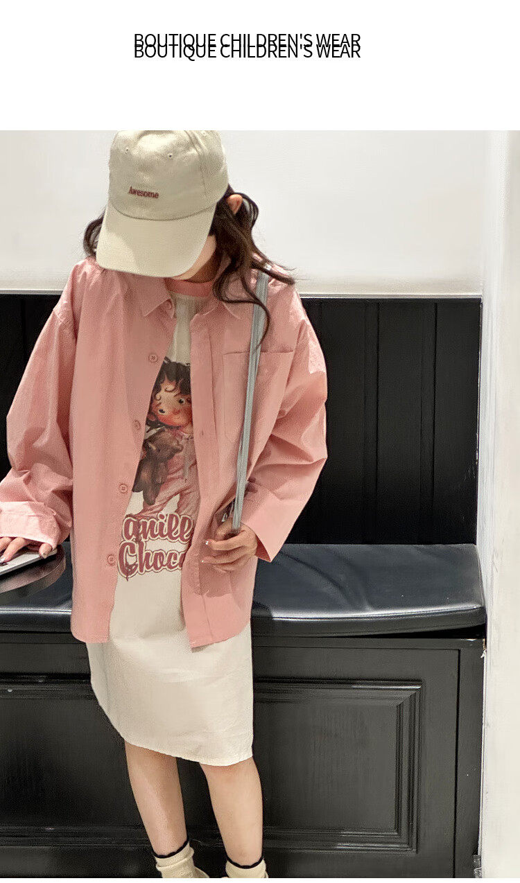 BJT Girls' Long Sleeve Shirt 2025 New Big Children's Spring and Autumn Style Fashionable Shirt Children's Autumn Casual Shirt Pink 130 cm