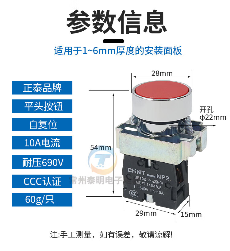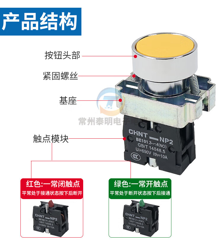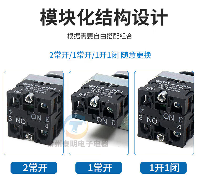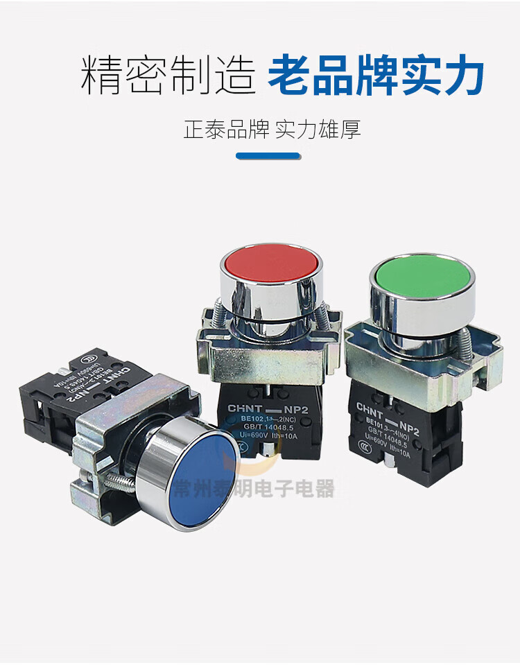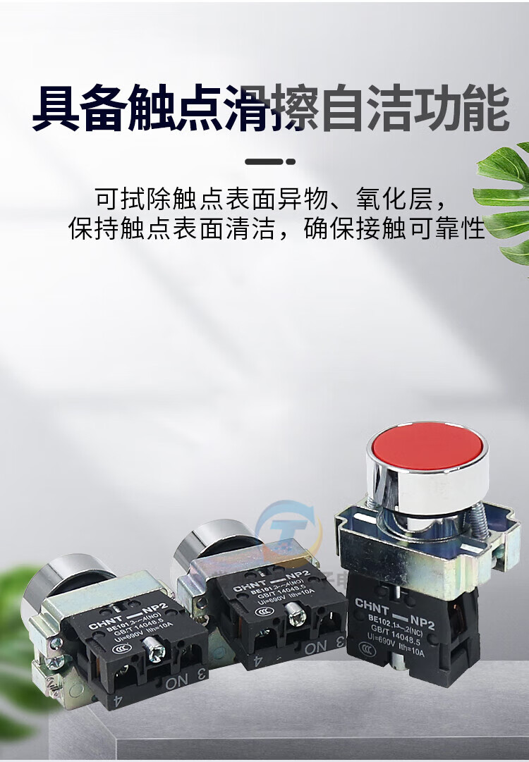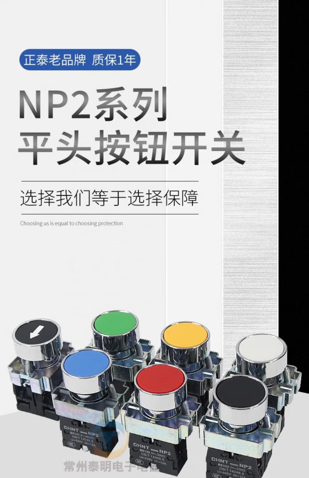 Chint NP2-BA31 BA42 BA51 21 61 start stop self-resetting flat head push button switch 22 aperture green one open and one closed