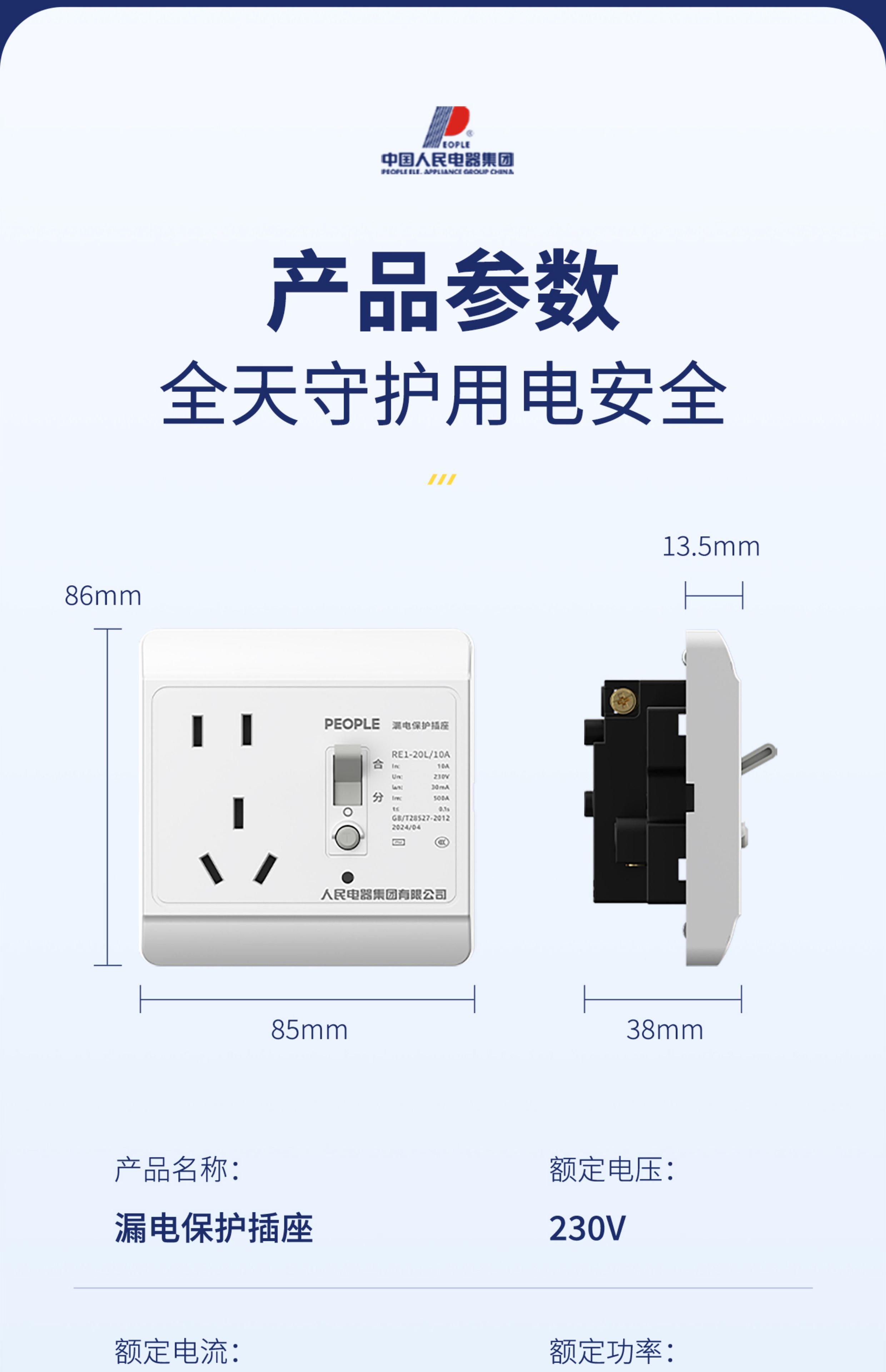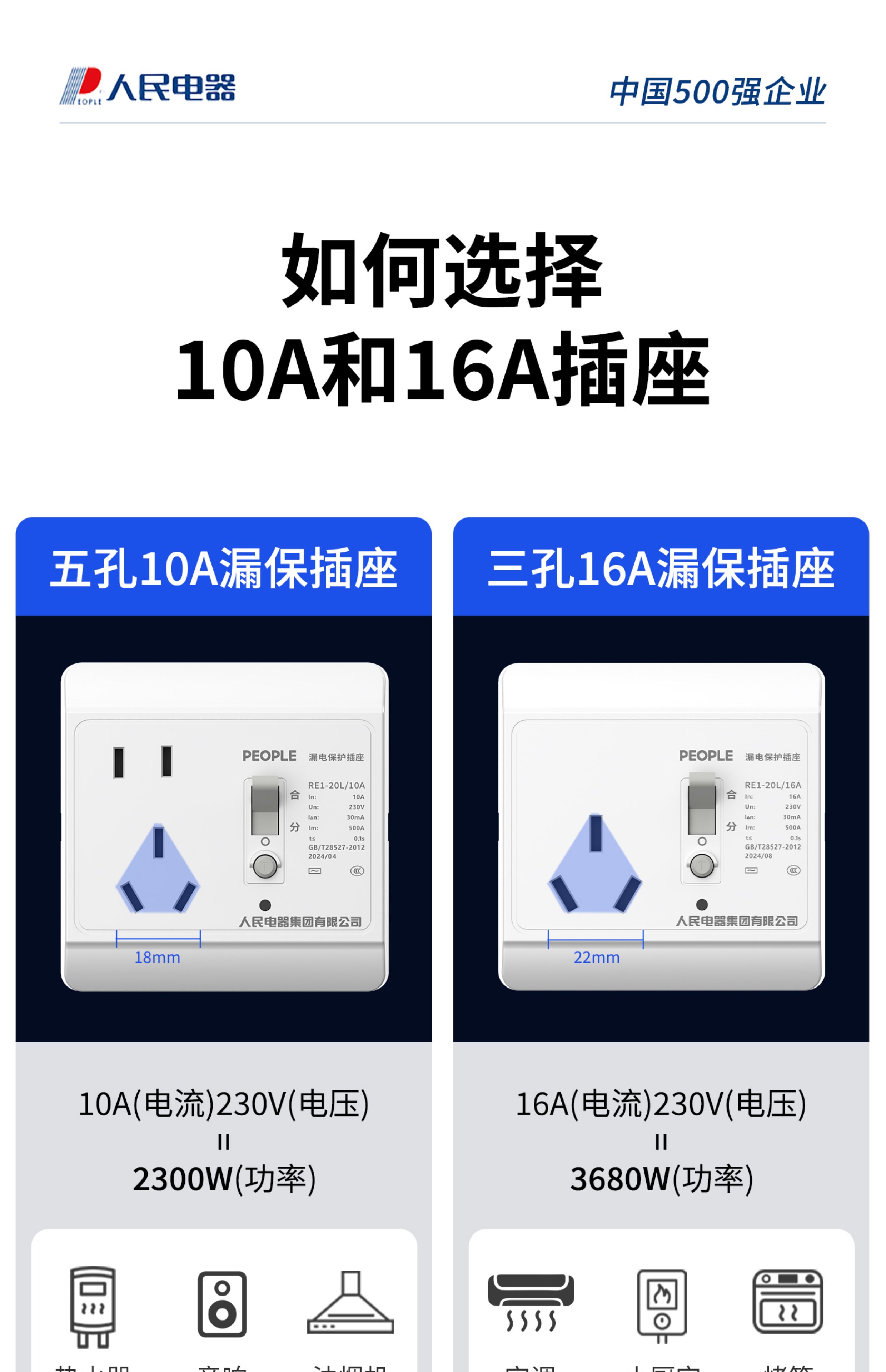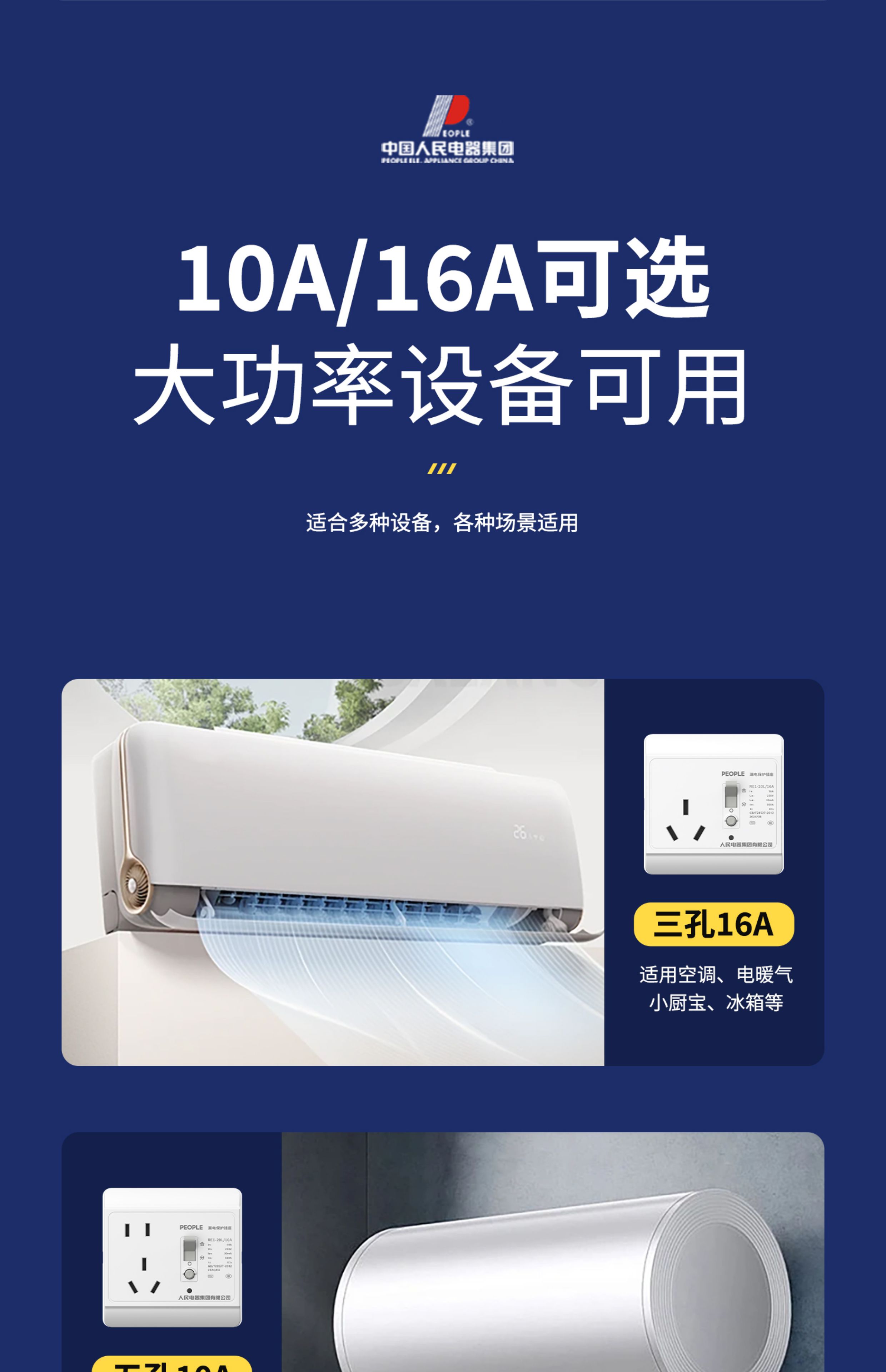 Shantou Lincun People's Electrical Appliances Type 86 air-conditioning water heater special leakage protector leakage switch 32a household air switch socket five-year warranty | 10A five-hole surface installation | starry sky gray