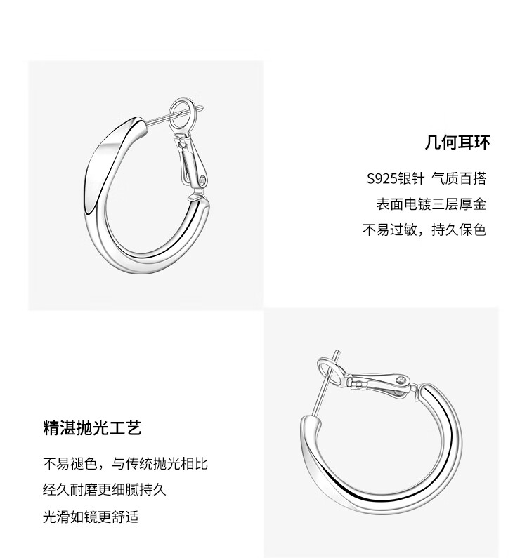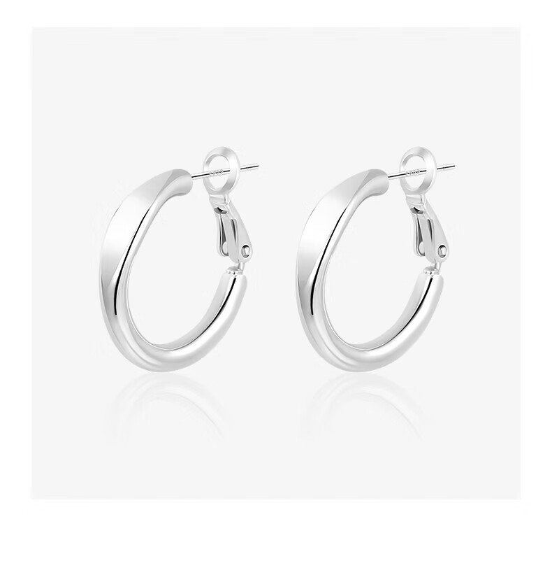 Lanshu (LANSHU) plain hoop earrings for women, simple niche hoop earrings, personalized ear hoops for sleeping, no need to remove, cool style, fashionable silver needle earrings, geometric hoop earrings, 925 silver needles