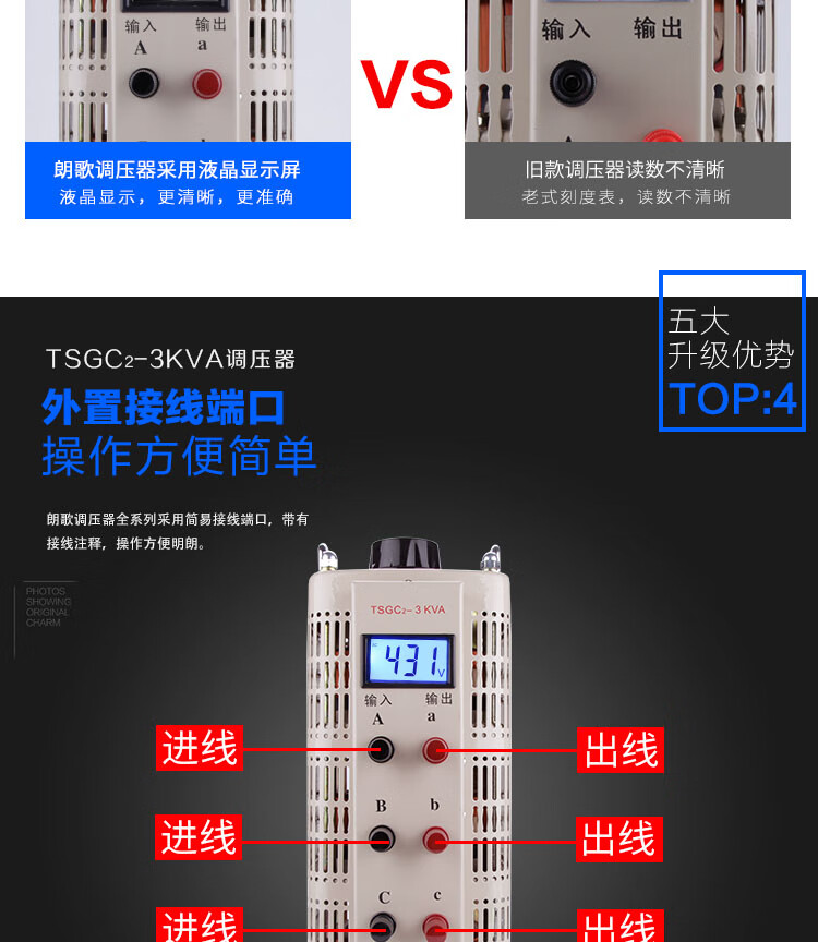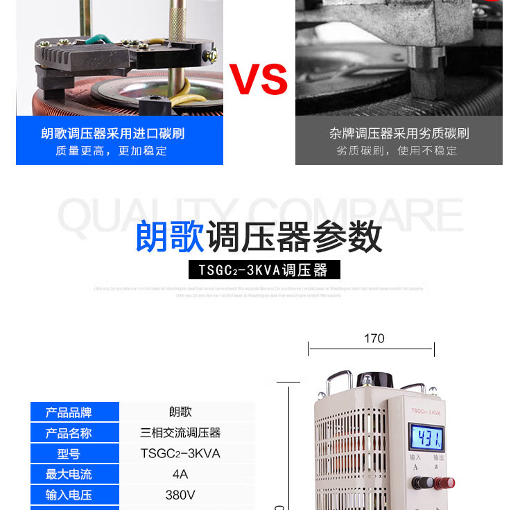 Langge three-phase 380V voltage regulator 1.5KW3K6K9KW20KVA AC power supply 0-430V adjustable transformer TSGC2-1500VA output 0-430V