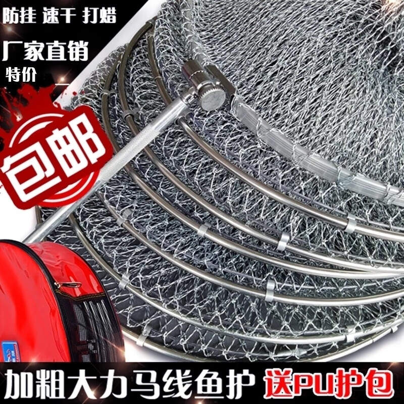 Baichao special hand-woven Dalima stainless steel fishing protection, hanging quick-drying fish storage net pocket fish basket fishing gear fish protection 1cm 1m mouthless cloth gray Dalima 25 caliber 1 meter long protective bag + gear needle