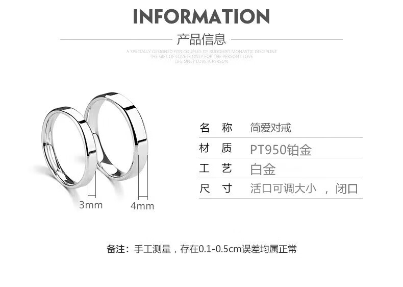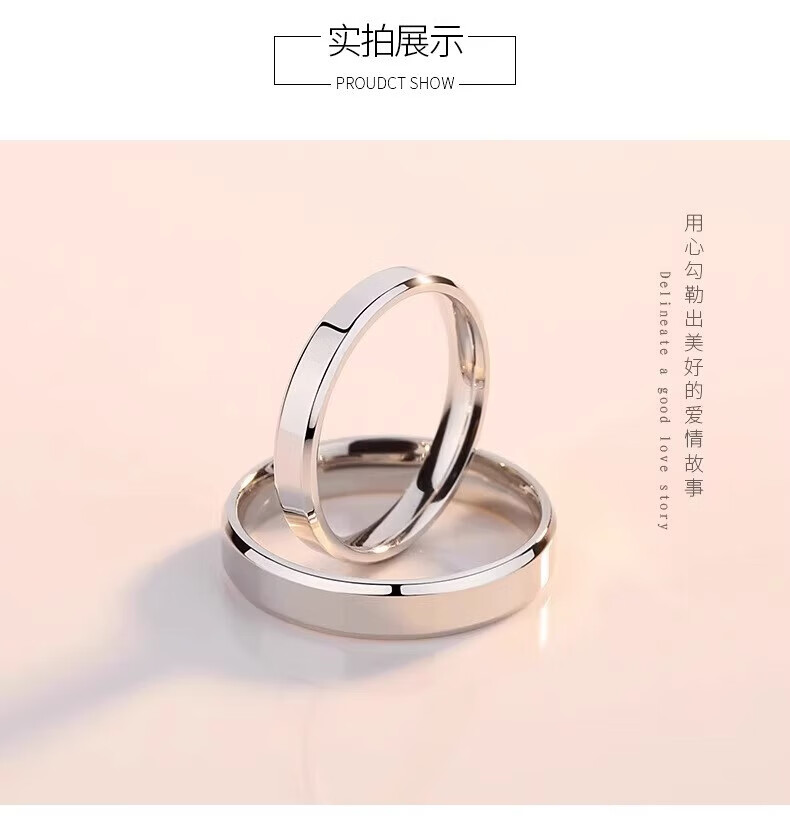 PT950 platinum ring, plain ring, platinum pair of rings, couple, a pair of men's and women's diamond rings, wedding rings, moissanite for girlfriend, simple love, light luxury, 1 men's ring