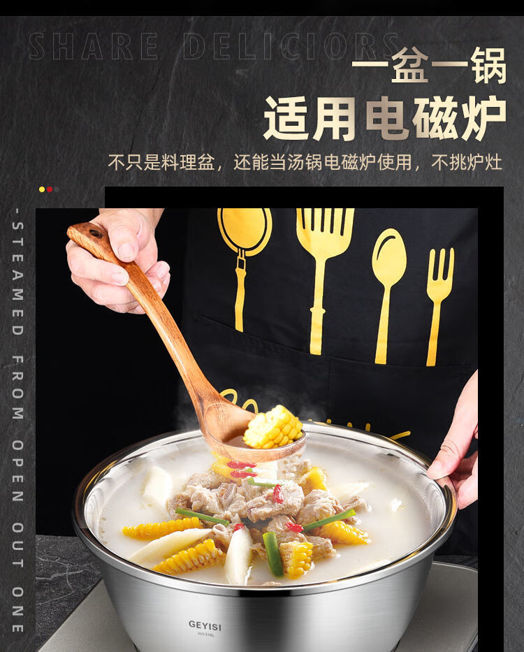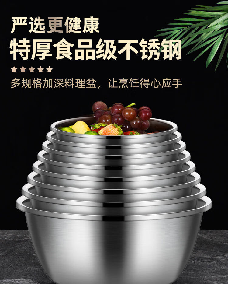 Jingying is giving away 316L thickened stainless steel basin, multi-purpose canteen soup bowl, household vegetable basin, instant noodle soup basin, egg basin, processing 15CM, buy one and get one