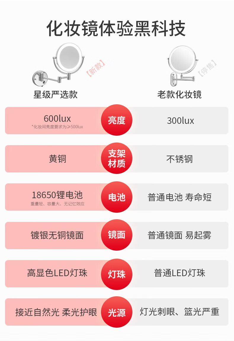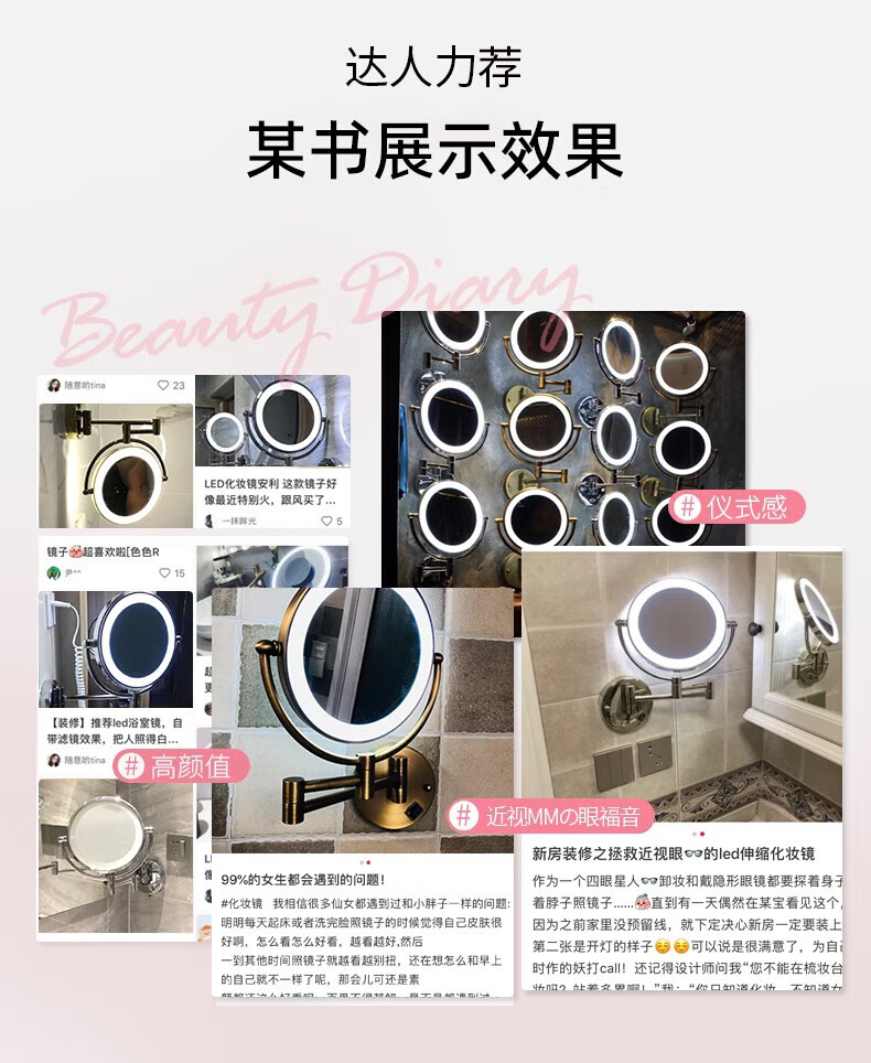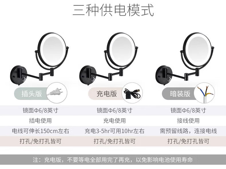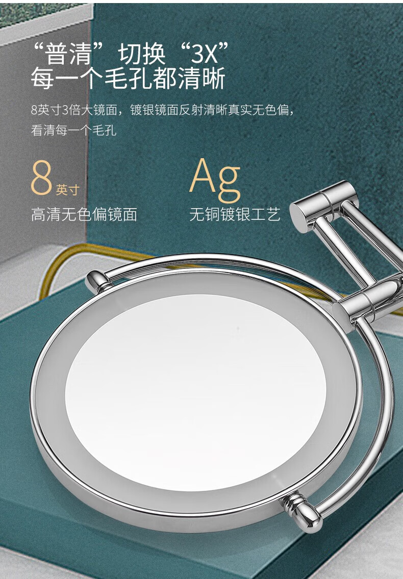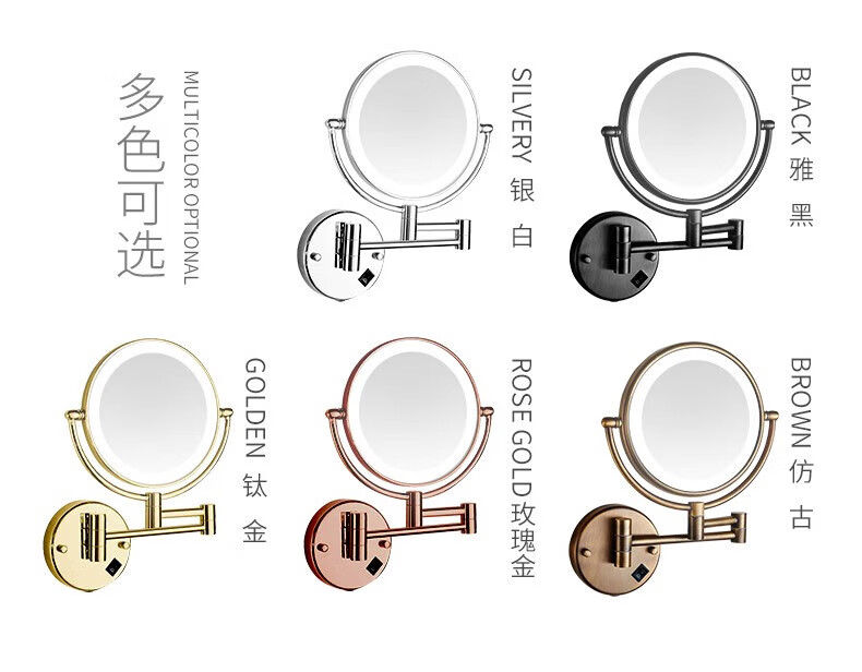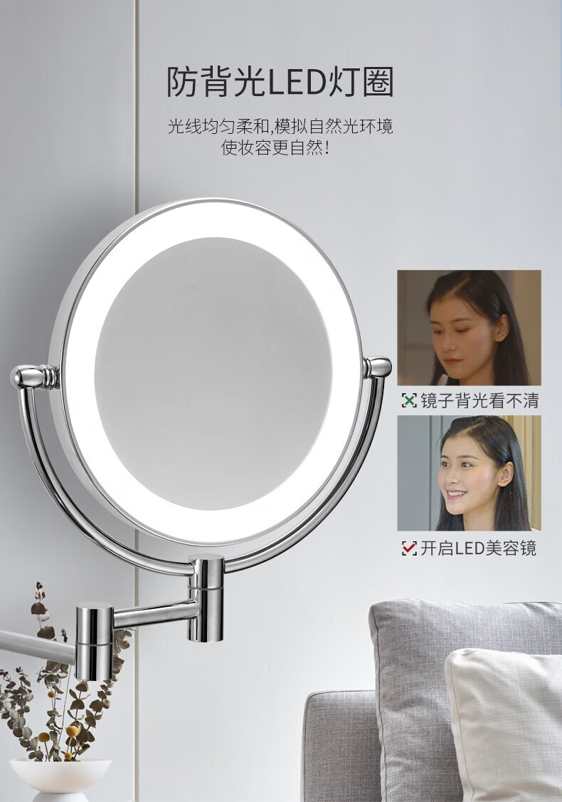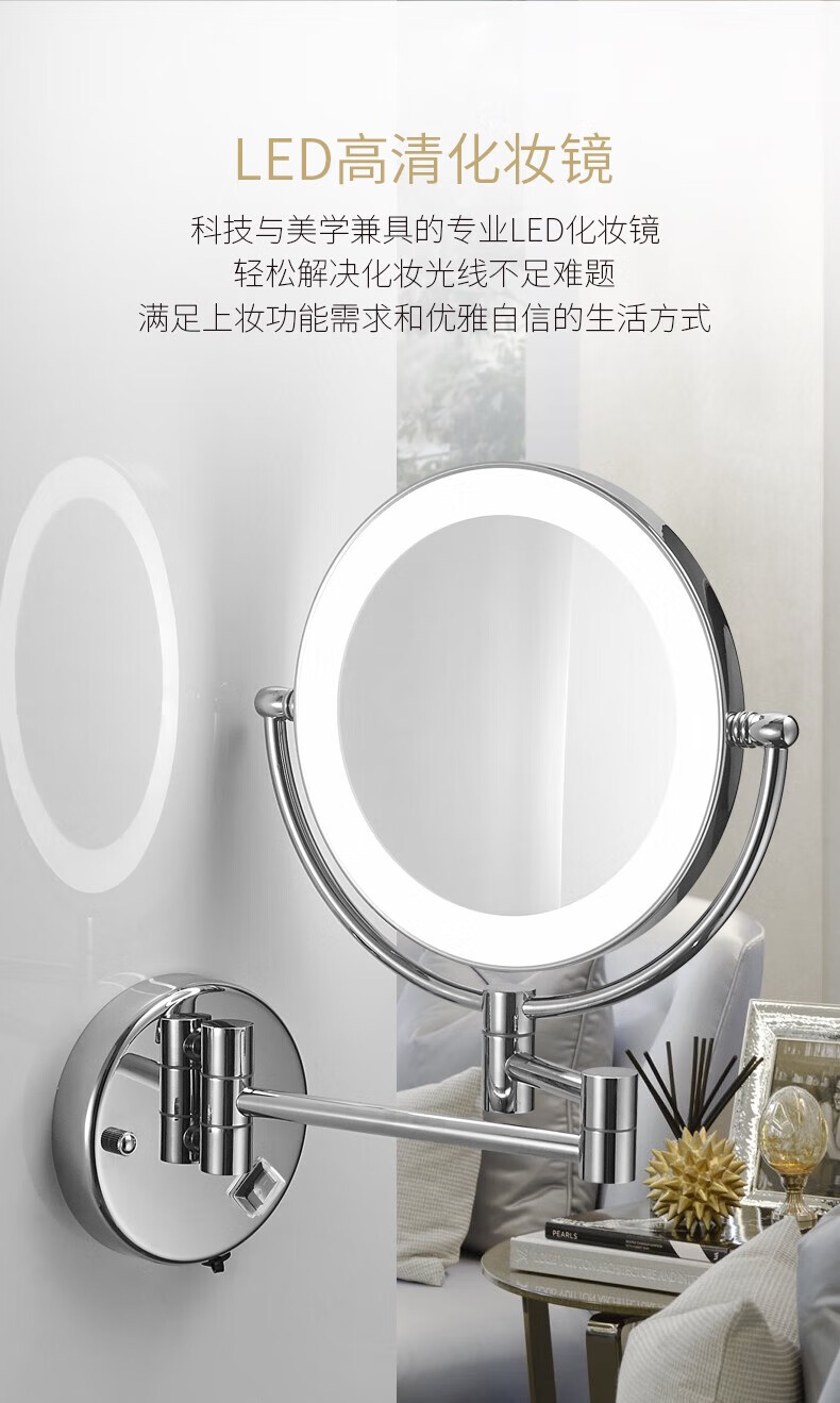 GWT Bathroom Folding Mirror Wall-mounted Telescopic LED Beauty Mirror Hotel Bathroom Lighted Cosmetic Mirror Double-sided Mirror Free of Holes Star Selected LED Silver-Plug Type