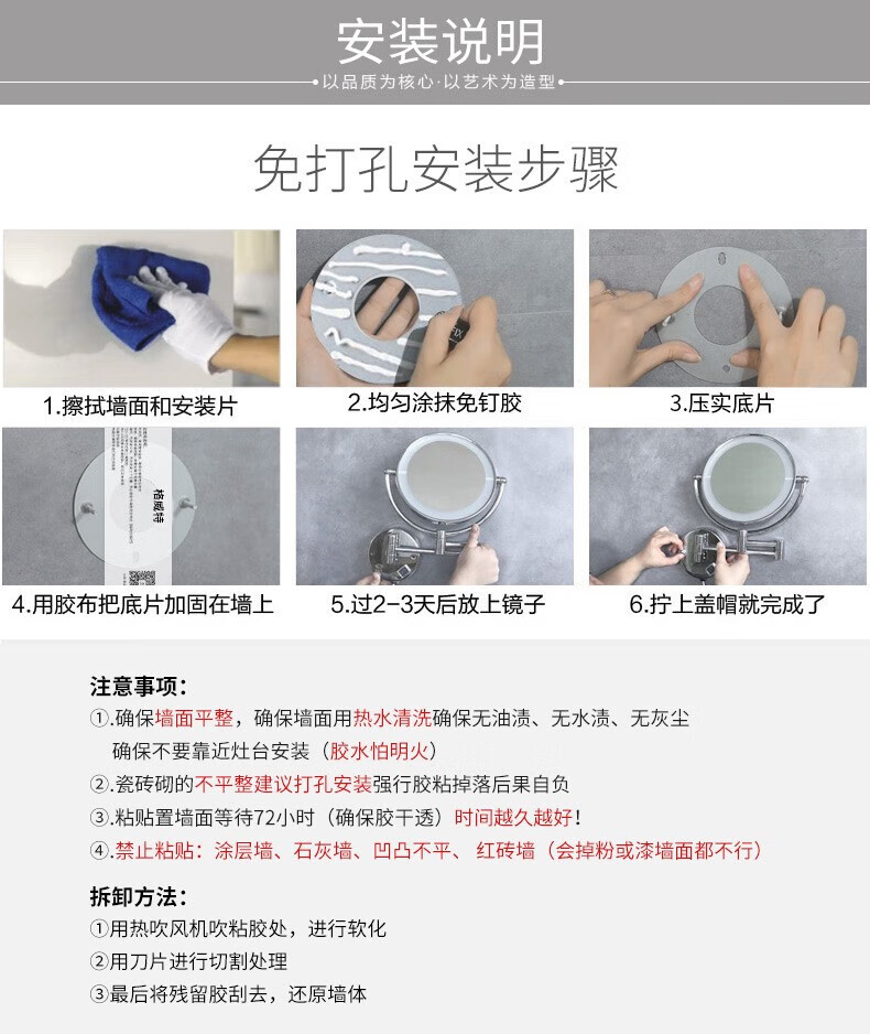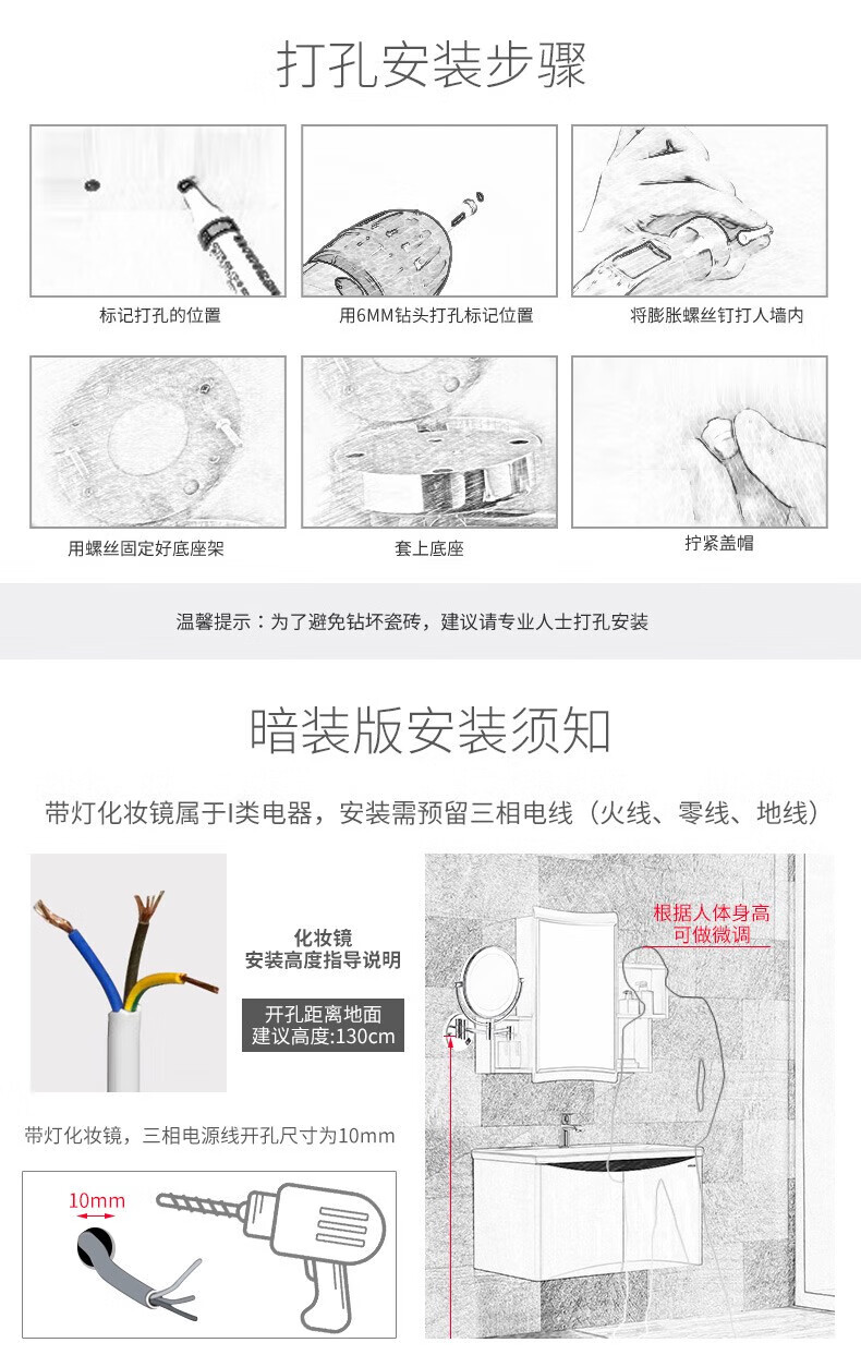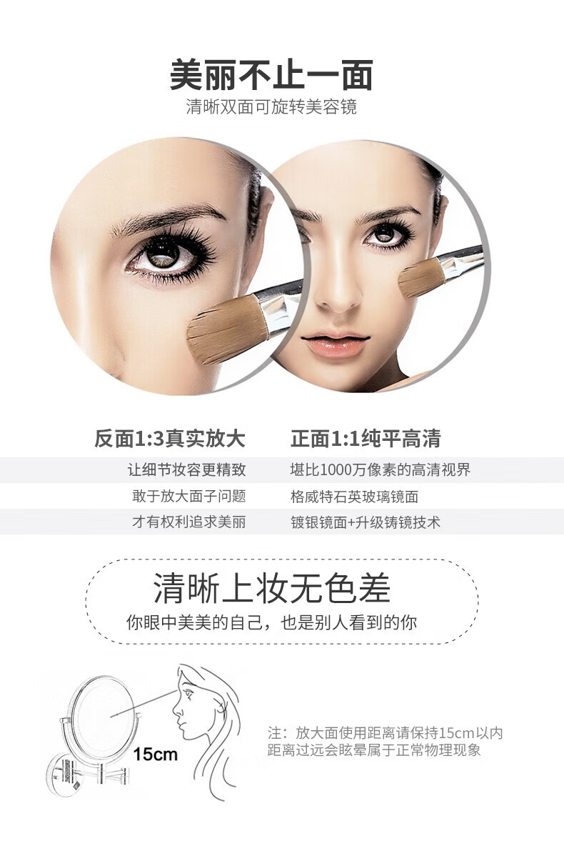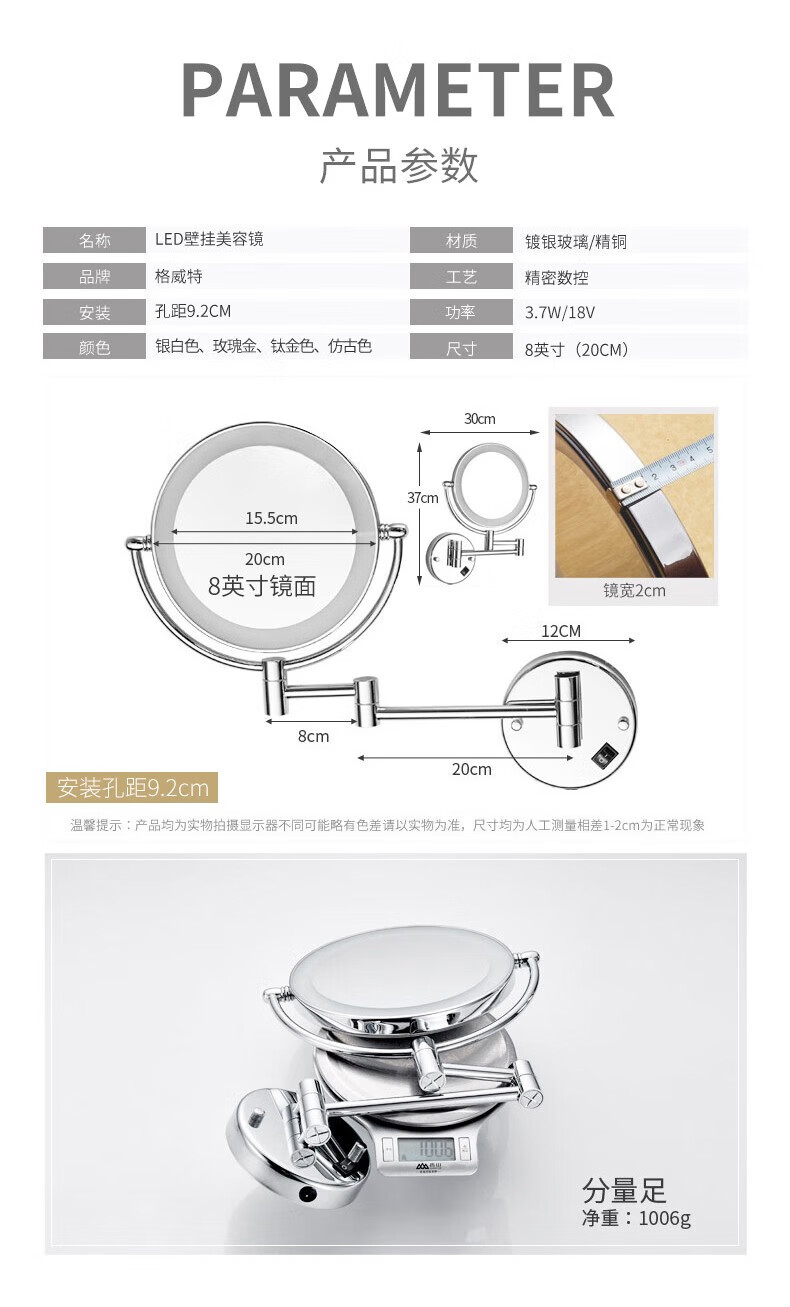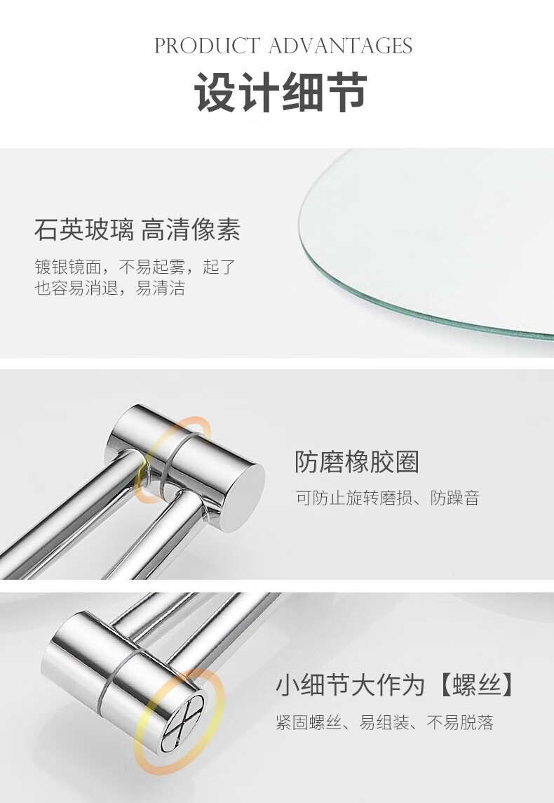 GWT Bathroom Folding Mirror Wall-mounted Telescopic LED Beauty Mirror Hotel Bathroom Lighted Cosmetic Mirror Double-sided Mirror Free of Holes Star Selected LED Silver-Plug Type