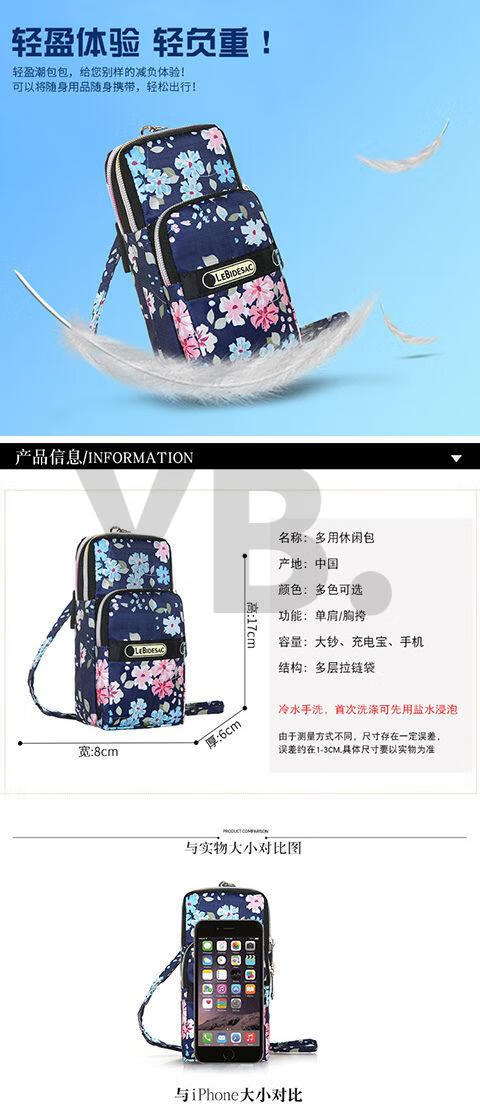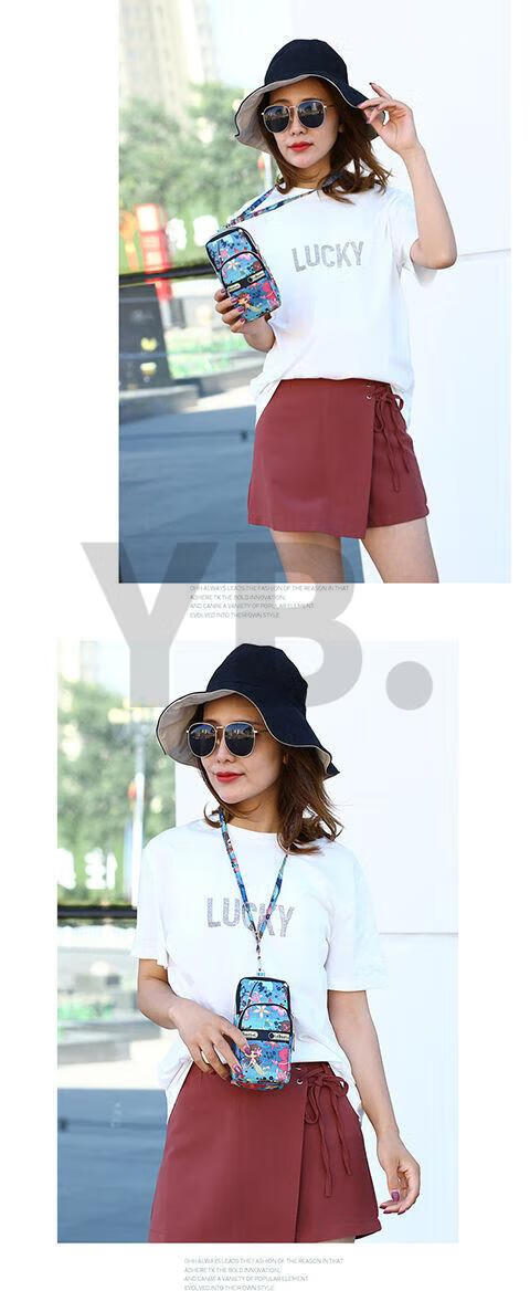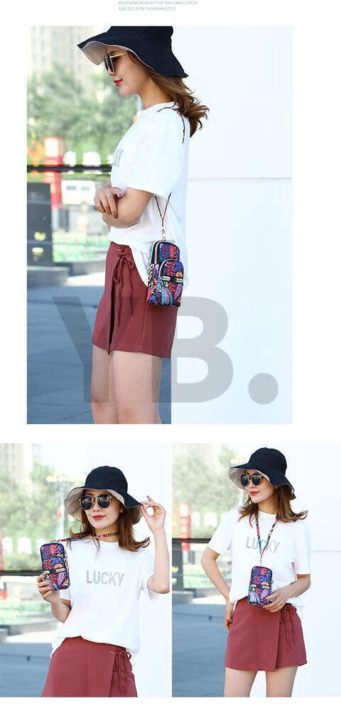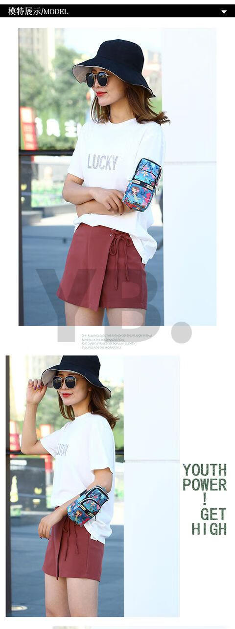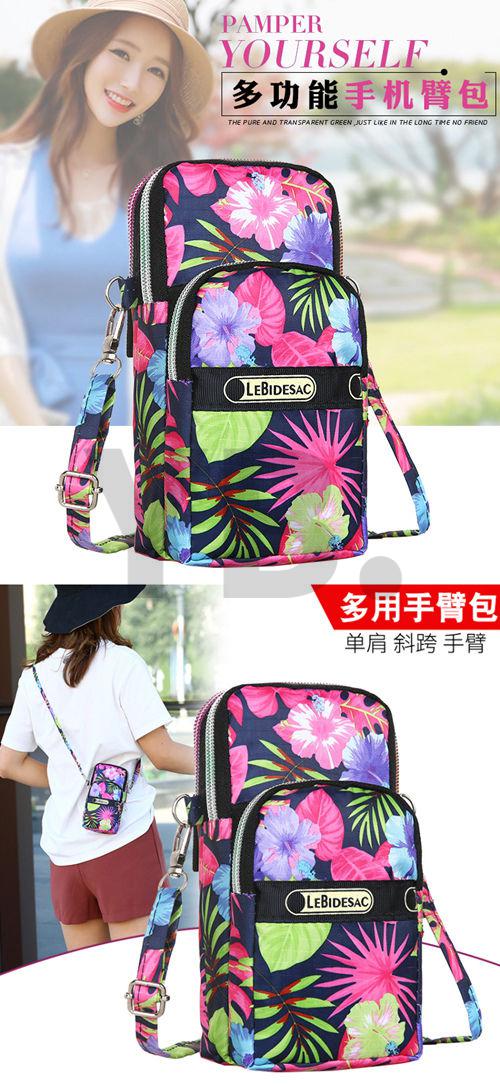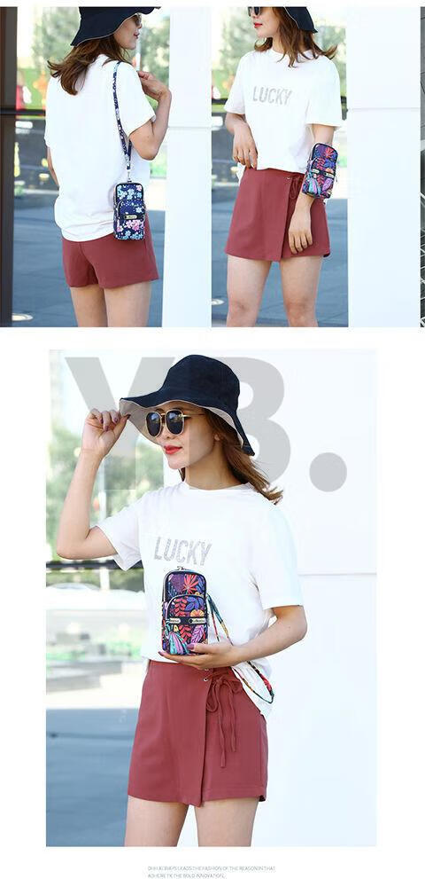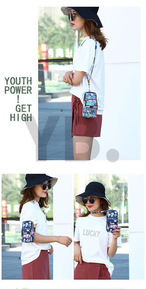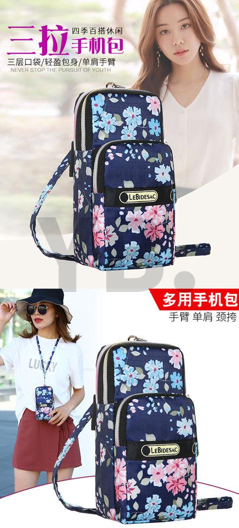 Wenzhi Extra Large Mobile Phone Bag Women's Three-Layer Zipper Coin Purse Running Wrist Arm Bag Crossbody Bag Women's Bag Halter Neck Version Red Peony