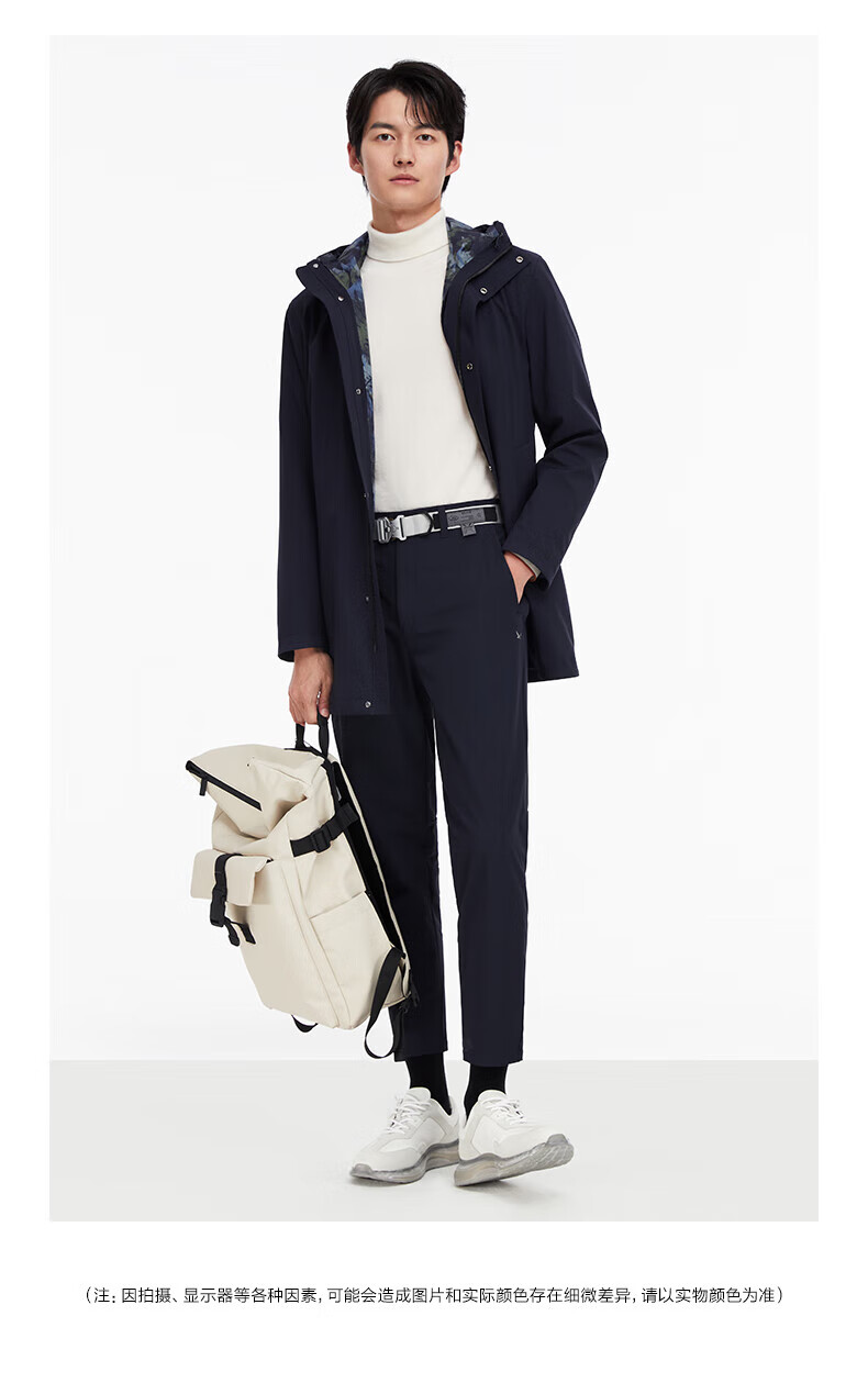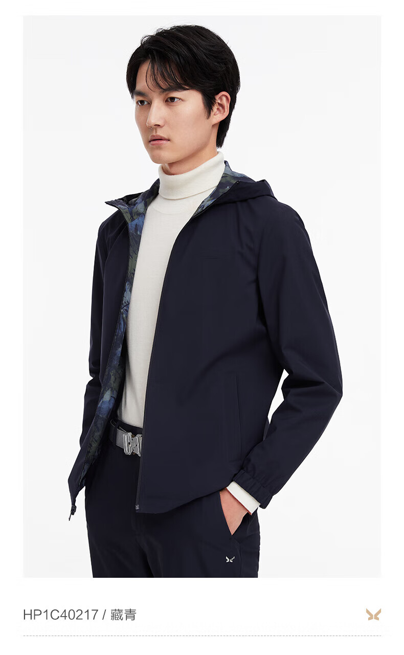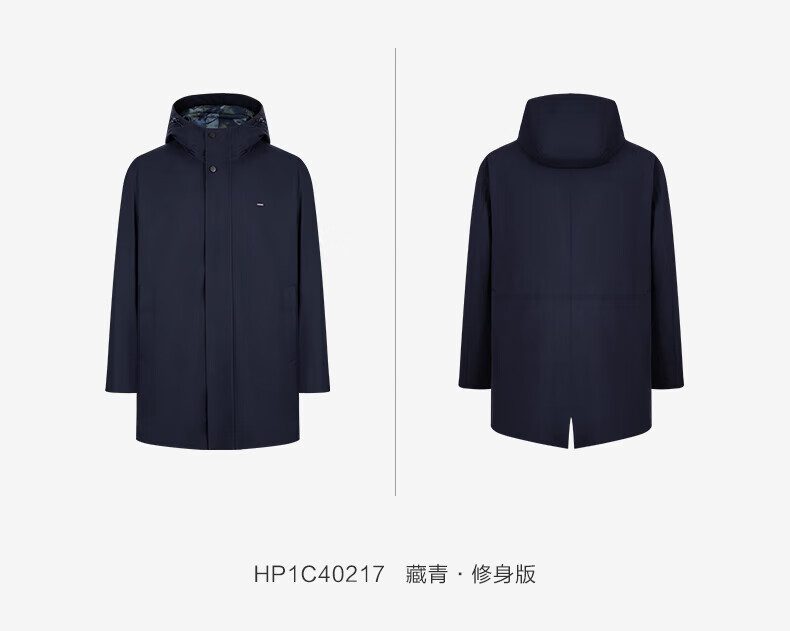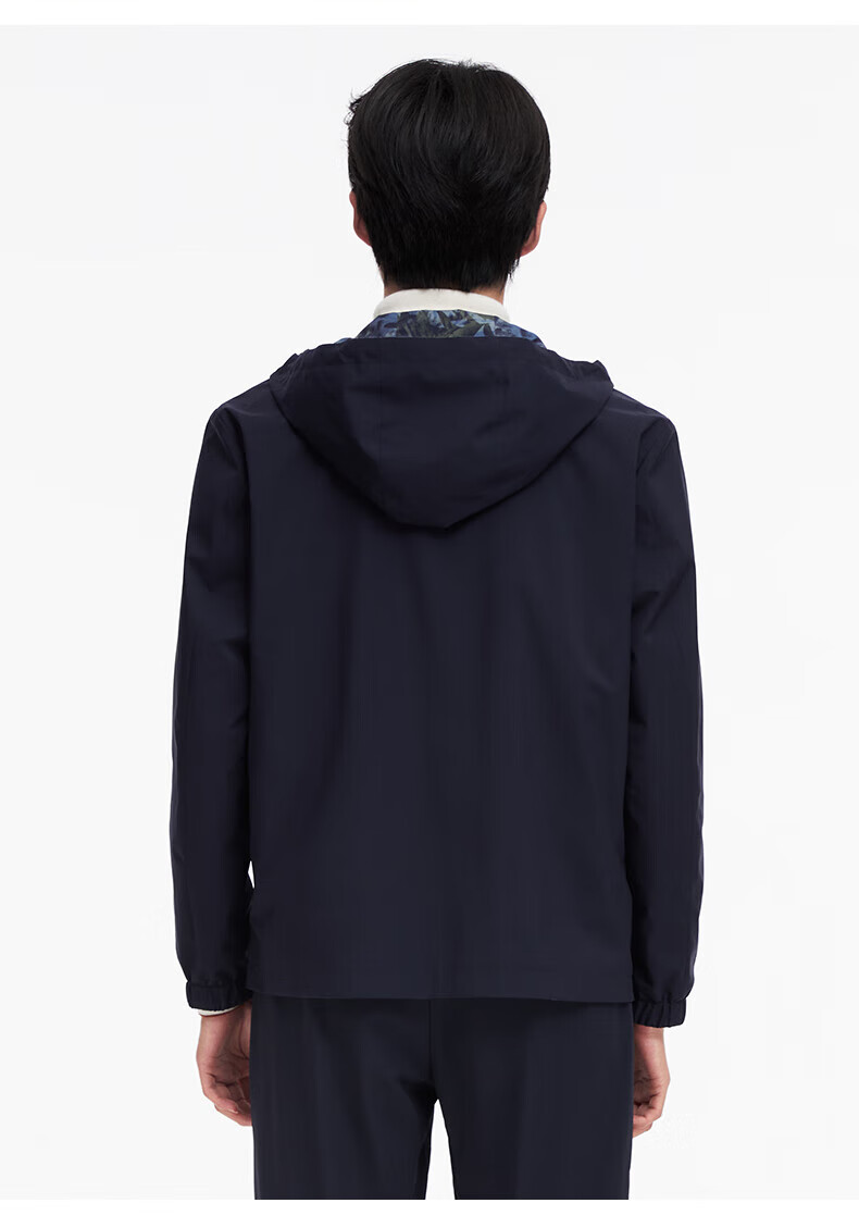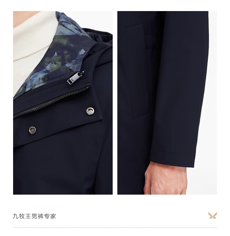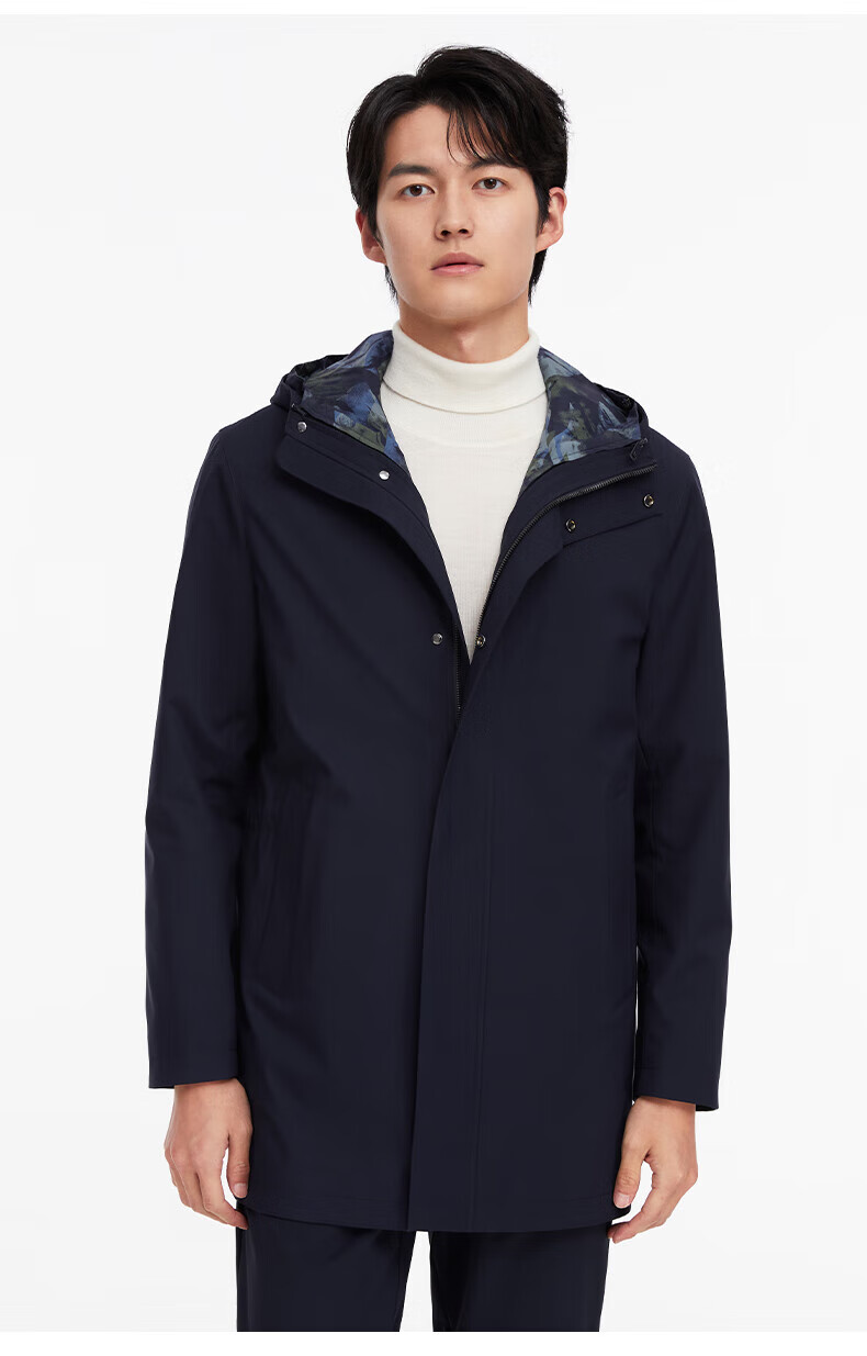 Same style as Jiumuwang Shopping Mall, easy care, men's windbreaker hooded, comfortable and stretchy coat, mid-length sports jacket, navy + slim version + HP1C-40217 L 175/96A(50)