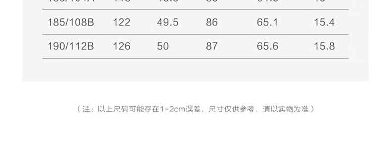 China (cm) 165 / 88-90 170 / 96-98 175 / 108-110 180 / 118-122 185 / 126-130