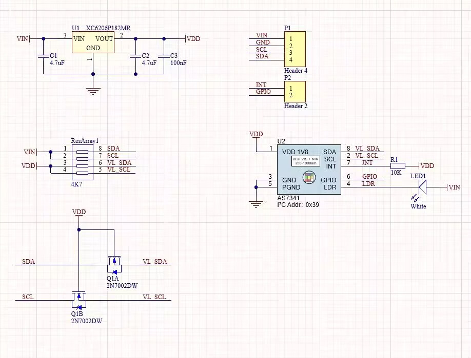 Dengshitang AS7341 visible spectrum sensor color temperature illumination color detection high accuracy V1/V2 optional weldable visible photometer DIY module AS7341-V1 module (soldered pin header)