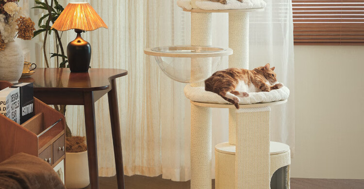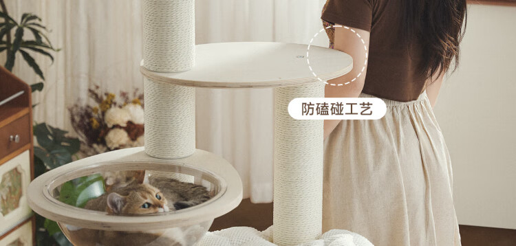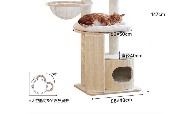 Beast Brand Mousse solid wood cat climbing frame does not take up space. Cat rack, cat nest and cat scratching board with space capsule can be used for big cats to warm up in winter. Mousse+toy pendant*2+cleaning brush