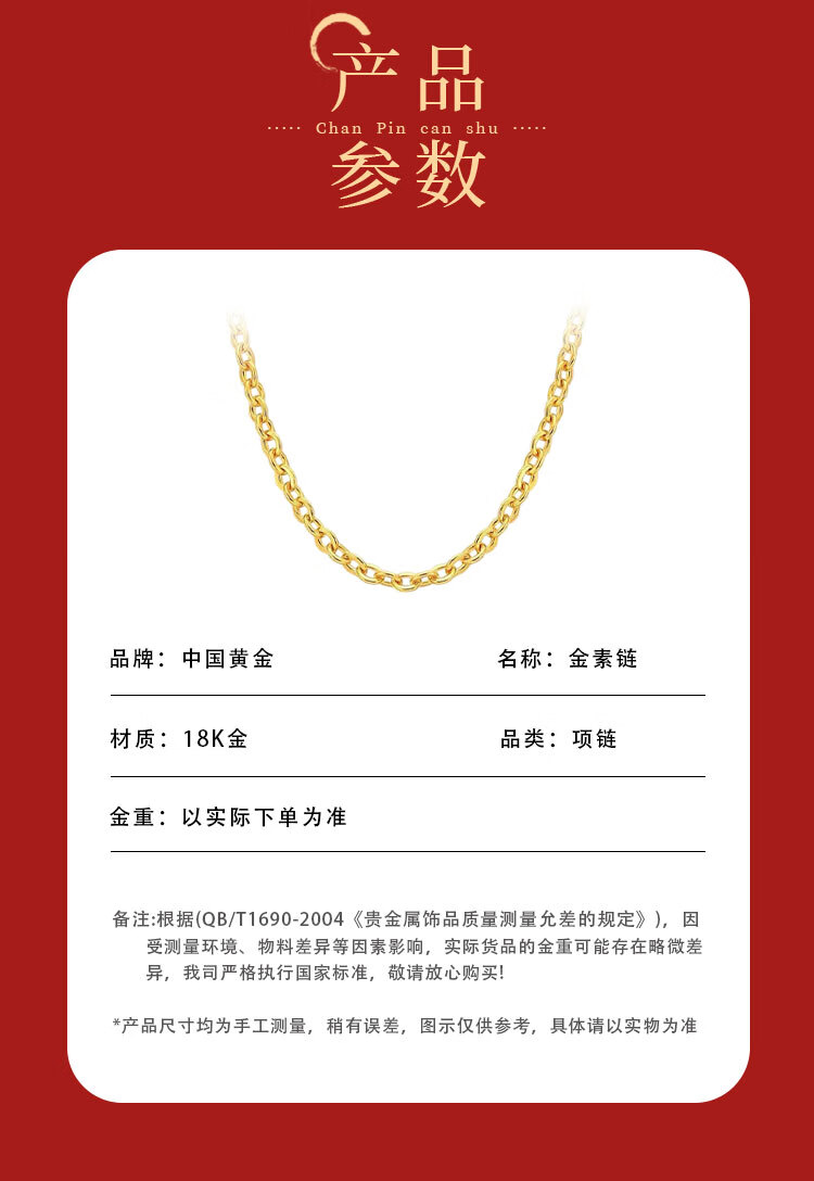 CHINA GOLD 18K Gold Necklace Women's Plain Chain Versatile Simple Daily Clavicle Chain Valentine's Day Birthday Gift for Girlfriend and Wife 18K Gold Plain Chain - About 0.5g