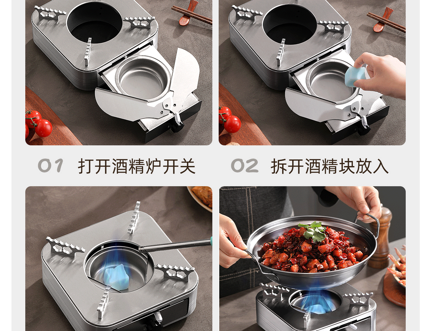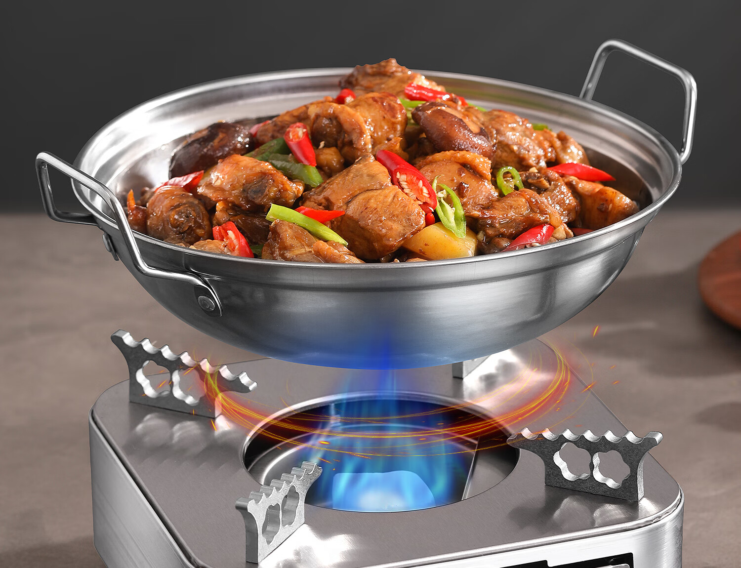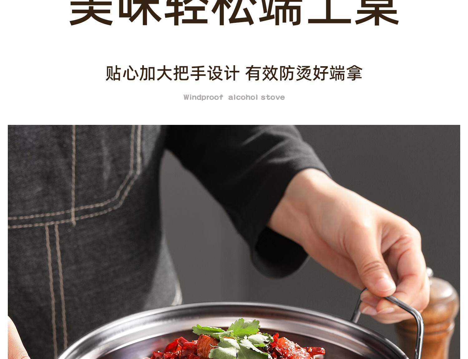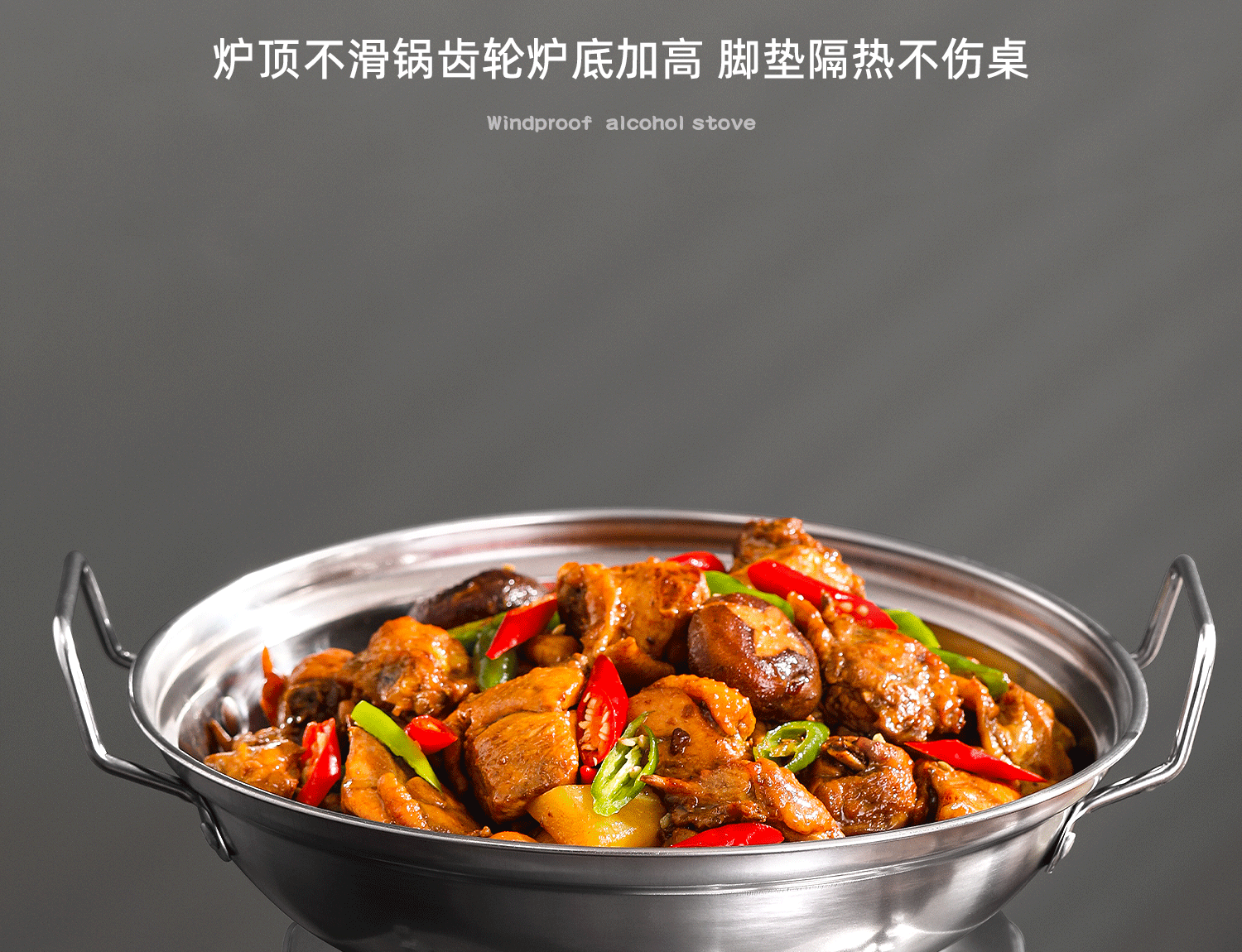Alcohol stove small hot pot stove one person one person stainless steel dry pot household commercial pot base extra thick stainless steel dry pot with lid 26cm