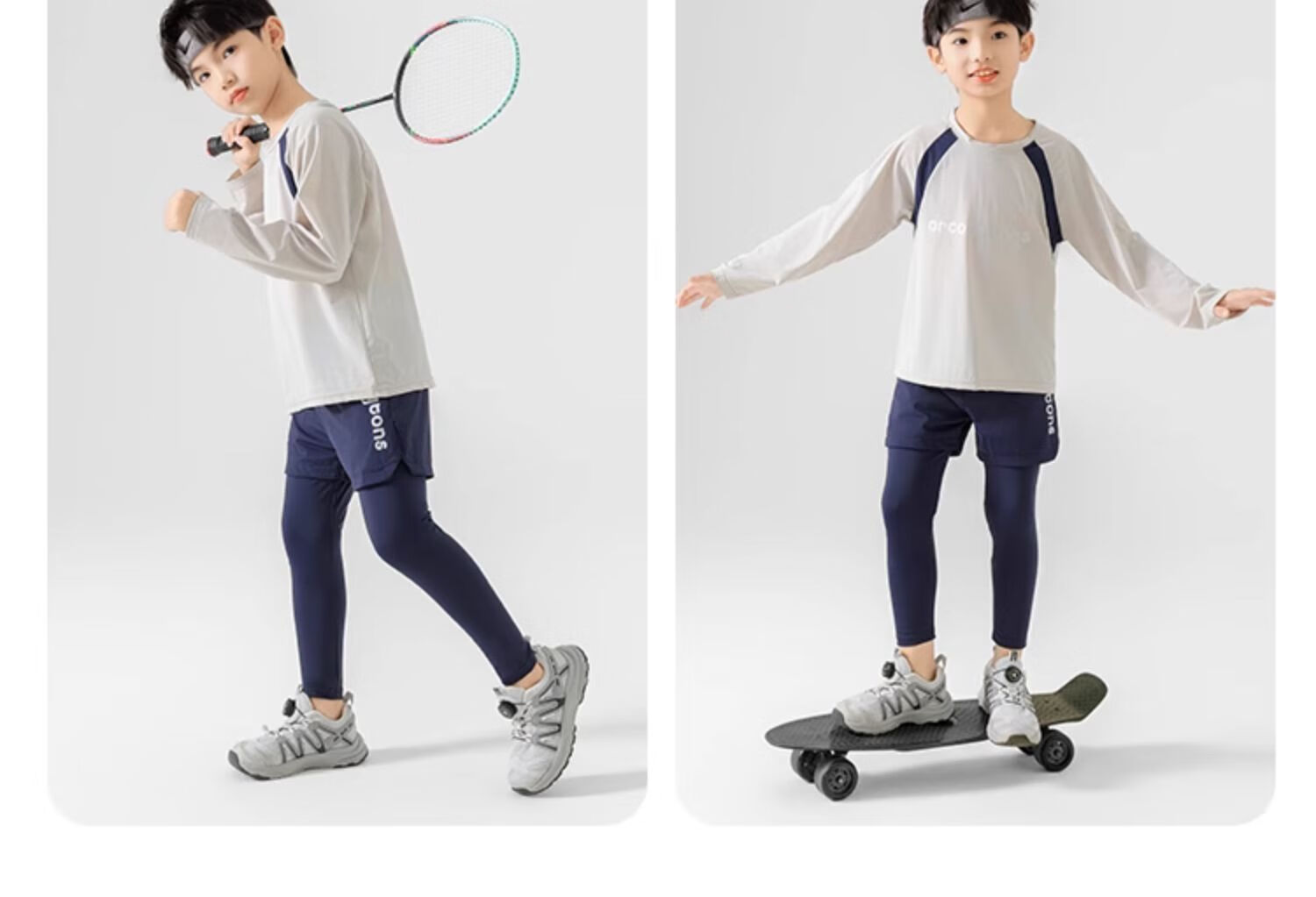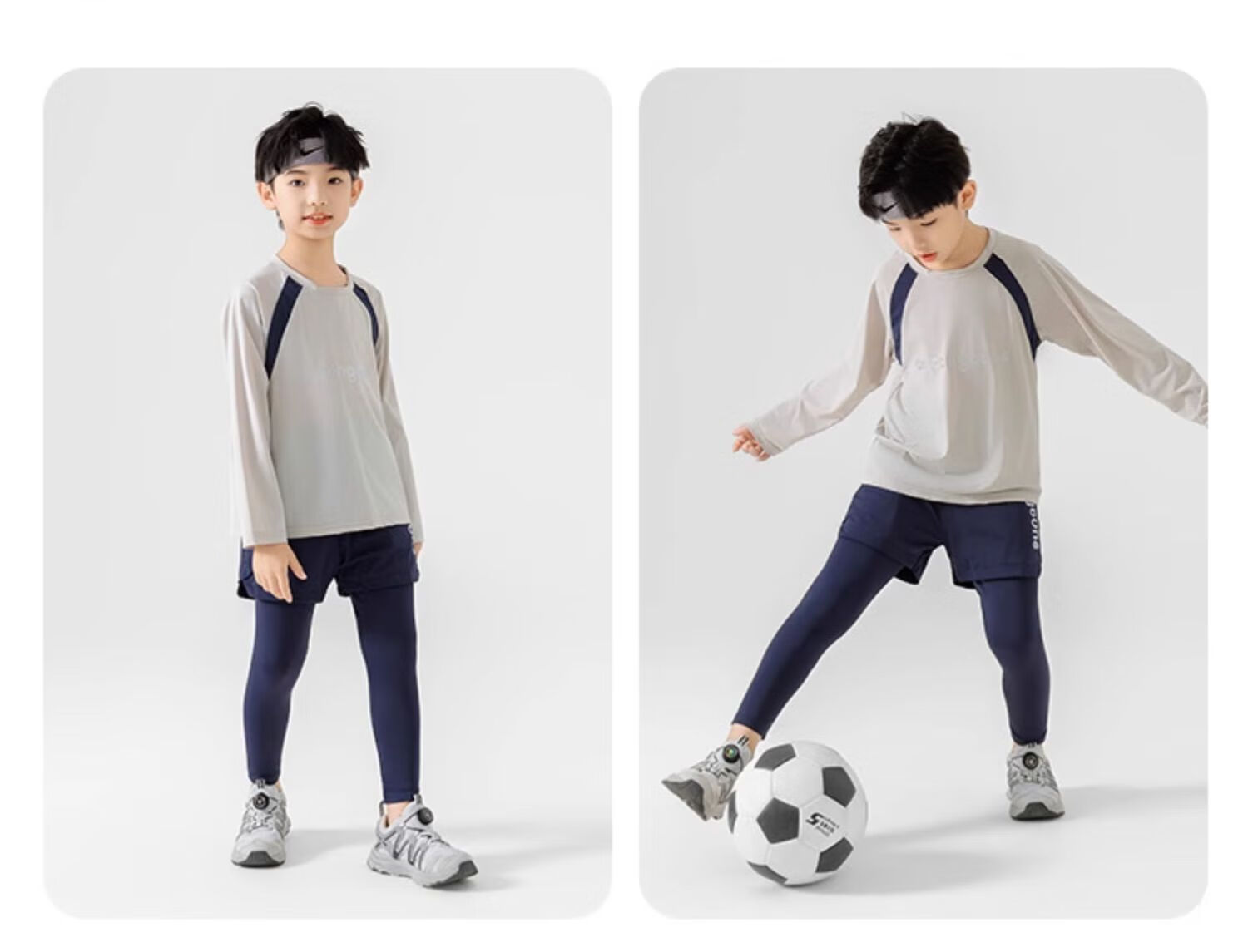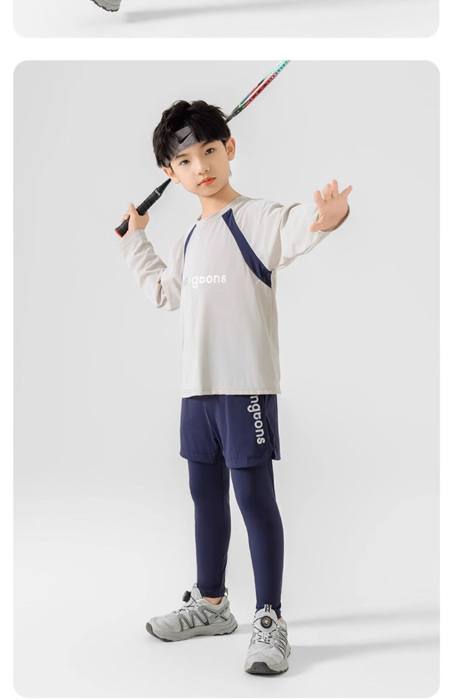 Yoyo one children's sportswear boys' physical training clothing quick-drying clothing suit older children's running badminton basketball clothing cycling clothing 19517 gray + 16121 dark blue 120 120cm
