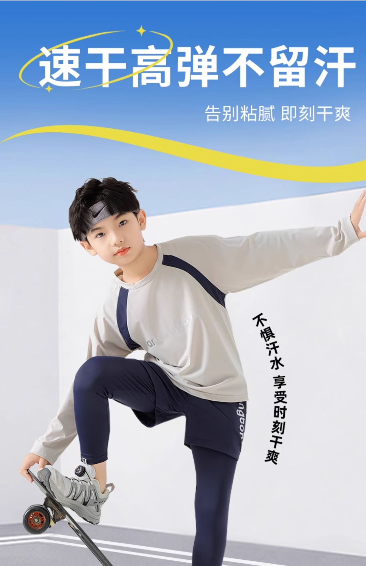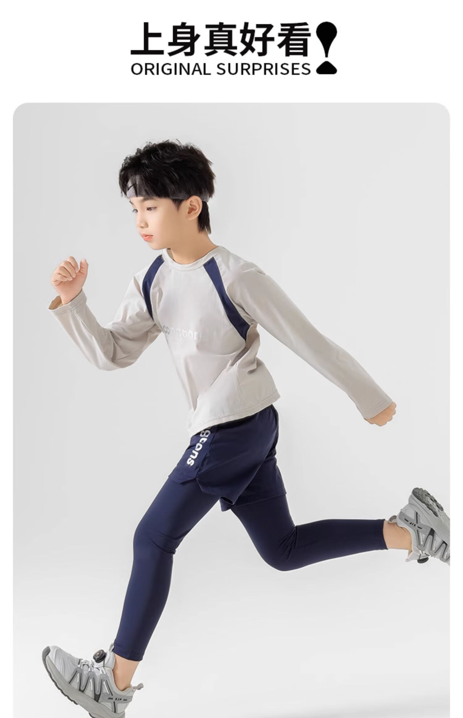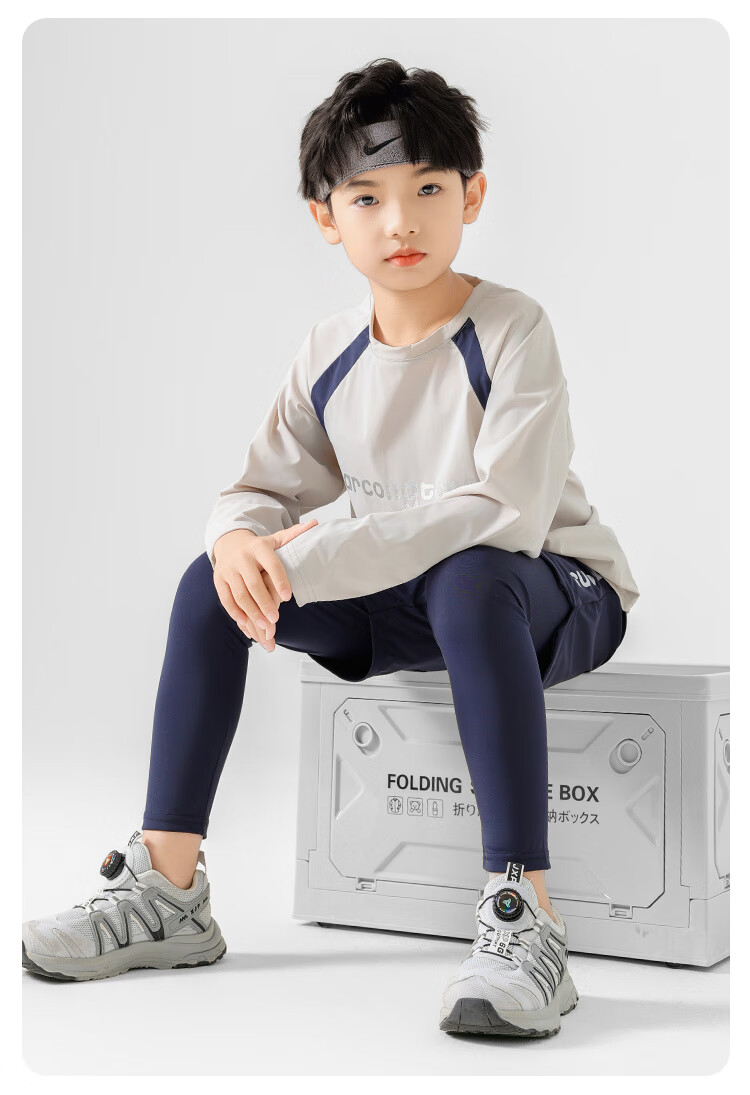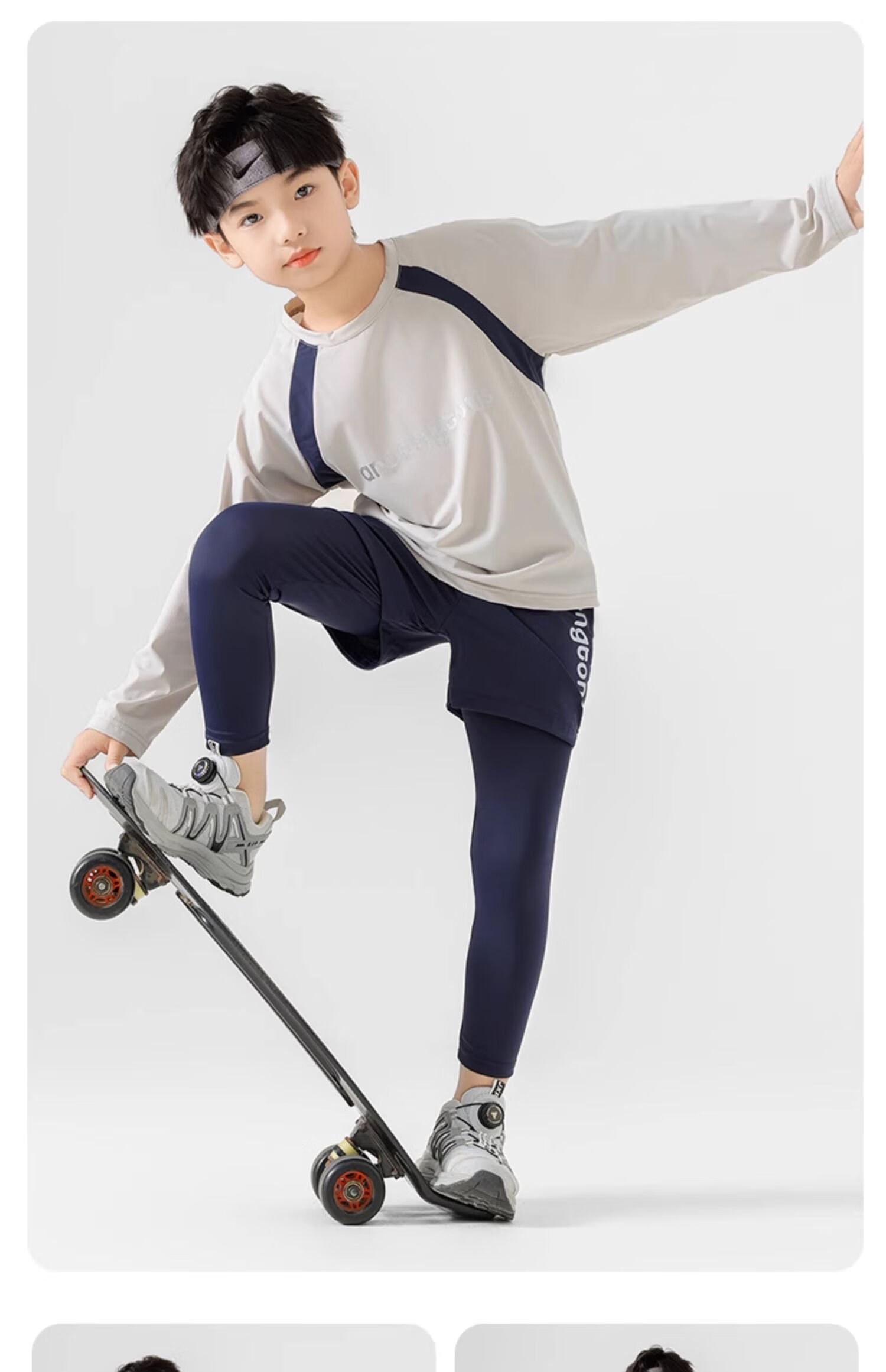 Yoyo one children's sportswear boys' physical training clothing quick-drying clothing suit older children's running badminton basketball clothing cycling clothing 19517 gray + 16121 dark blue 120 120cm