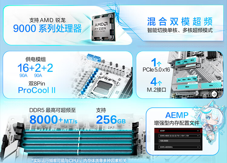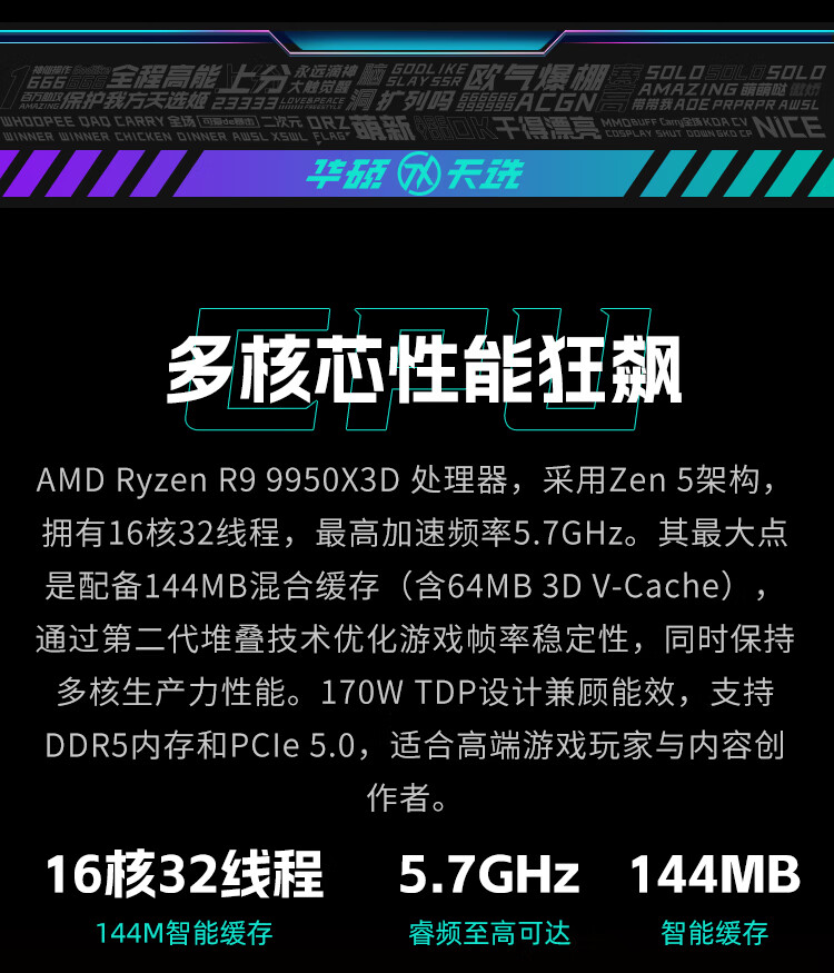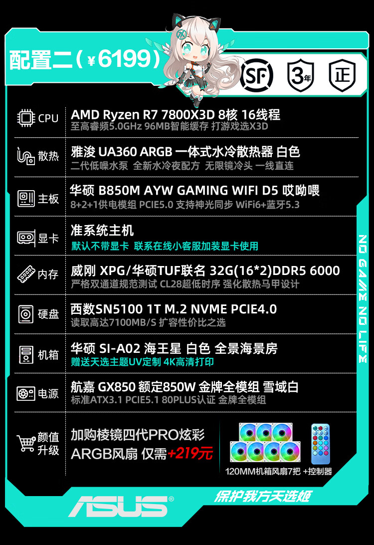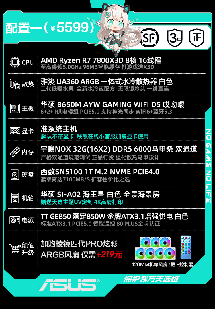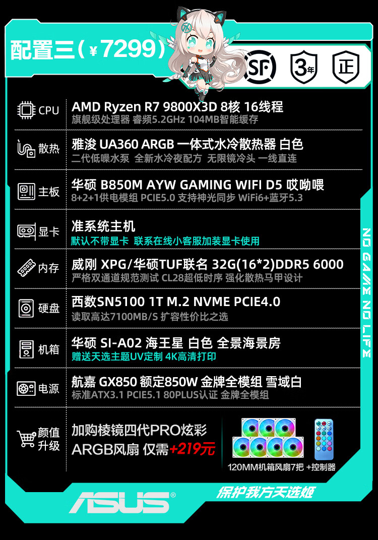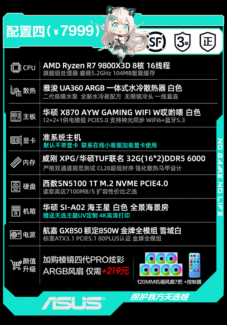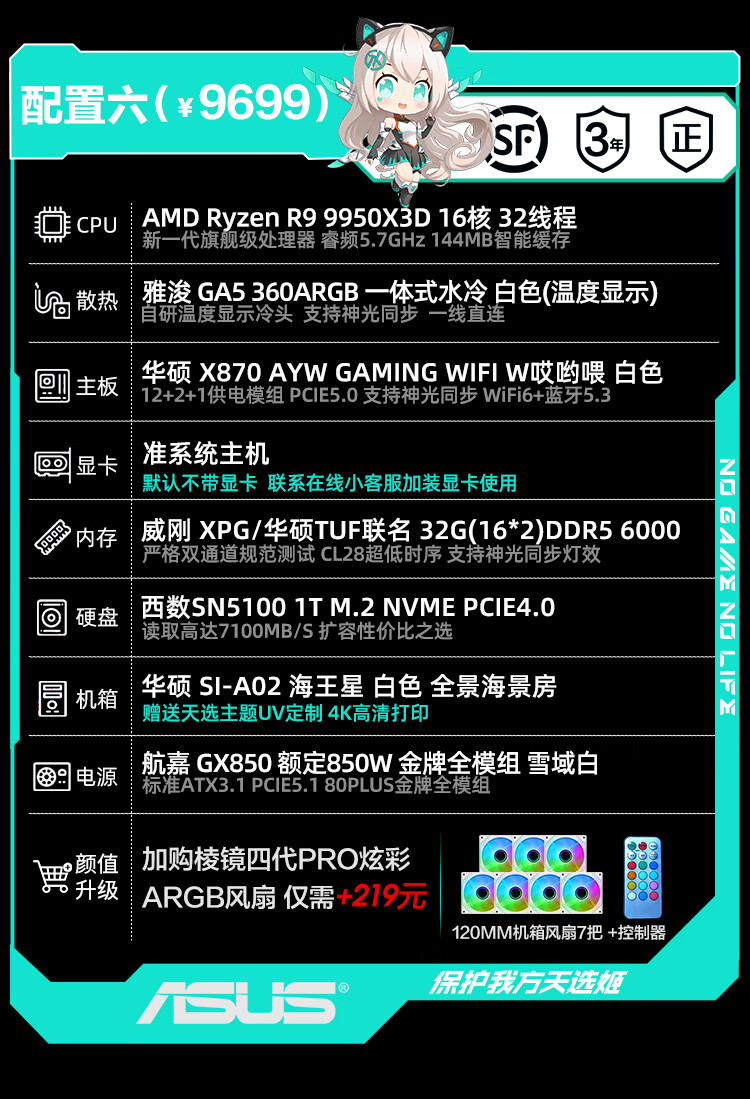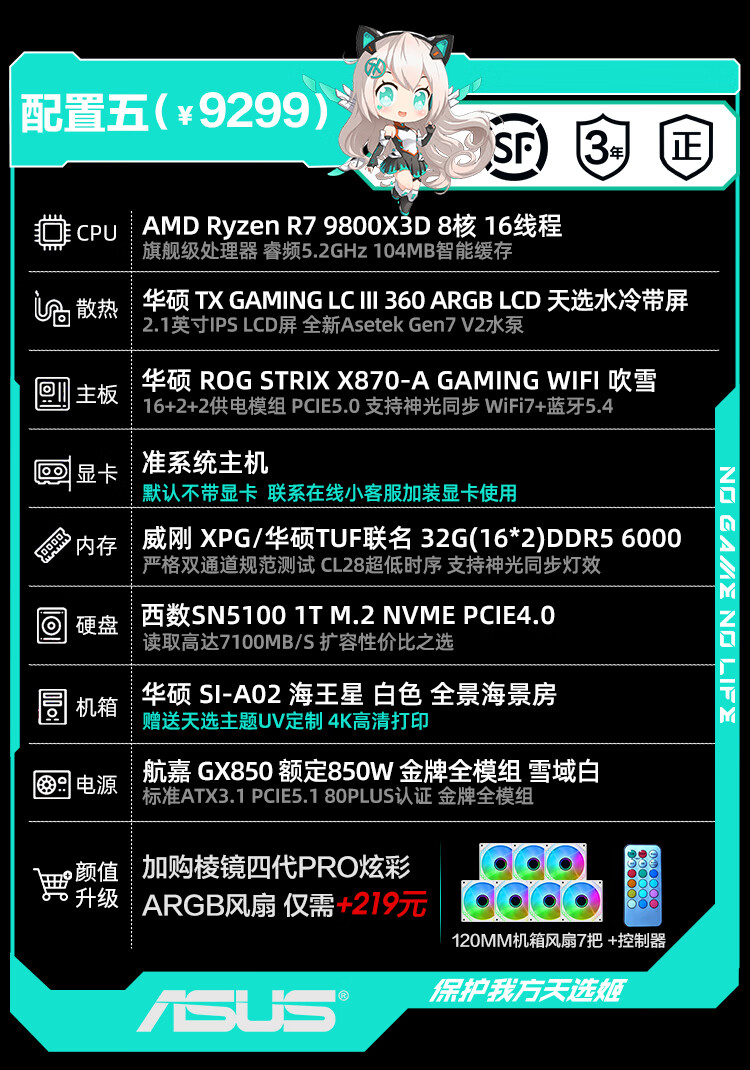 ASUS ROG family bucket R9 9950X3D/9800X3D barebone host Tianxuan theme desktop game console live broadcast design video editing rendering assembly machine complete machine with 3 9800X3D+32G+1TB