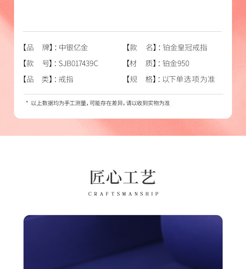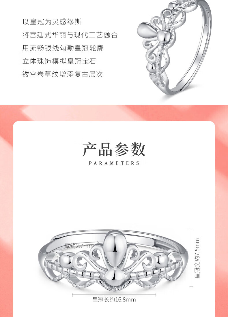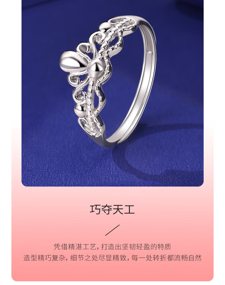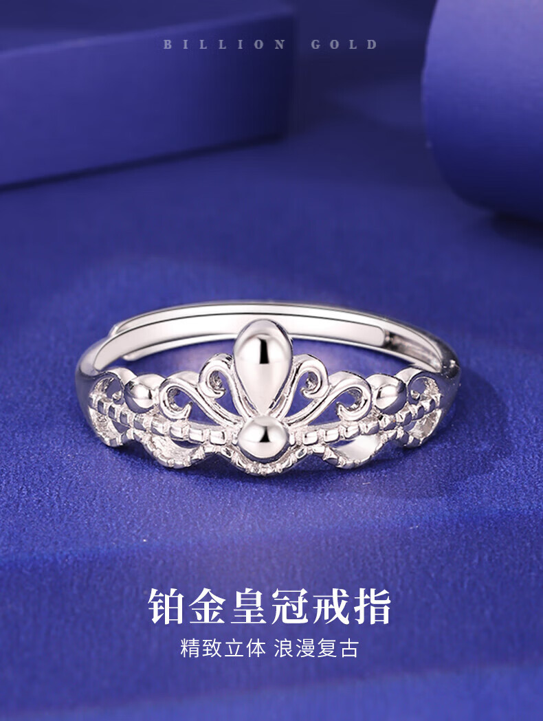 Bank of China Yijin PT950 Crown Platinum Ring Women's Platinum Jewelry Living Ring Ring Birthday and Valentine's Day Gift for Girlfriend and Wife Platinum Crown Ring Gold Weight Approximately 2.4g