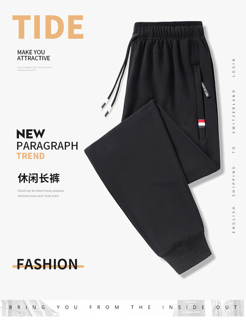 Hengyuanxiang Pure Cotton Casual Pants Men's 2025 Autumn and Winter Sports Pants Loose Large Size Straight Pants Men's Pants K7035 (Straight Mouth) Black Style Plus Velvet 6XL Recommended 220-240Jin Jin is equal to 0.5 kg