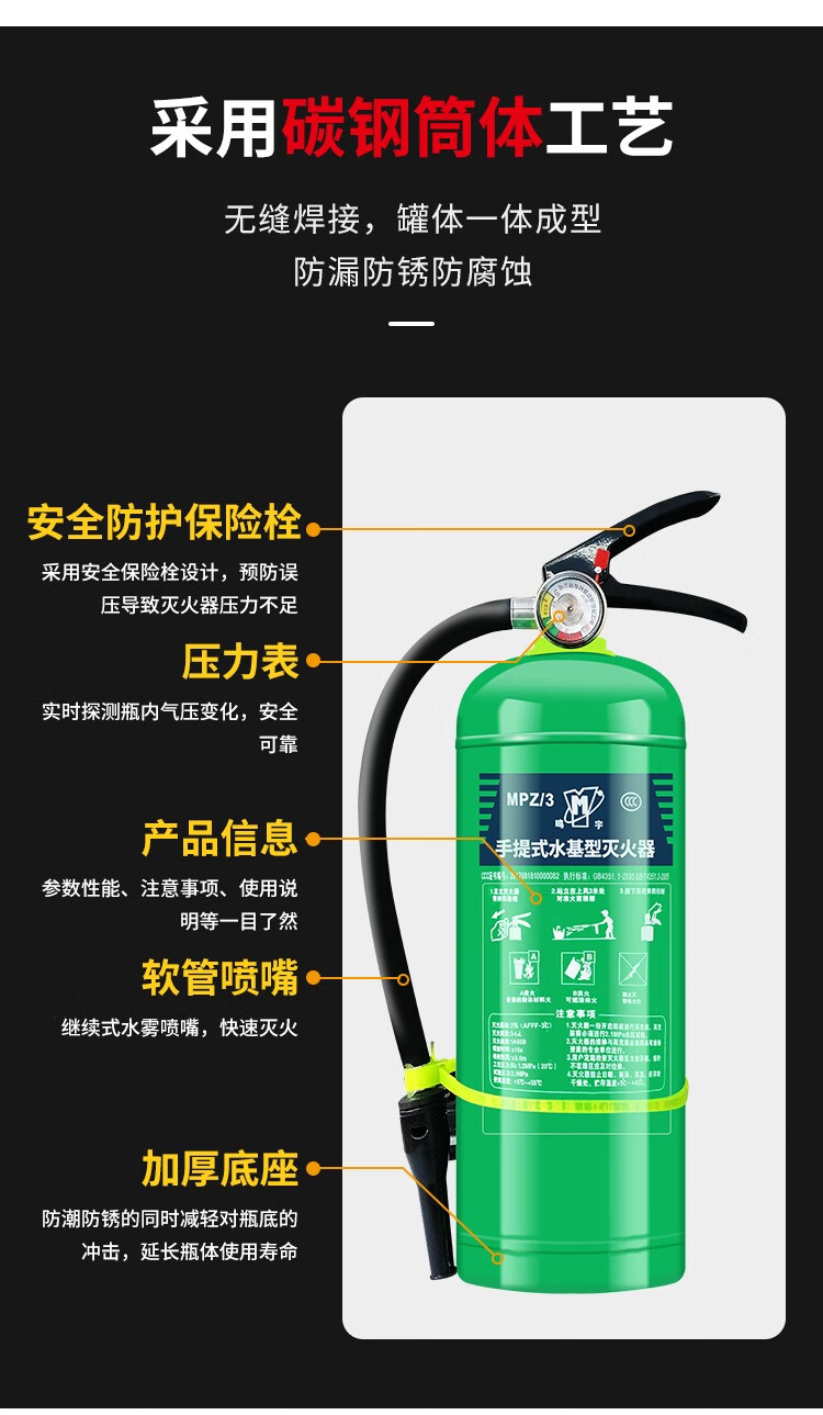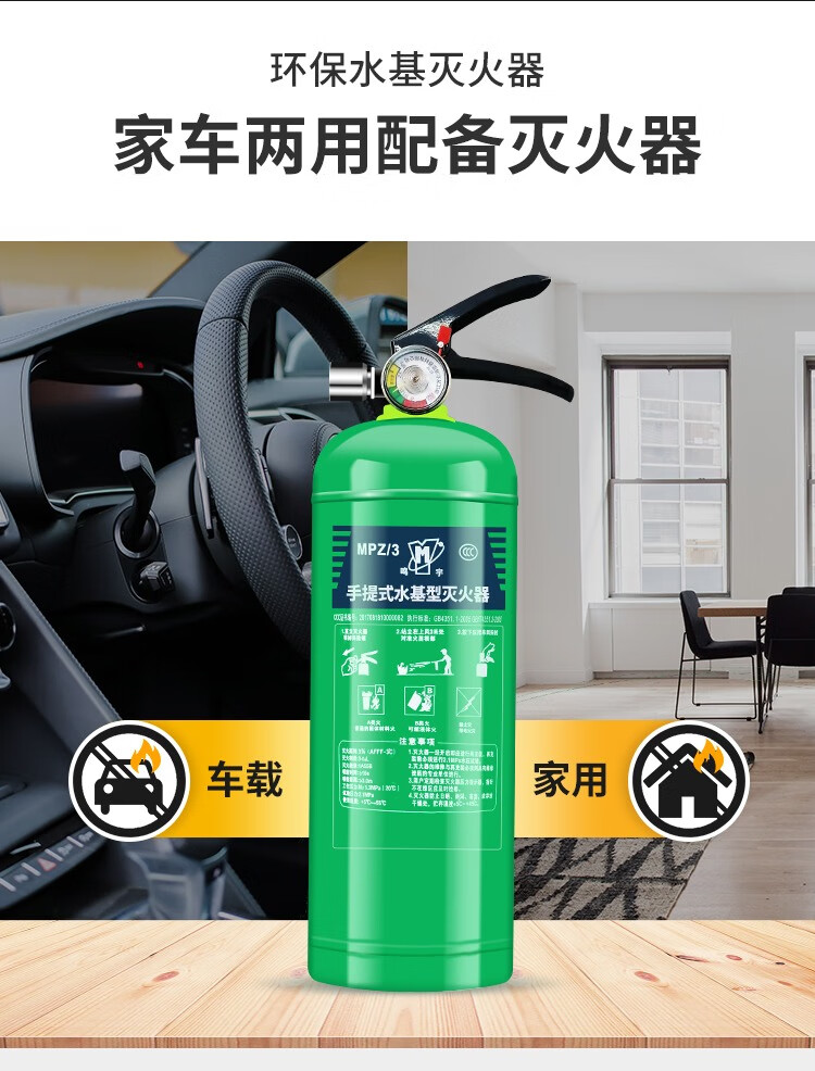 Water-based foam fire extinguisher 3c certified vehicle-mounted home store environmentally friendly 2/3L6 kg portable national standard 13b vehicle-mounted fire extinguisher*1
