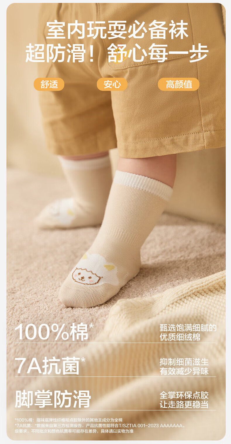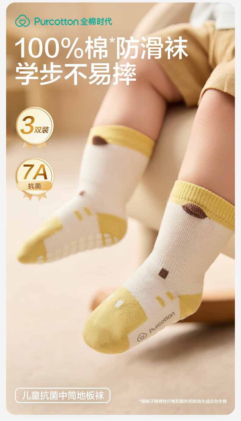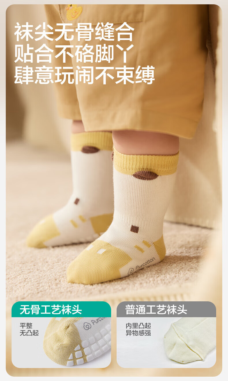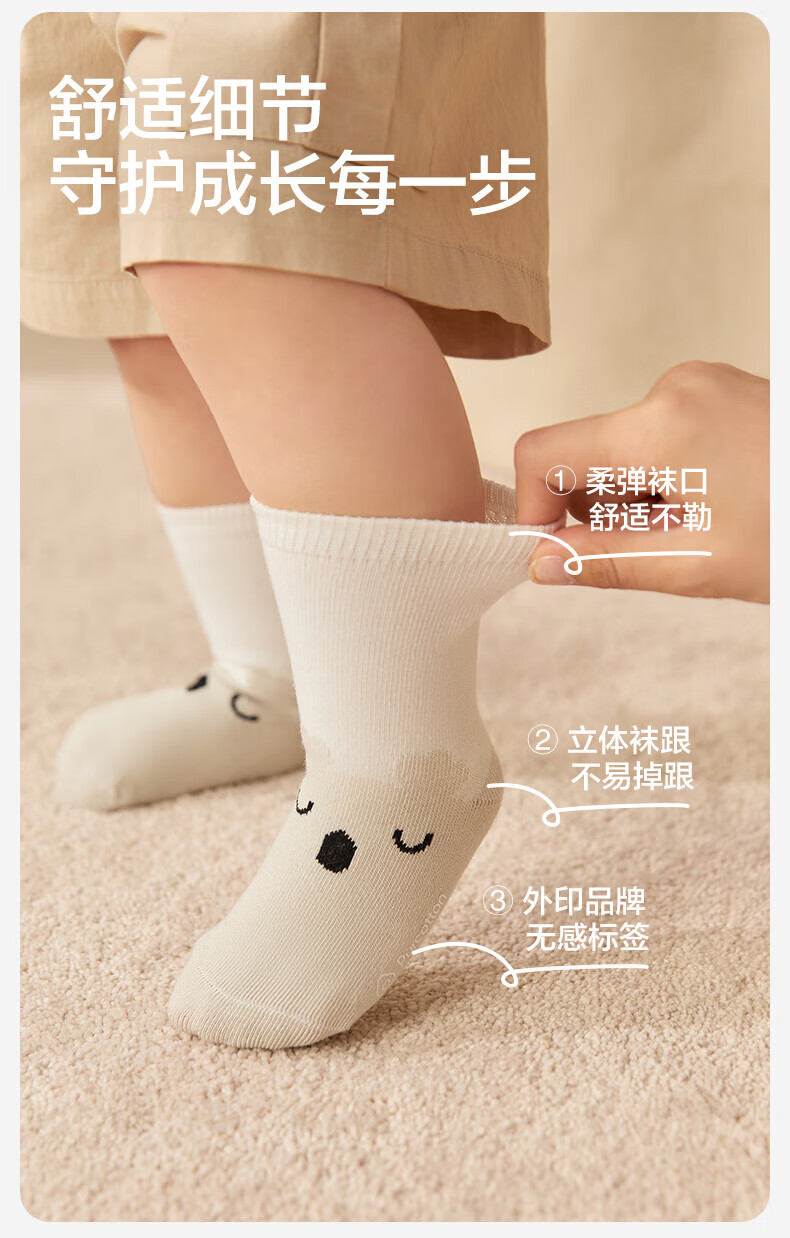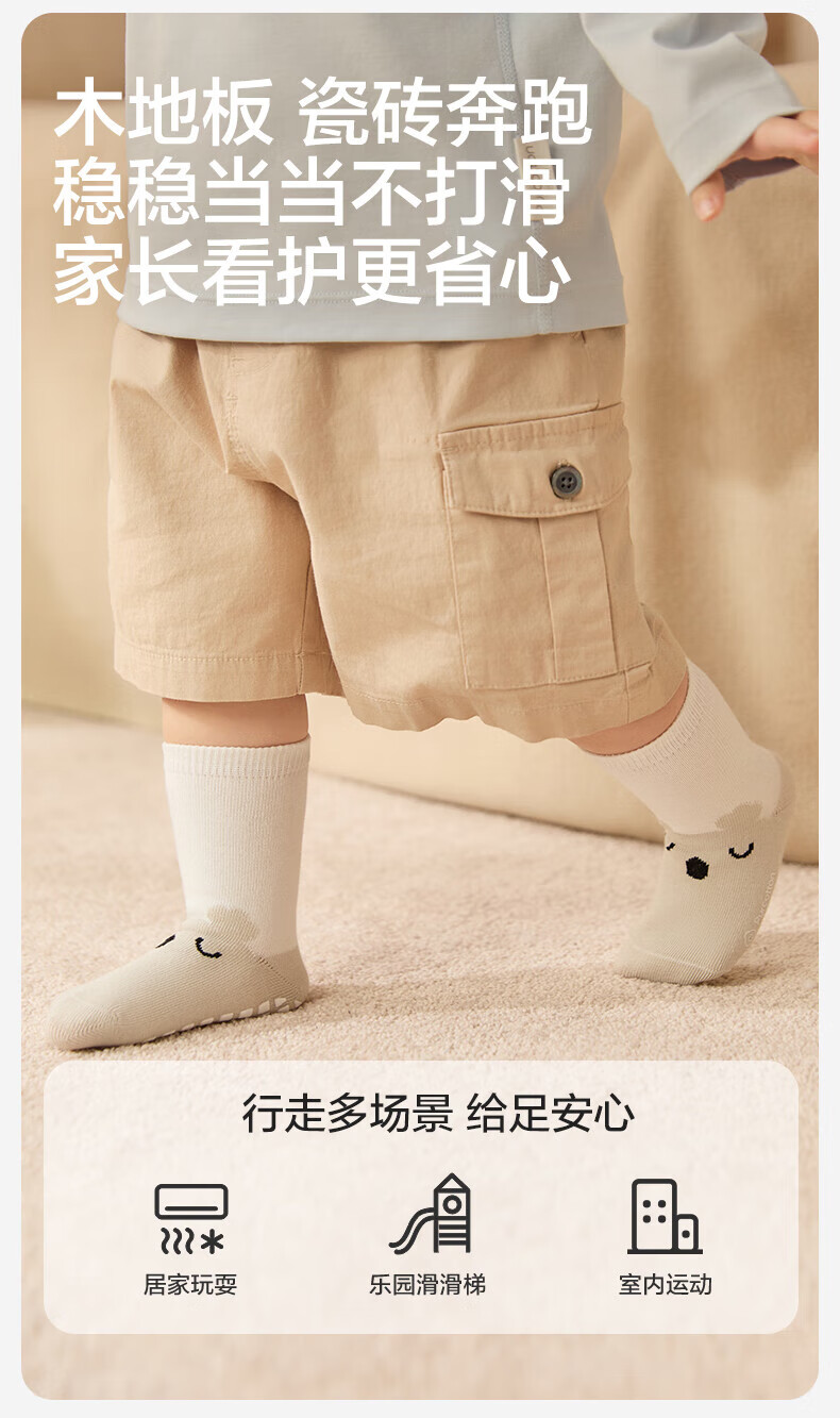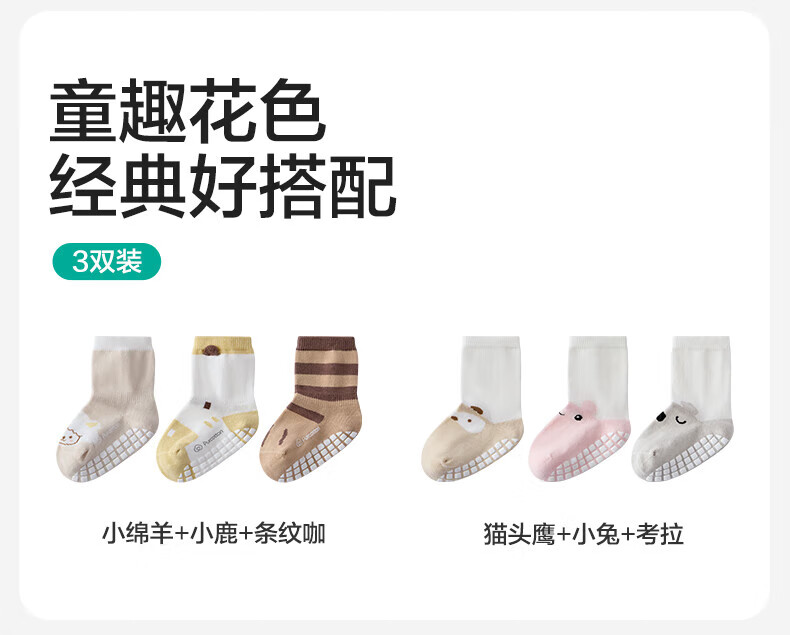 PurCotton Children's Antibacterial Mid-calf Floor Socks Koala + Bunny + Owl 3-5 years old 14cm-16cm