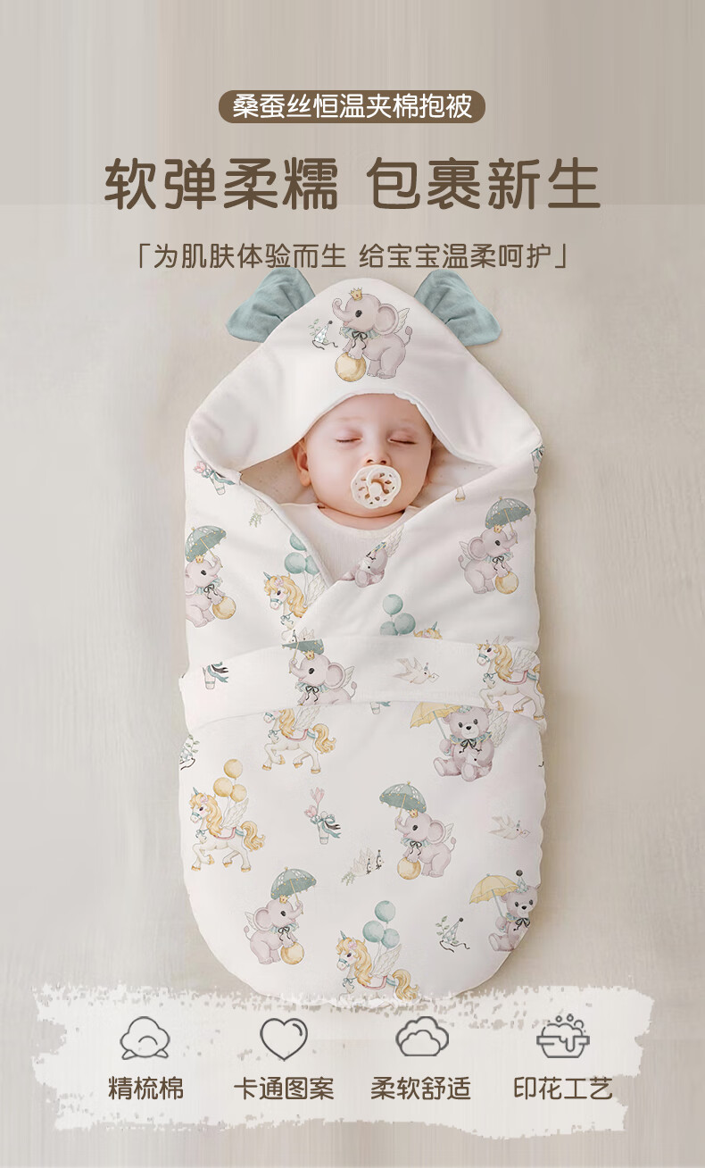 Babyincoming newborn bag, anti-kicking quilt, maternity room quilt, pure cotton summer baby baby bag, anti-jumping spring and autumn warm autumn and winter crepe beanie 650g recommended 5-15 sprinkler baby elephant 90*90cm