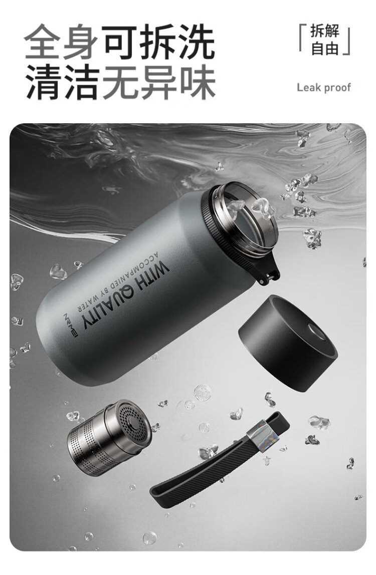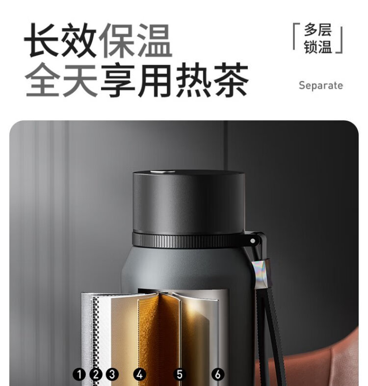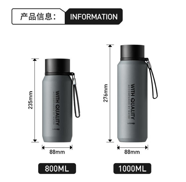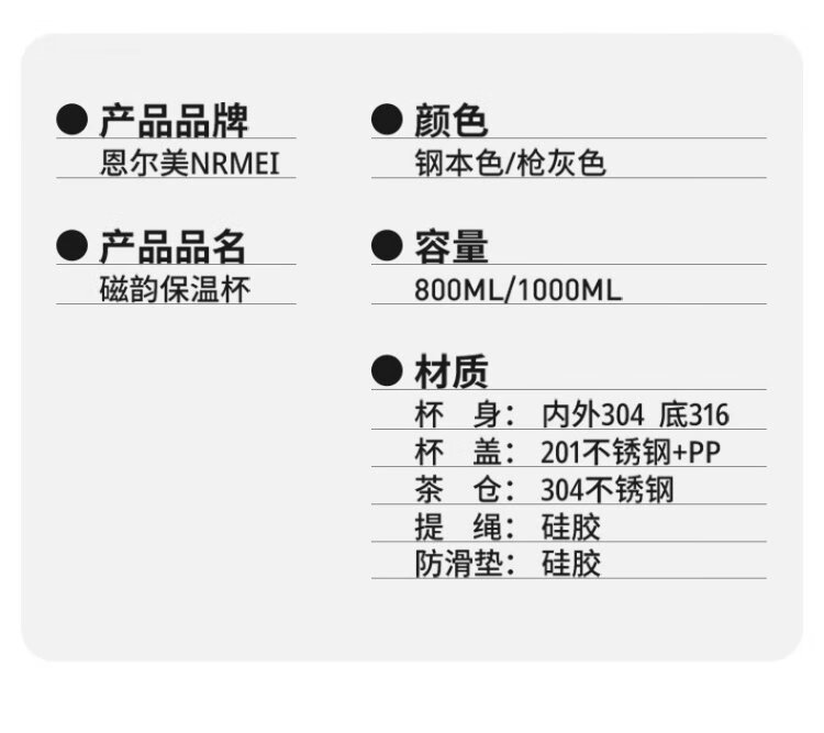 NRMEi large capacity men's thermos cup 316 stewing tea water separation portable car magnetic magnetic bomb thermal insulation kettle cup gun gray 800ml magnetic tea storage + lifting rope