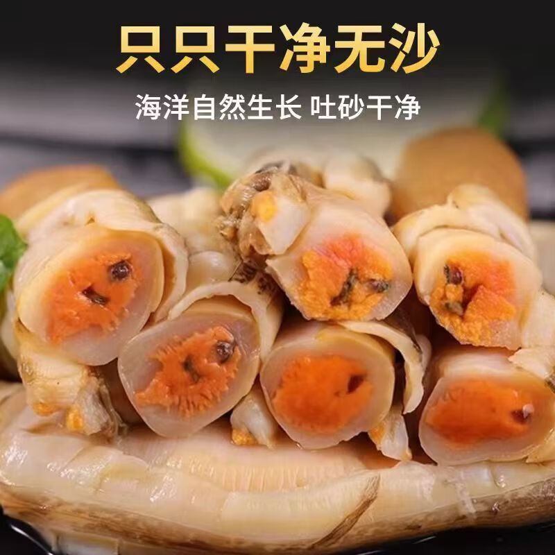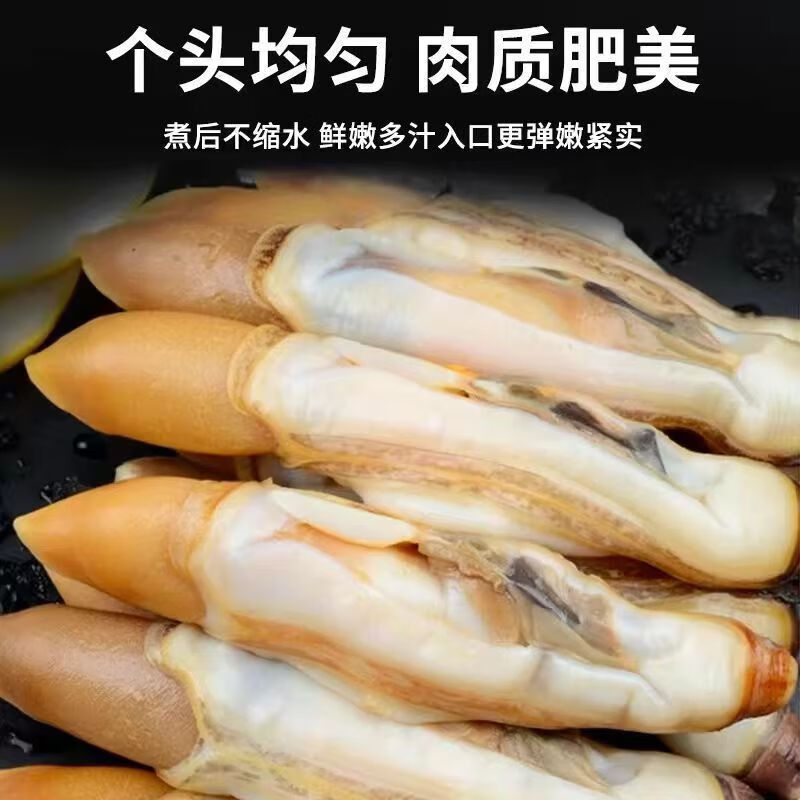 Xianxiang pure fresh quick-frozen large razor clam meat freshly caught freshly peeled without sand and shelled pure meat razor clam meat frozen bamboo razor clam 1250g Frozen razor clam meat per pack 1.25 Jin Jin equals 0.5 kg Total 2.5 Jin Jin equals 0.5 kg