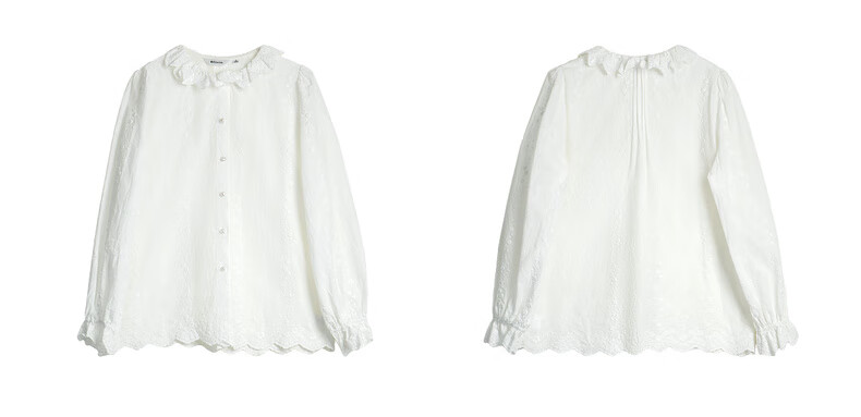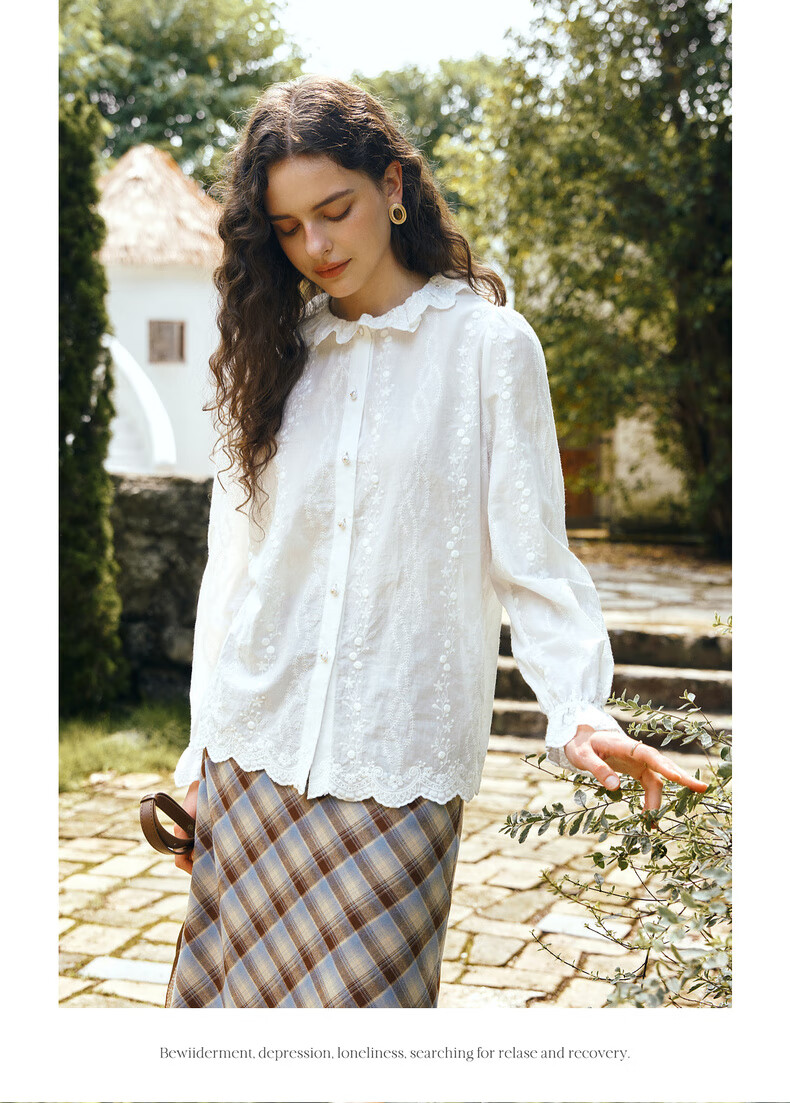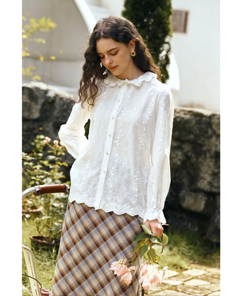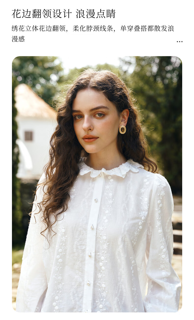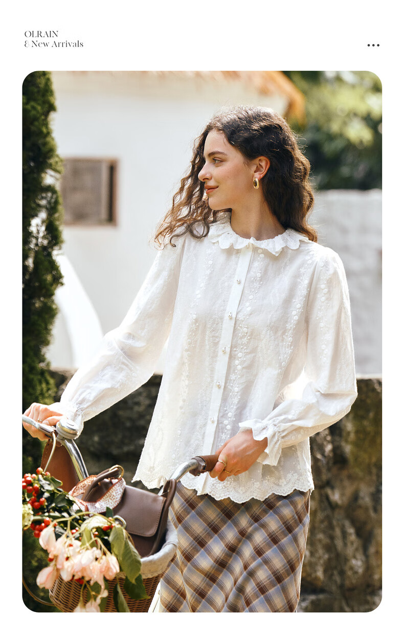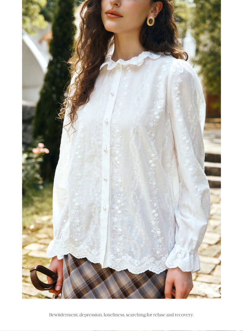 Olrain 50% off clothing French elegant white embroidered shirt autumn 2025 new lace collar chic shirt off-white S