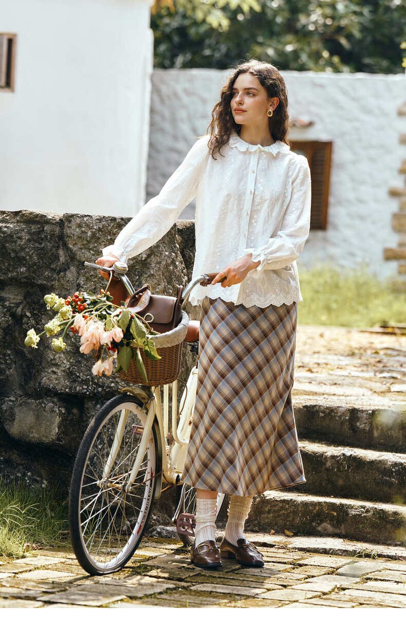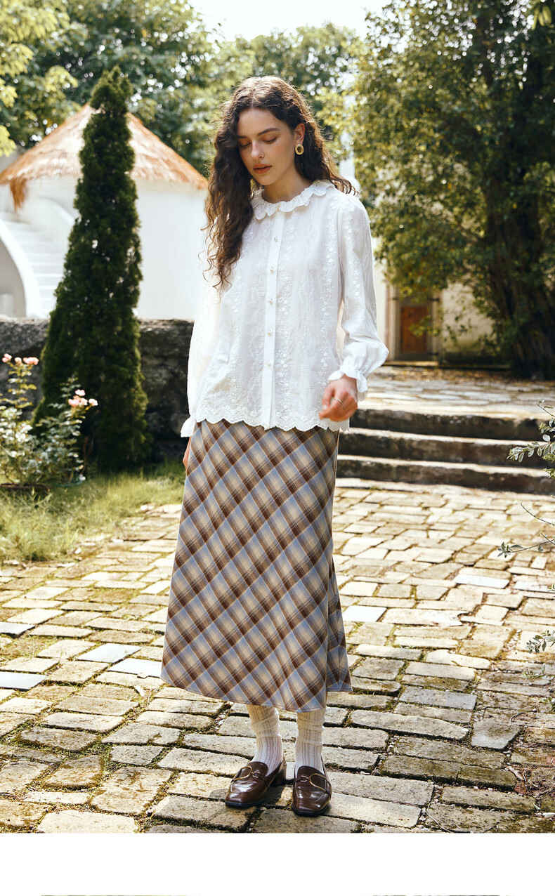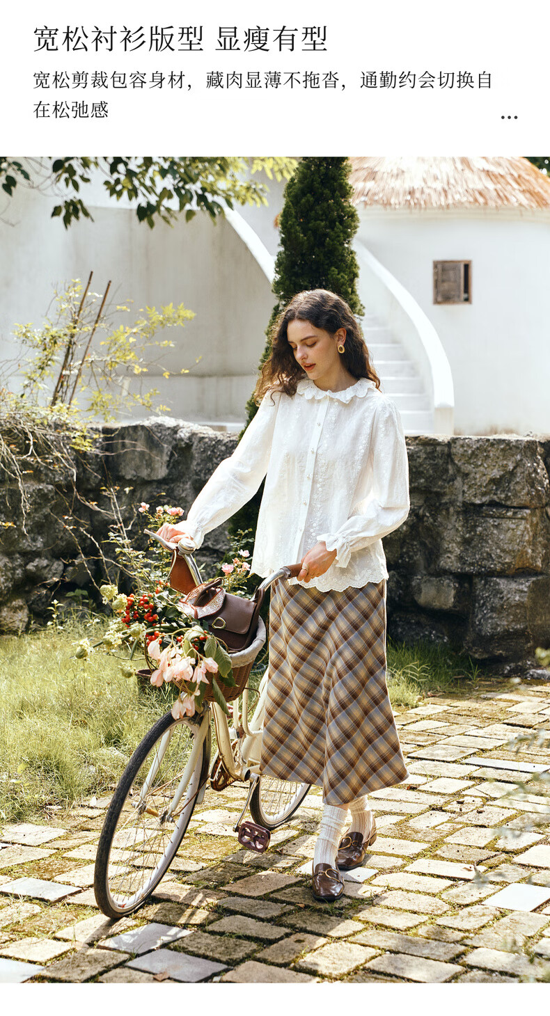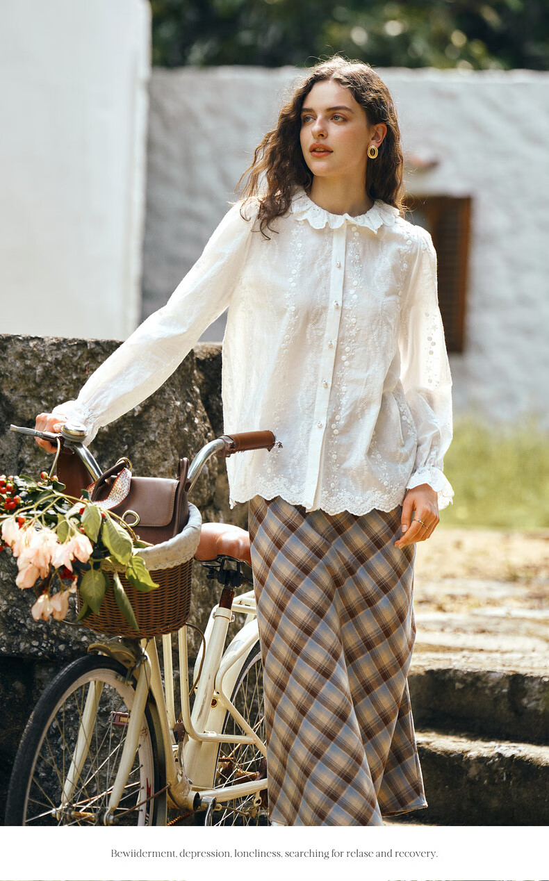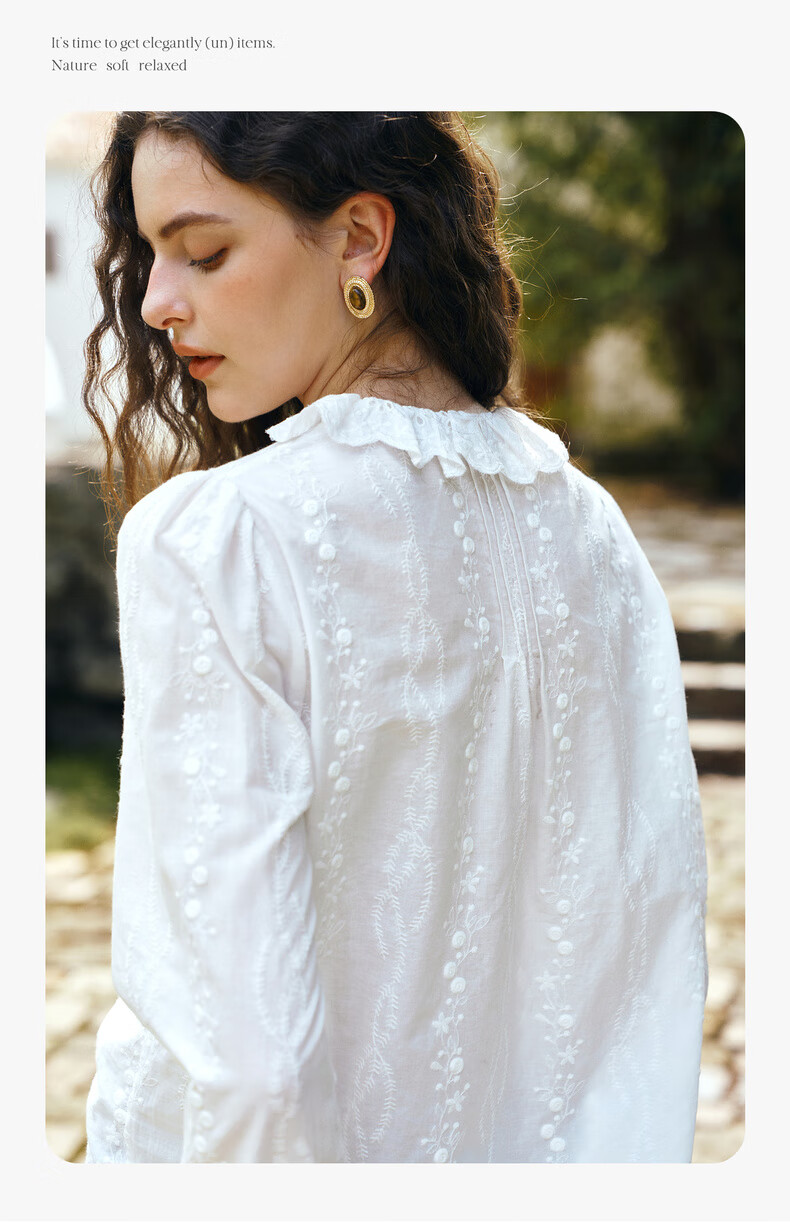 Olrain 50% off clothing French elegant white embroidered shirt autumn 2025 new lace collar chic shirt off-white S