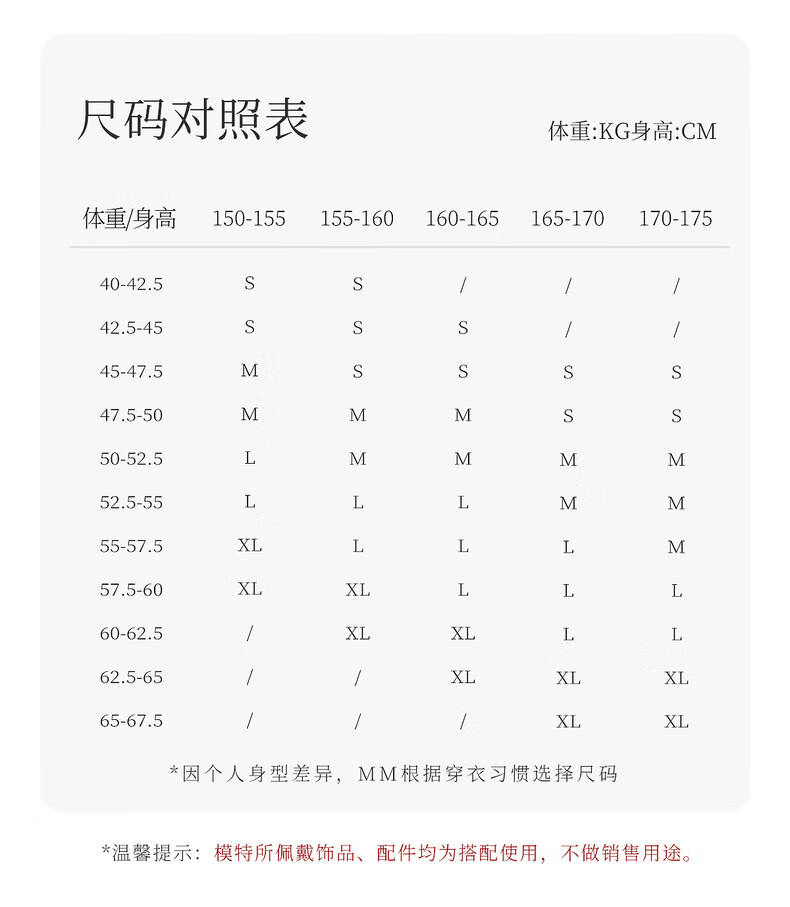 China (cm) 160-165/84-86 165-170 / 88-90 167-172 / 92-96 168-173 / 98-102 170-176 / 106-110