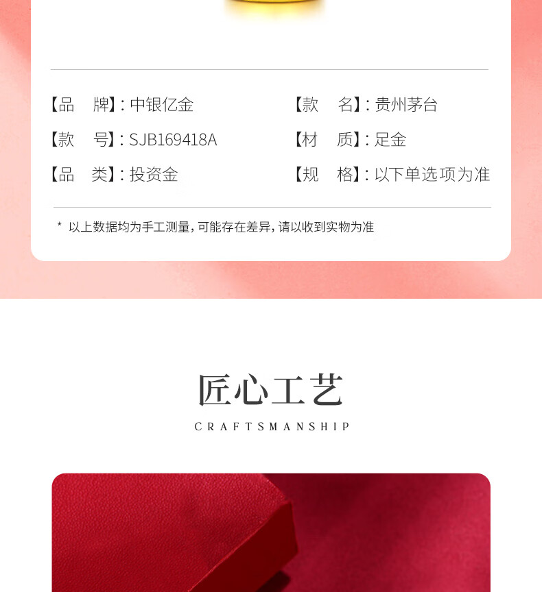 Bank of China Yijin Kweichow Moutai pure gold 999 gold ornaments craft investment gold bean bar collection financial management Chinese Valentine's Day birthday gift Kweichow Moutai ornaments about 11.6g