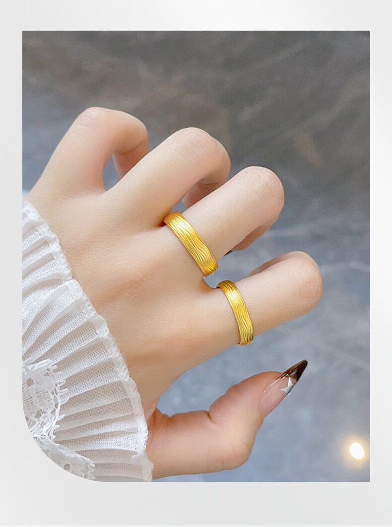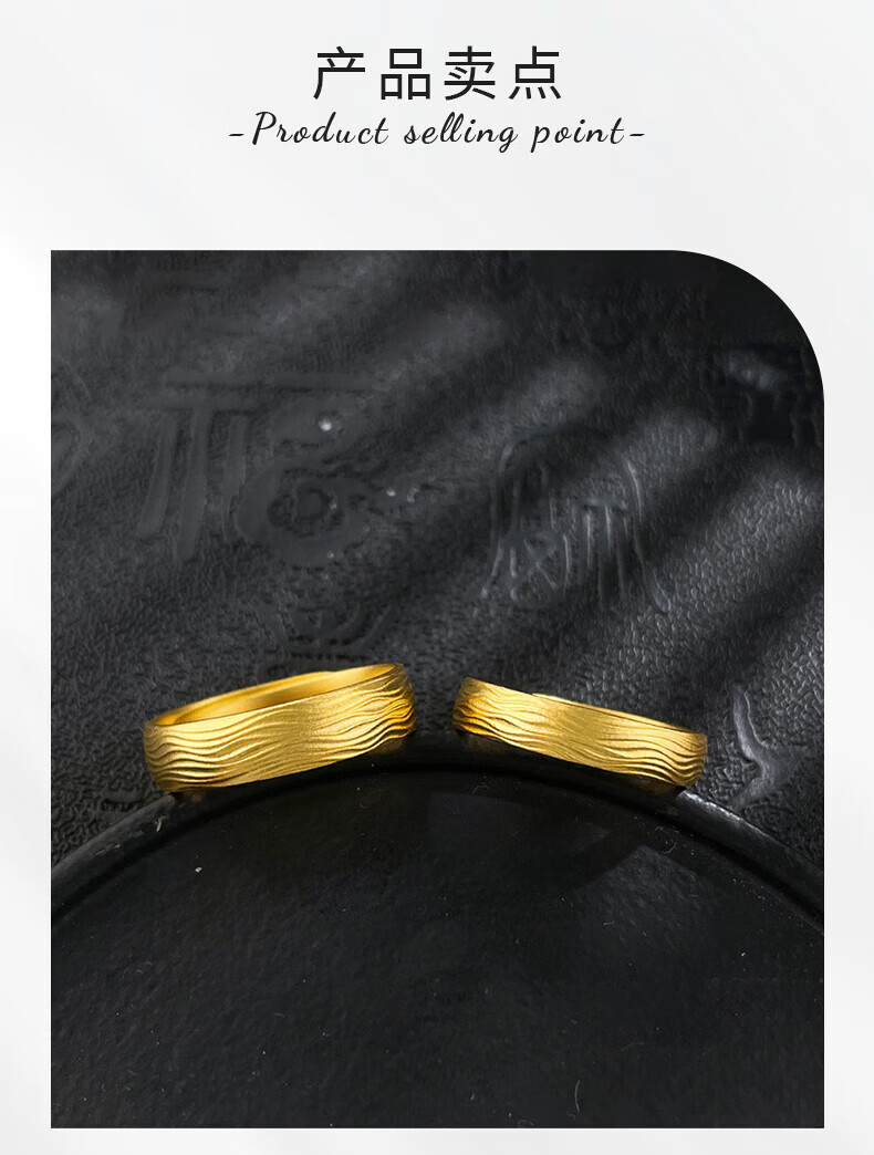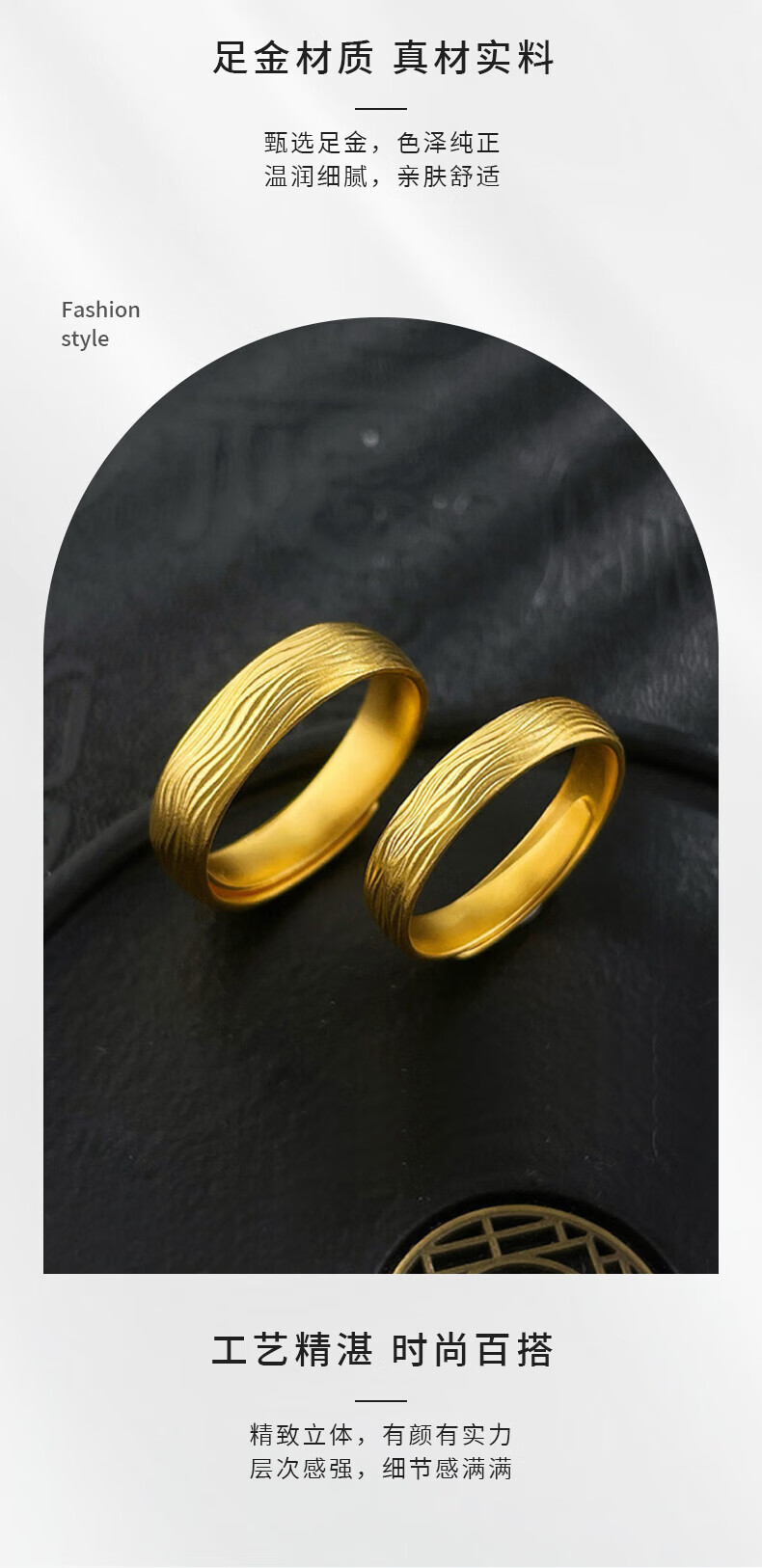 China Gold (CHINA GOLD) gold pair rings, ancient gold smooth ripple rings, couple rings, engagement, wedding, girlfriend's birthday gift, one pair, about 11.57g