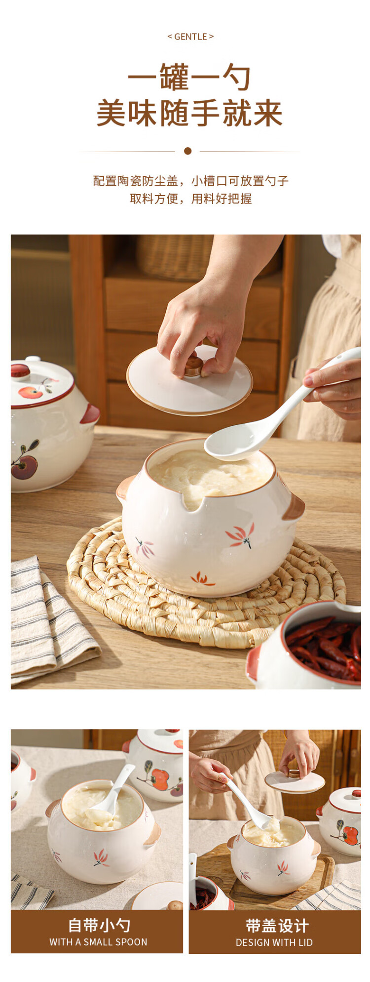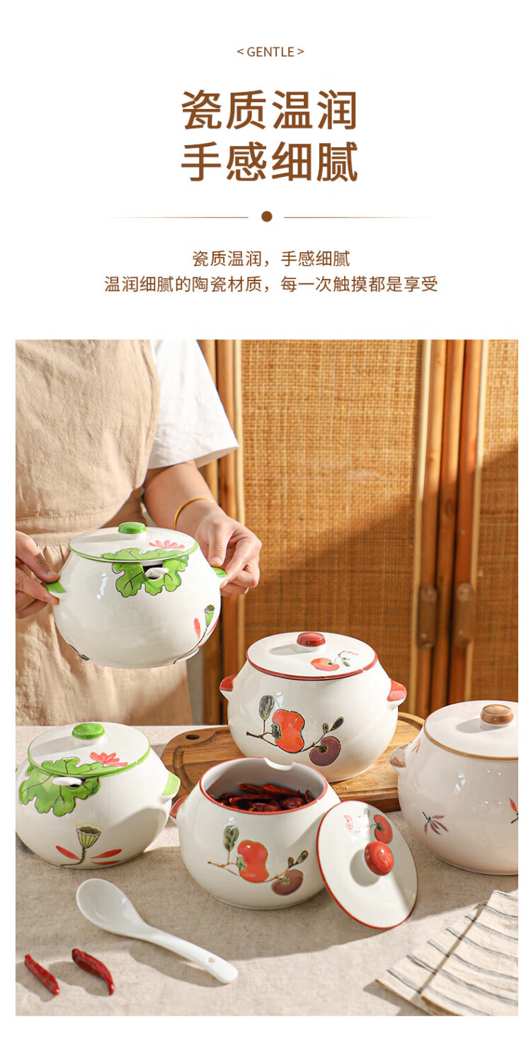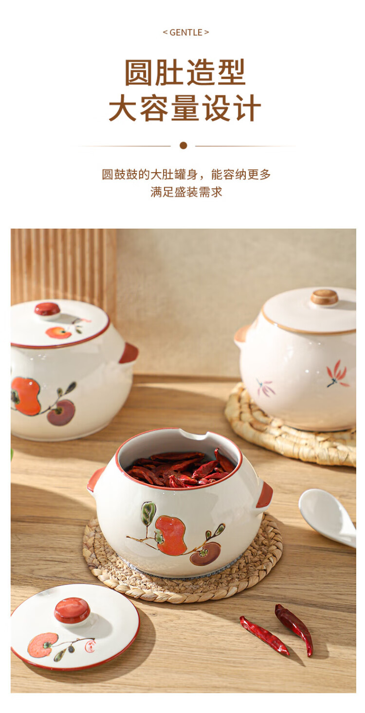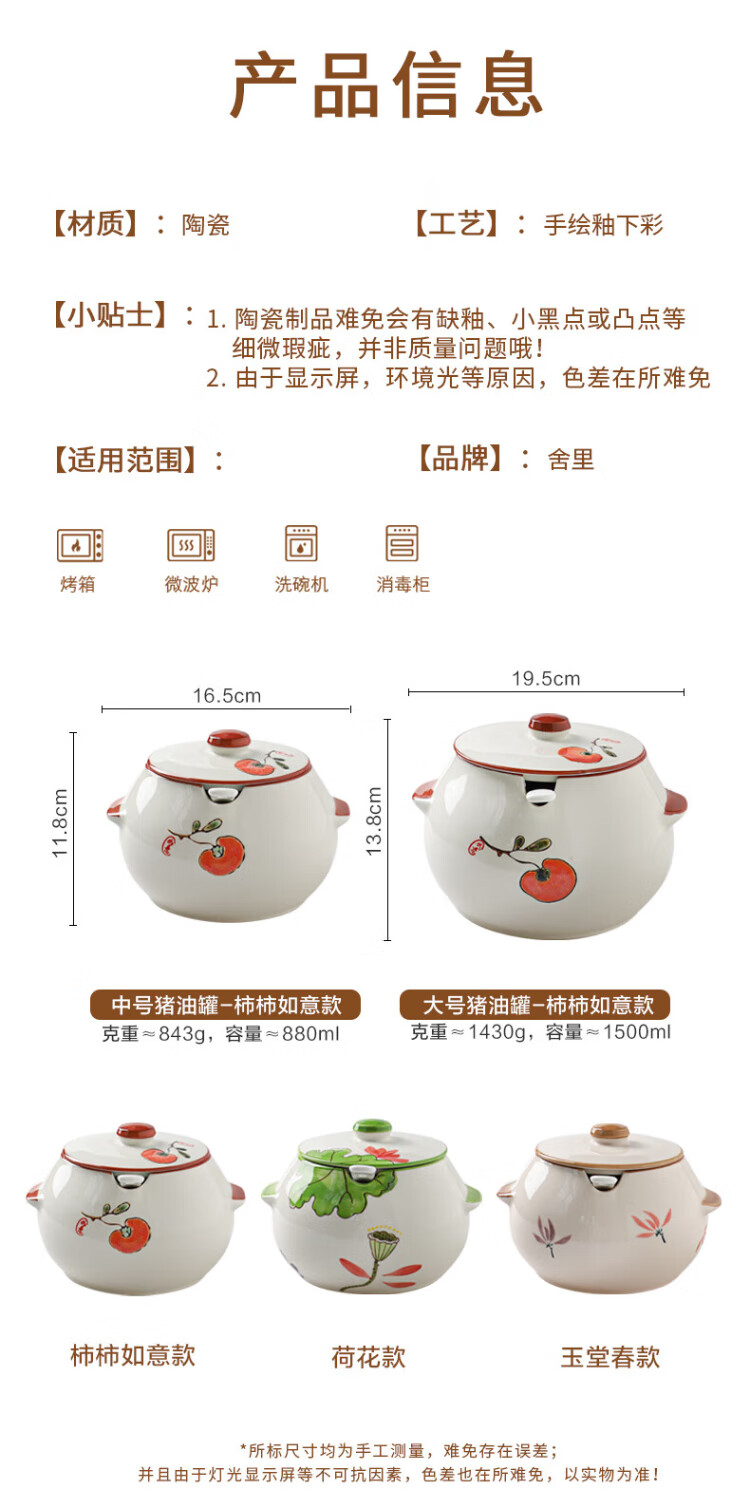 Sheli ceramic lard can with lid, high temperature resistance, household oil pot with lid, oil pot, seasoning jar, chili oil special medium lard pot 880ML - lotus style, with lid and spoon | can pour boiling oil