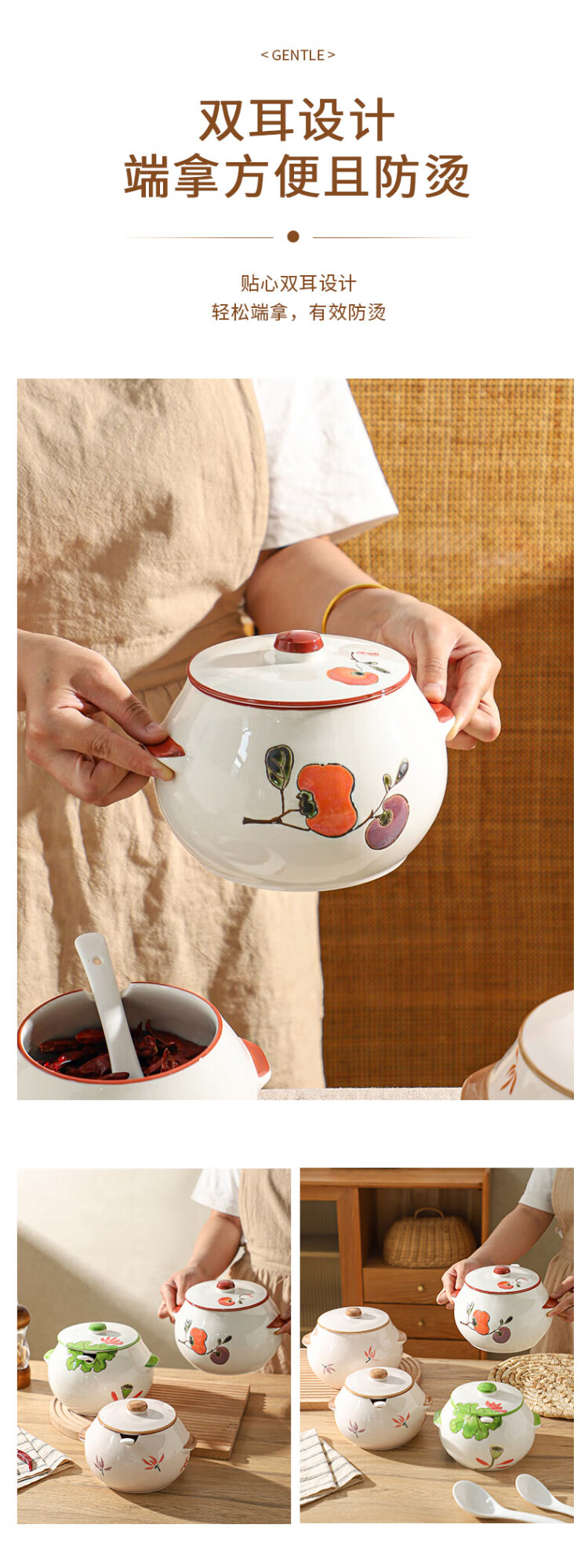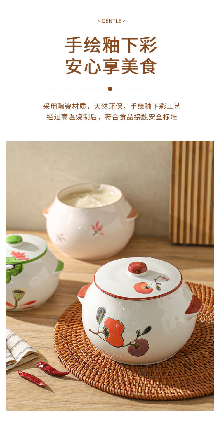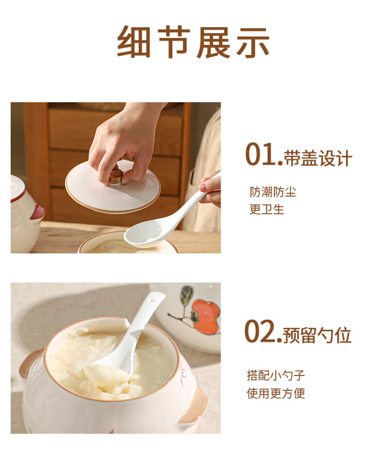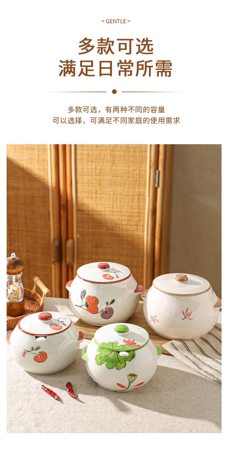 Sheli ceramic lard can with lid, high temperature resistance, household oil pot with lid, oil pot, seasoning jar, chili oil special medium lard pot 880ML - lotus style, with lid and spoon | can pour boiling oil