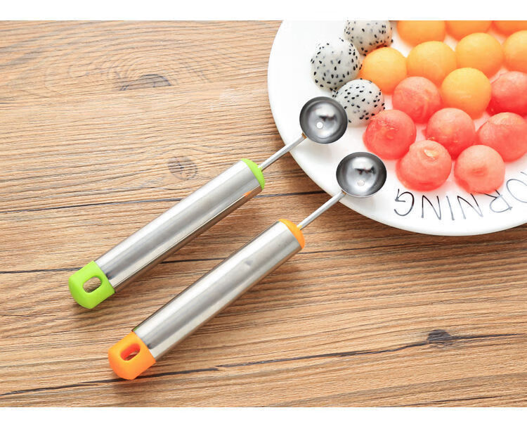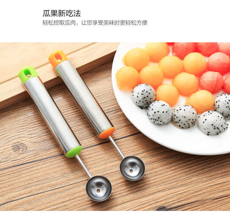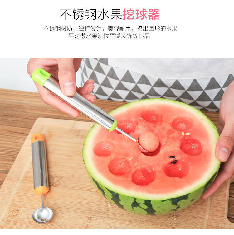 Rice-harvesting fruit fork, stainless steel watermelon fruit cutter, ice cream ball scoop, multi-functional fruit scoop scoop, carved ball scoop - green