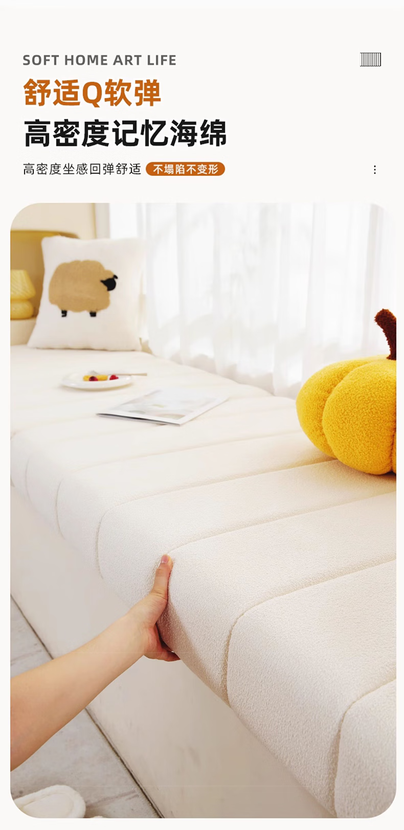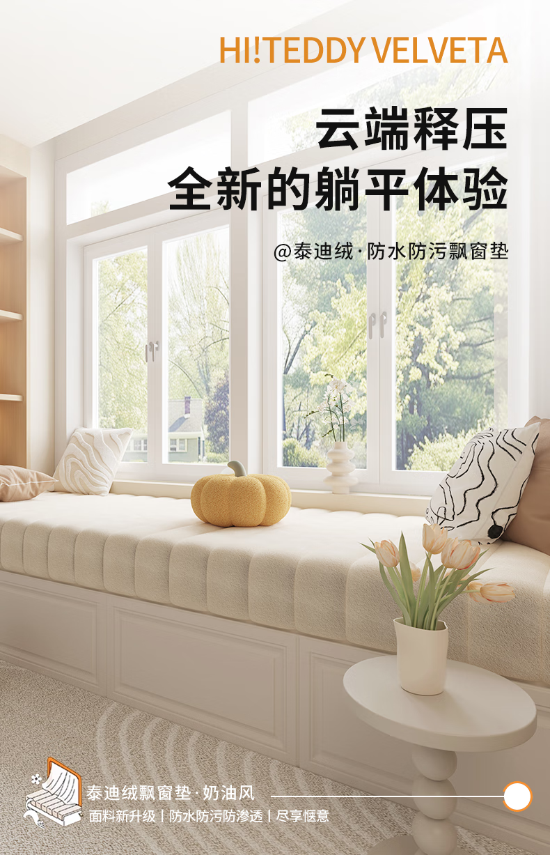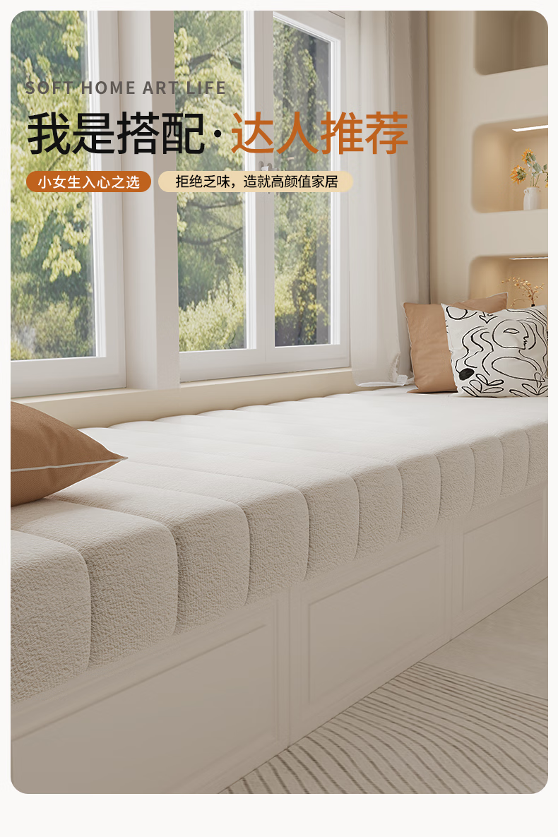 Versatile impression removable and washable teddy velvet bay window mat window sill mat universal for all seasons high-end 2025 new balcony mat customized milk white tile style customized size contact customer service