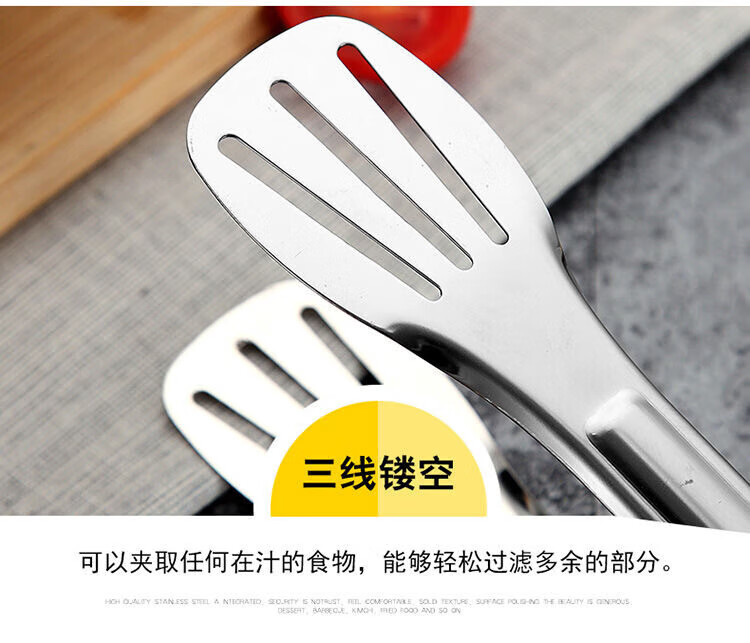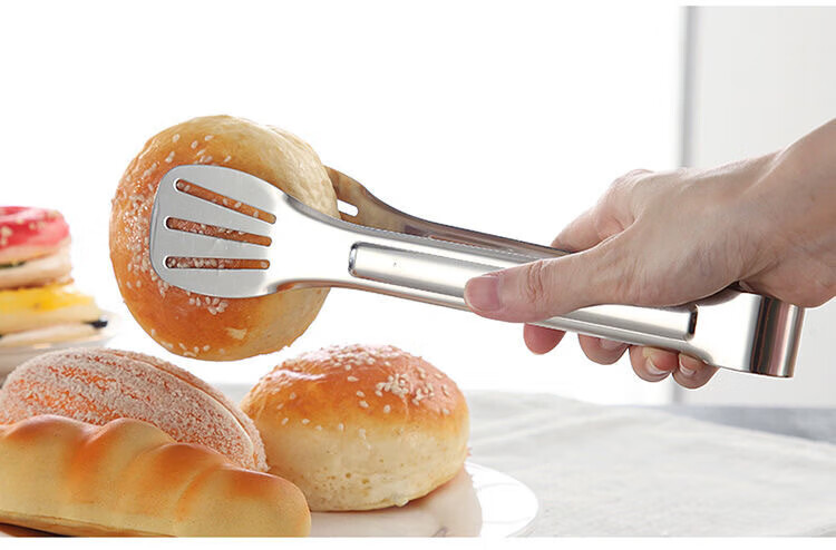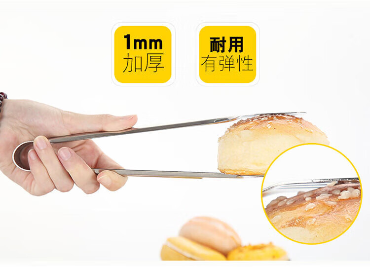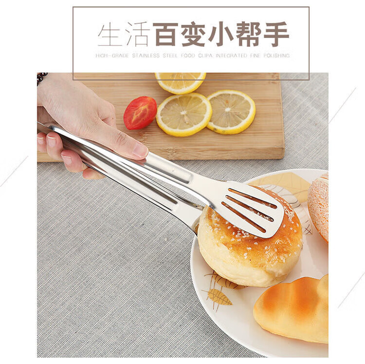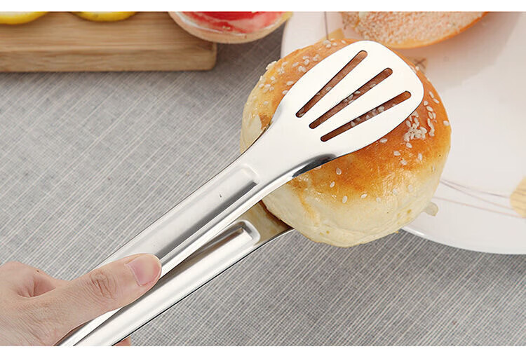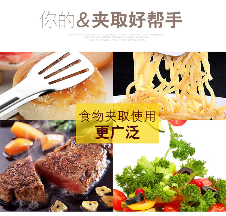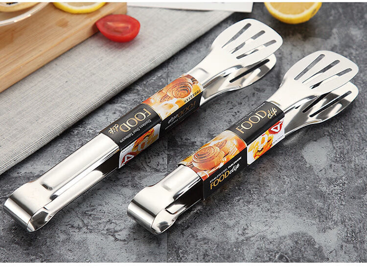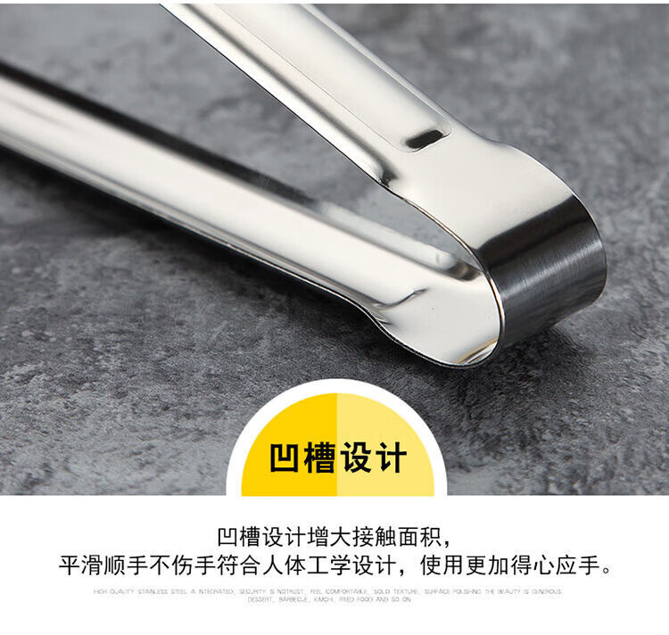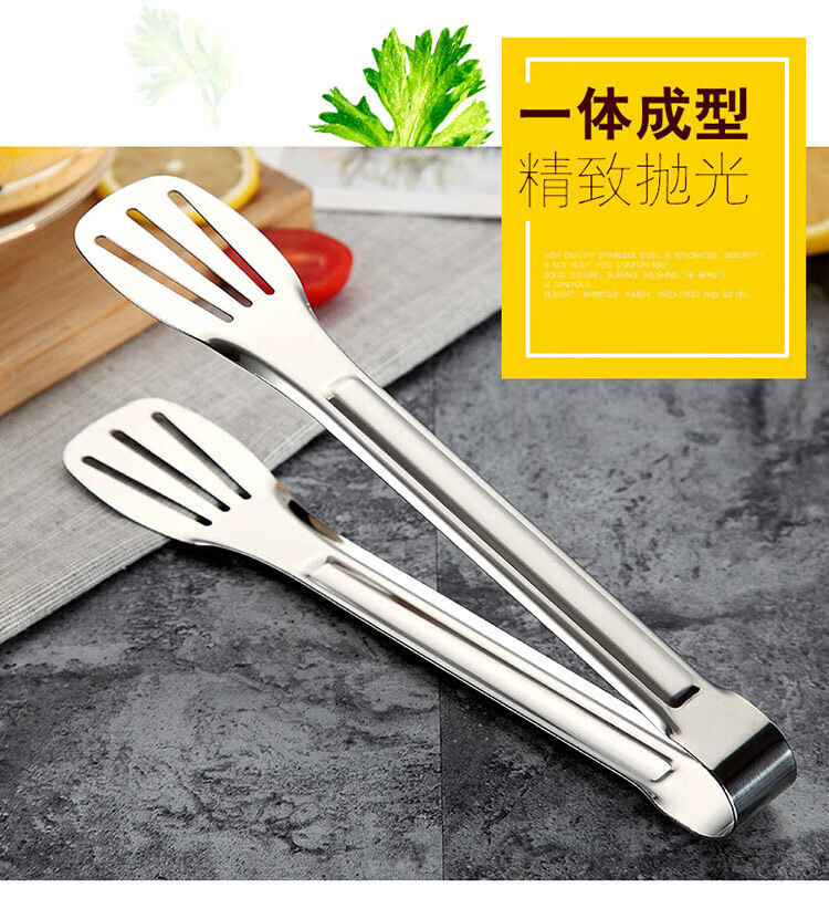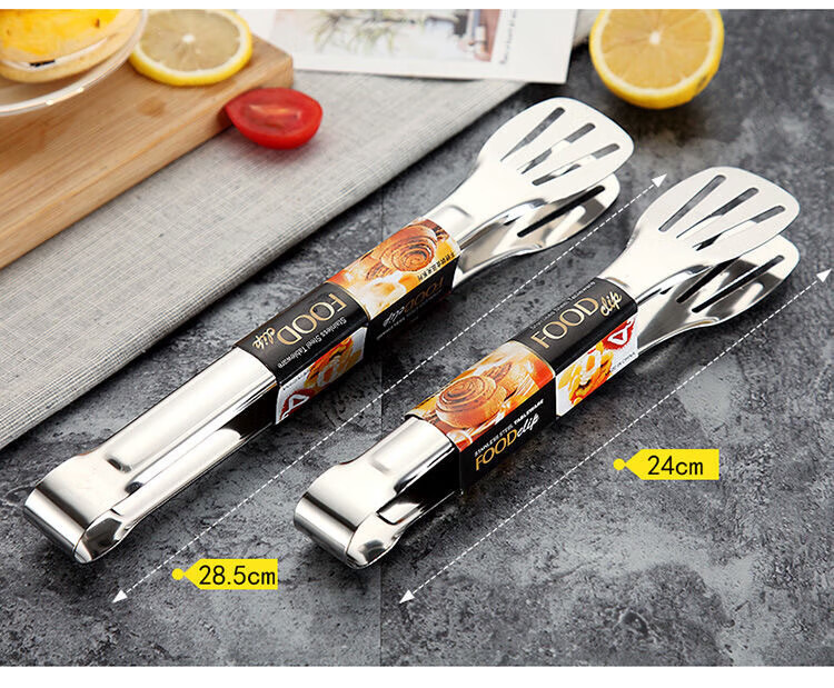 Jidaocook304 stainless steel integrated food tongs kitchen extended thickened pancake barbecue food barbecue steak tongs small food tongs 24cm