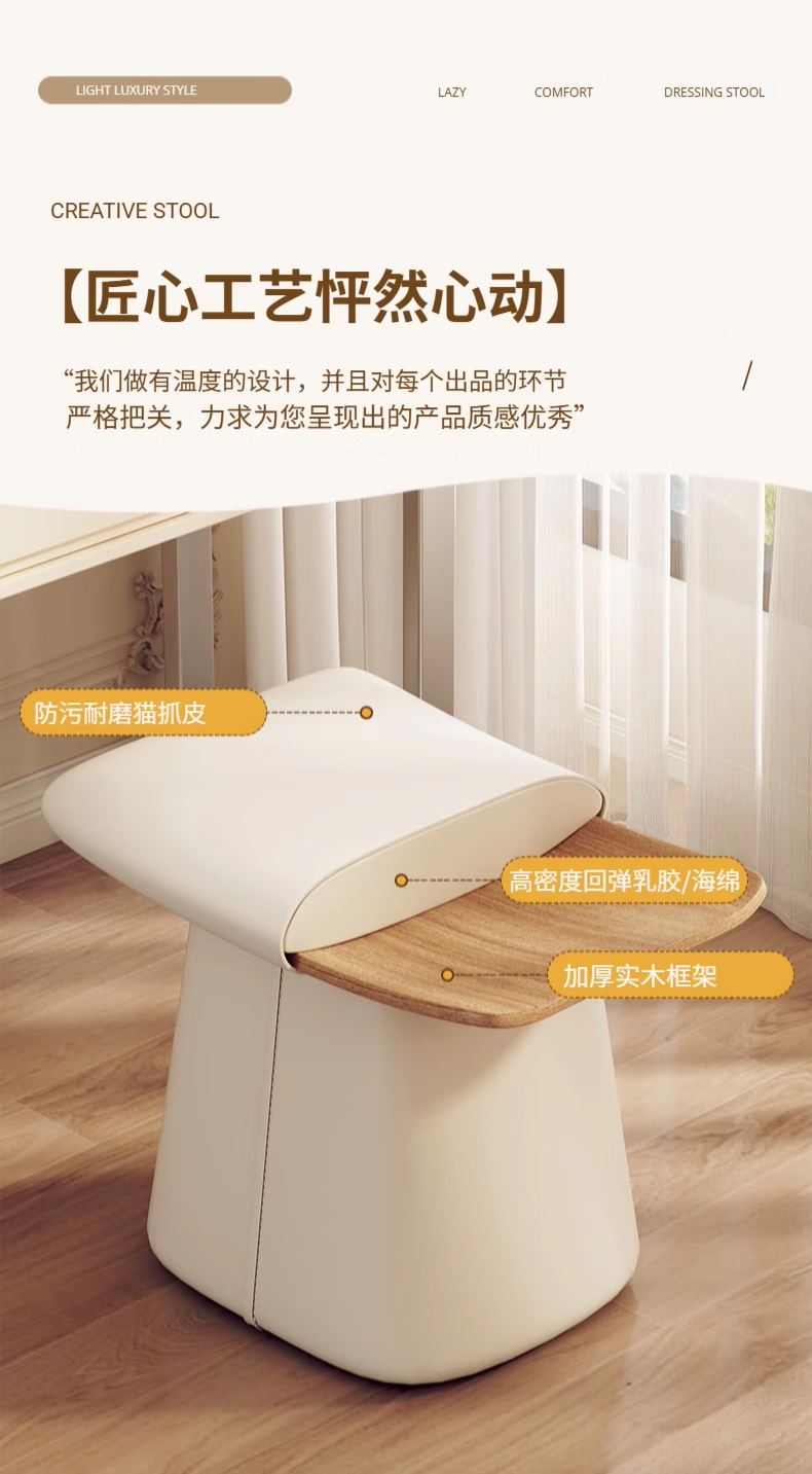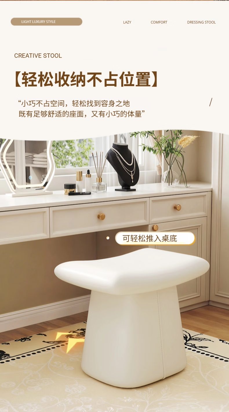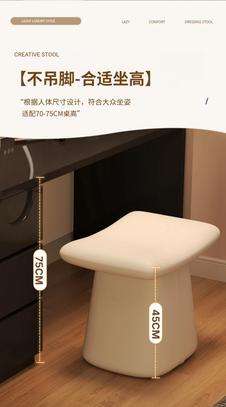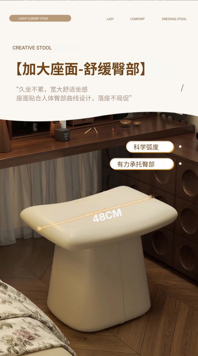 2025 New Dressing Stool Master Bedroom Dressing Table Makeup Stool Leather Chair Light Luxury High-end Saddle Stool Upholstered Stool High Resilience Sponge Beige 48*33*45CM