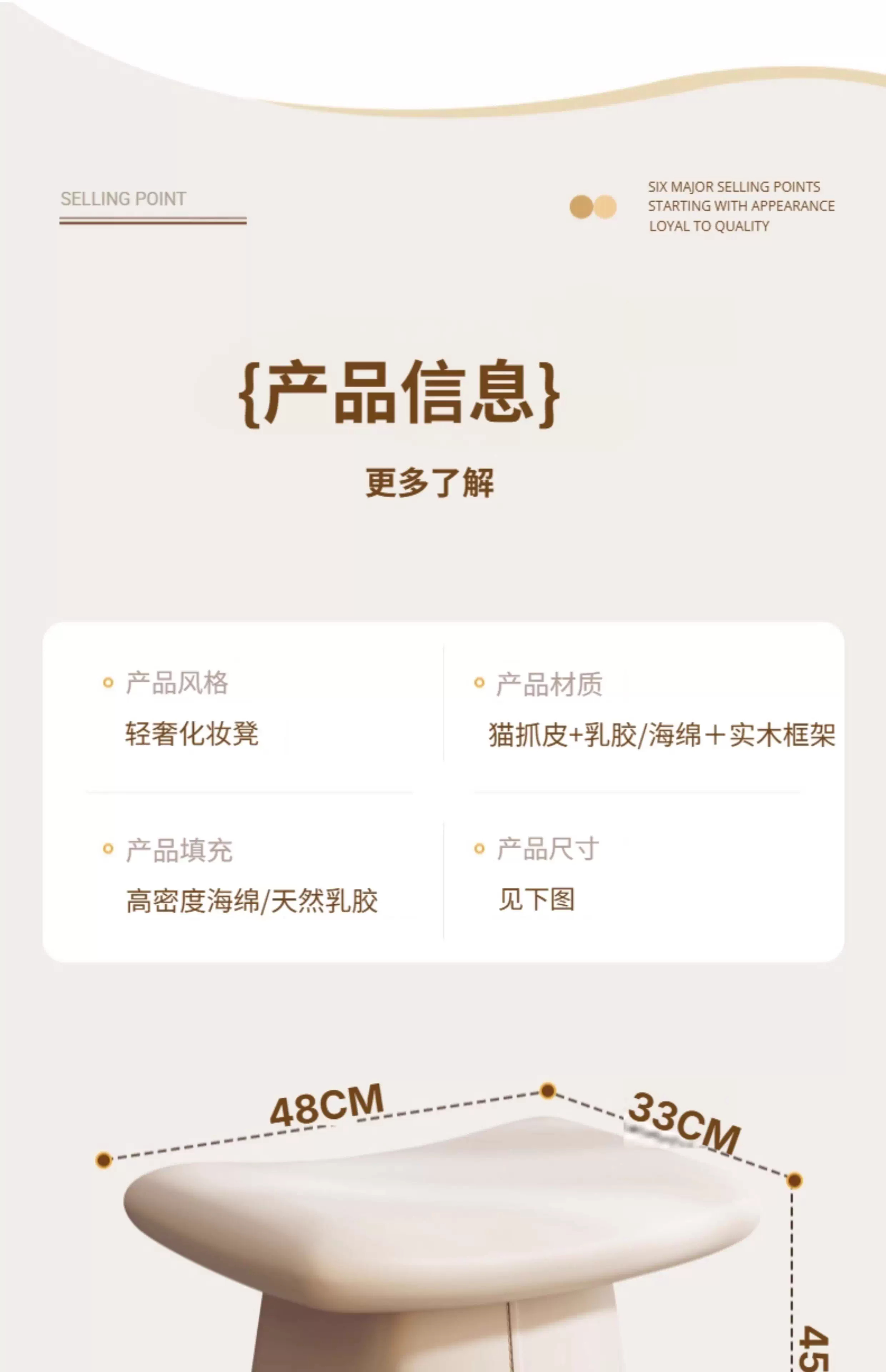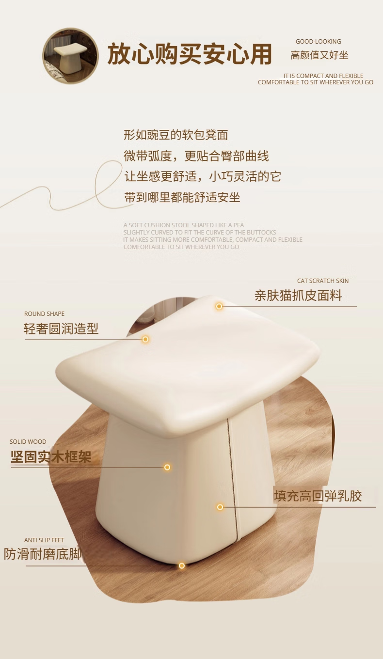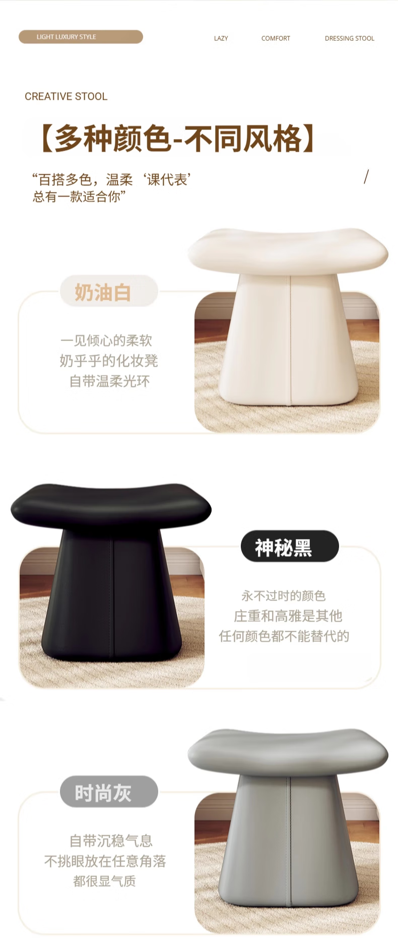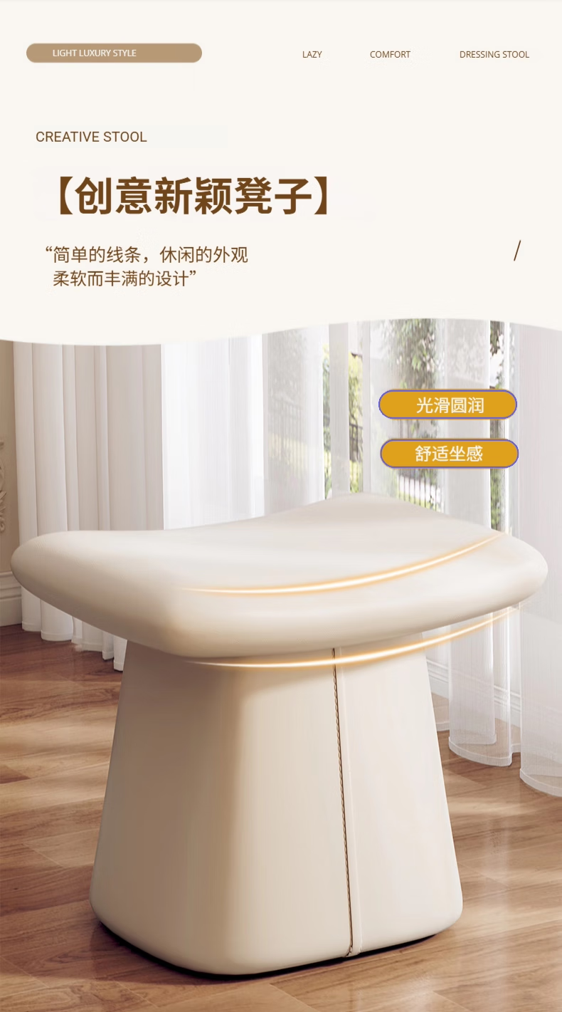 2025 New Dressing Stool Master Bedroom Dressing Table Makeup Stool Leather Chair Light Luxury High-end Saddle Stool Upholstered Stool High Resilience Sponge Beige 48*33*45CM