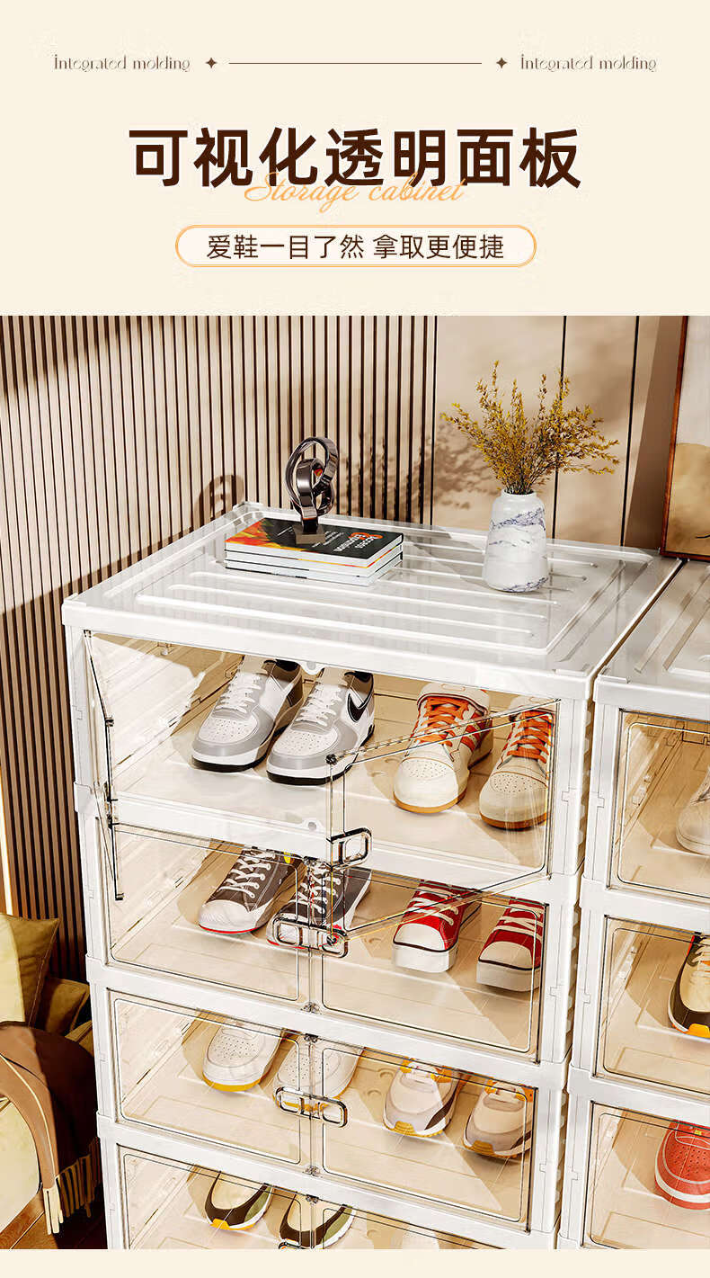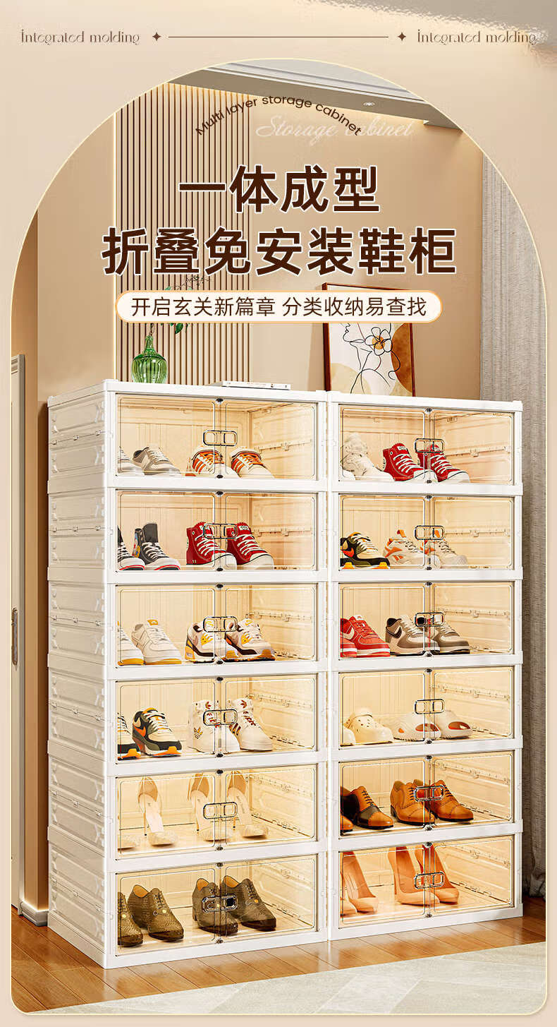 Ling Yuxun shoe box storage box transparent installation-free shoe cabinet all-in-one home door folding shoe rack for shoe storage artifact 1 column 8 layers can hold 16 pairs of shoes magnetic opening/dustproof and breathable