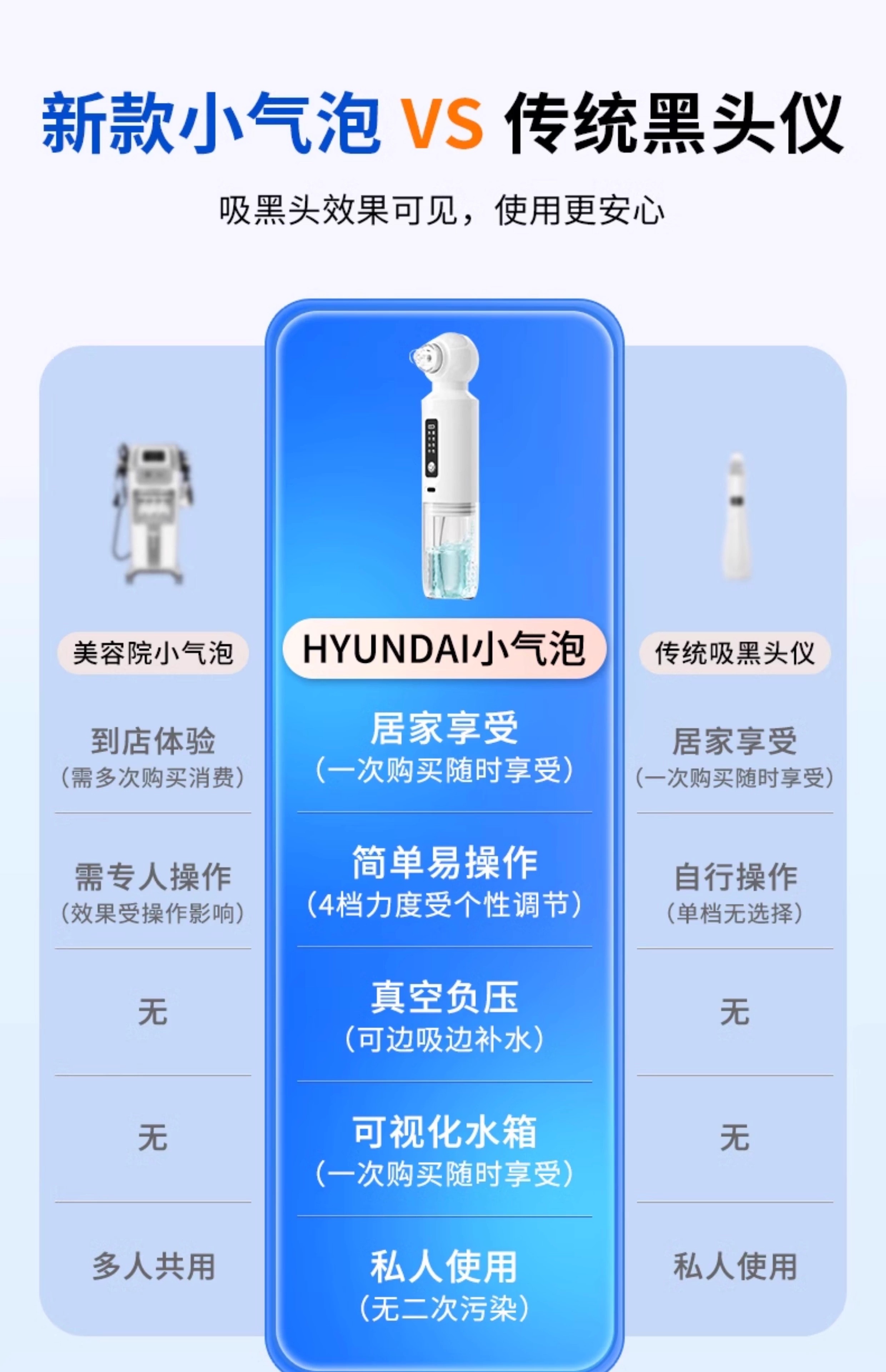 HYUNDAI small bubble cleaning and beauty instrument blackhead extractor blackhead suction instrument nose pore electric facial cleanser acne cleaner birthday gift for boyfriend and girlfriend Exclusive model comes with hot compress + bubble water + LED display + 3-year warranty