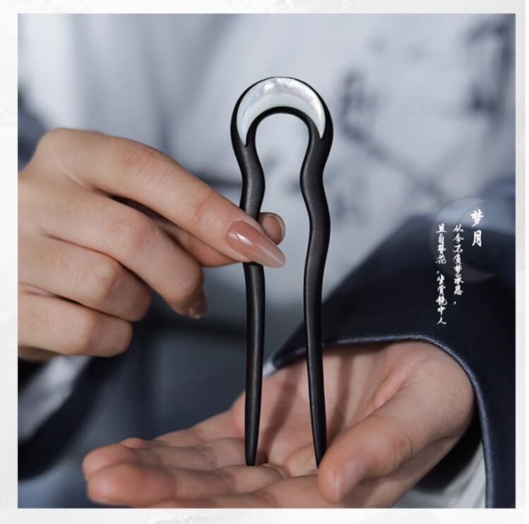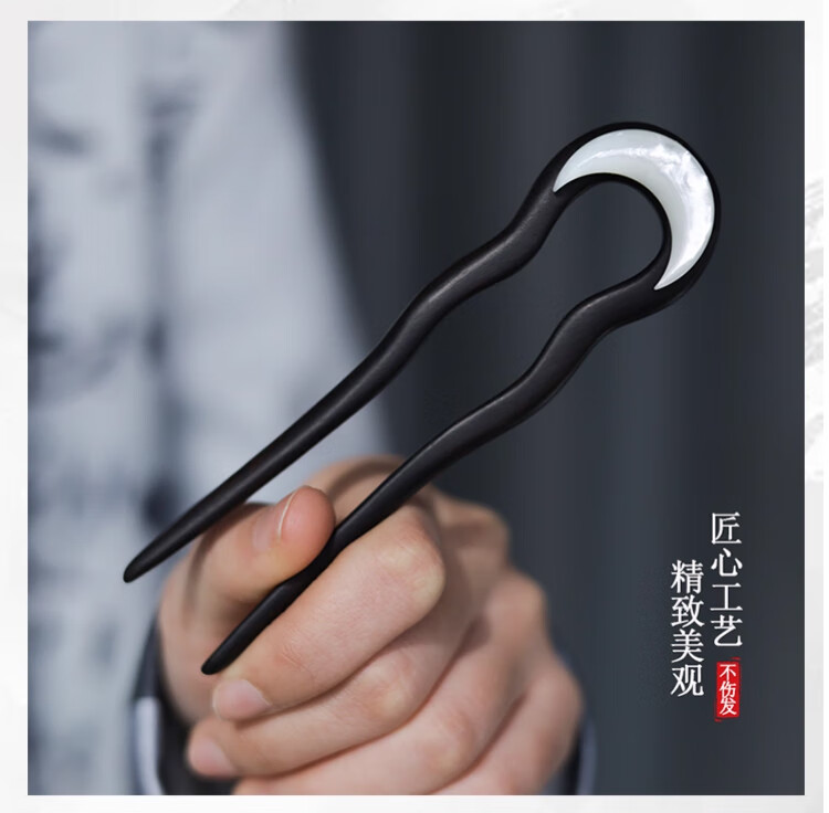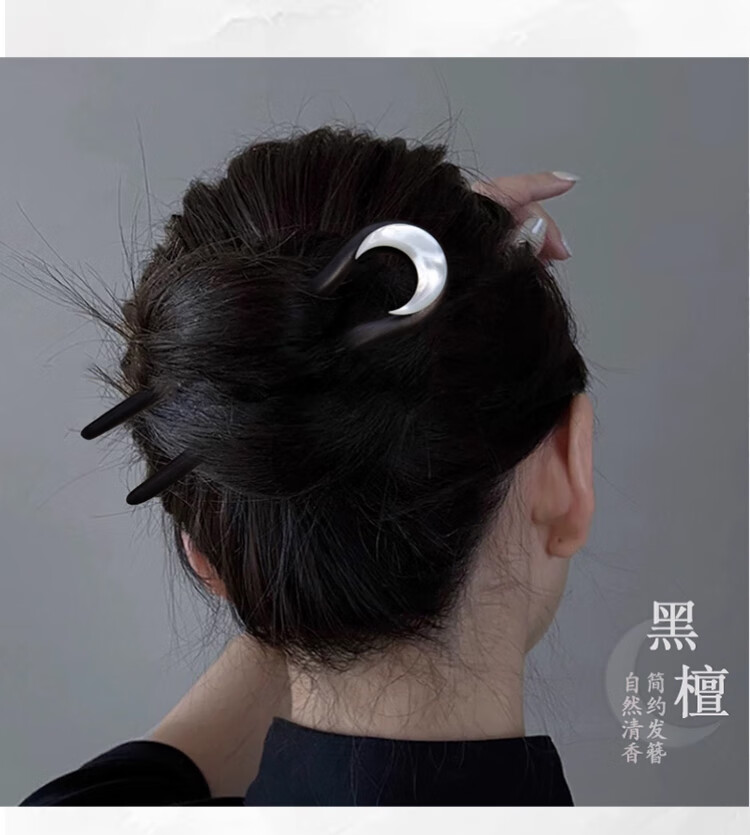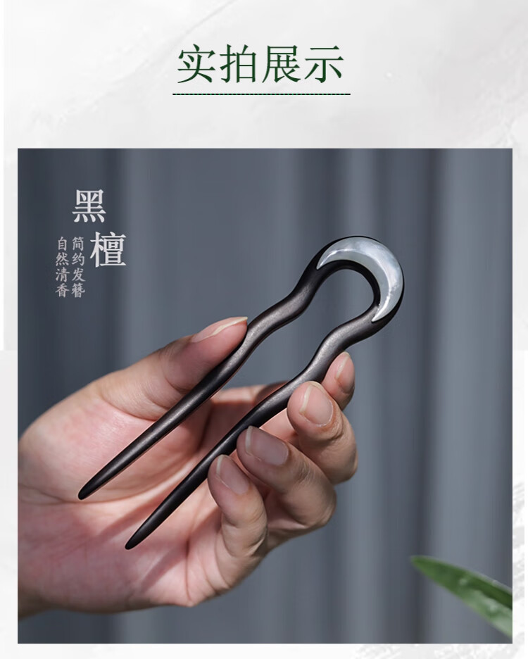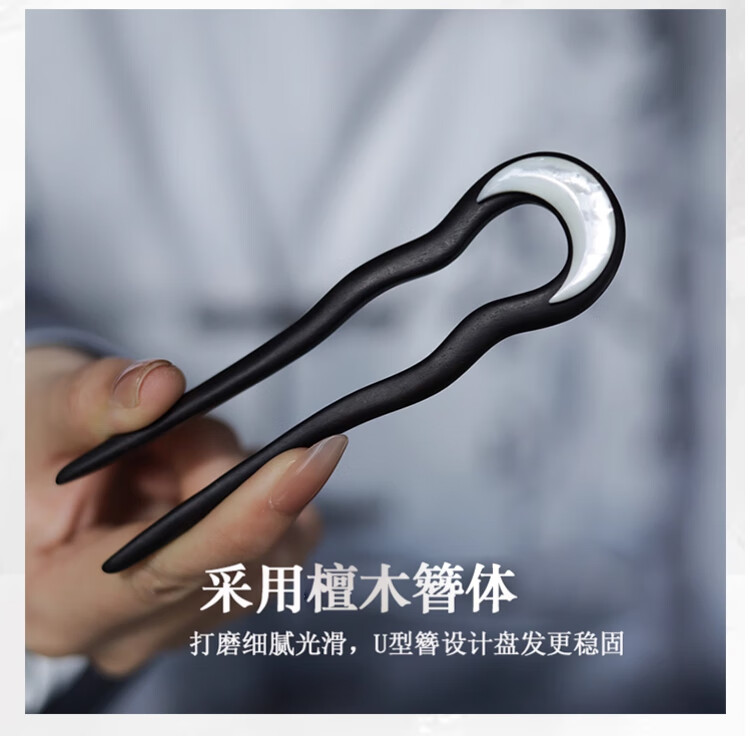 Idel 2025 new high-end new Chinese style ebony hairpin U-shaped high-end daily commuting wooden hairpin hair comb F3492 moon shell hairpin
