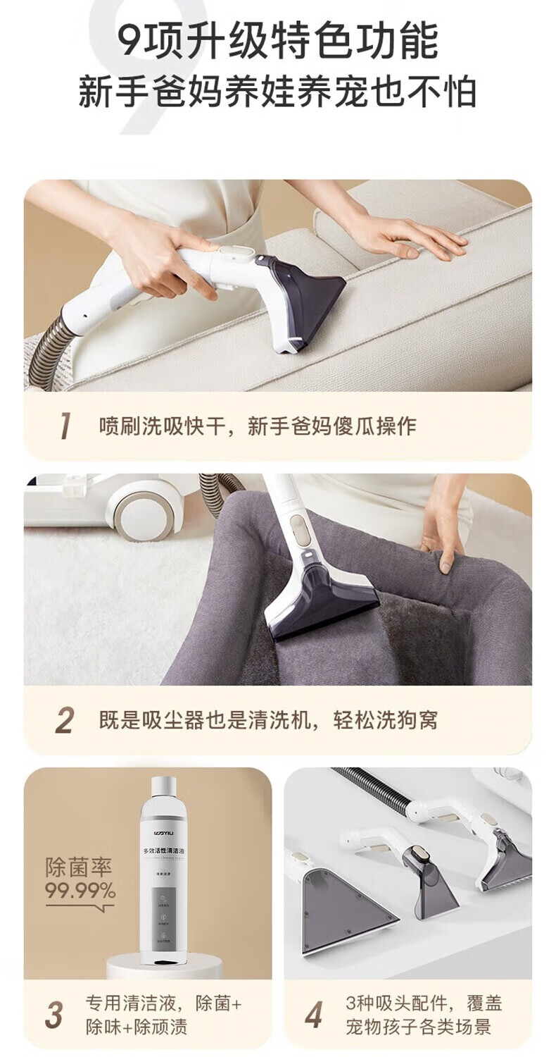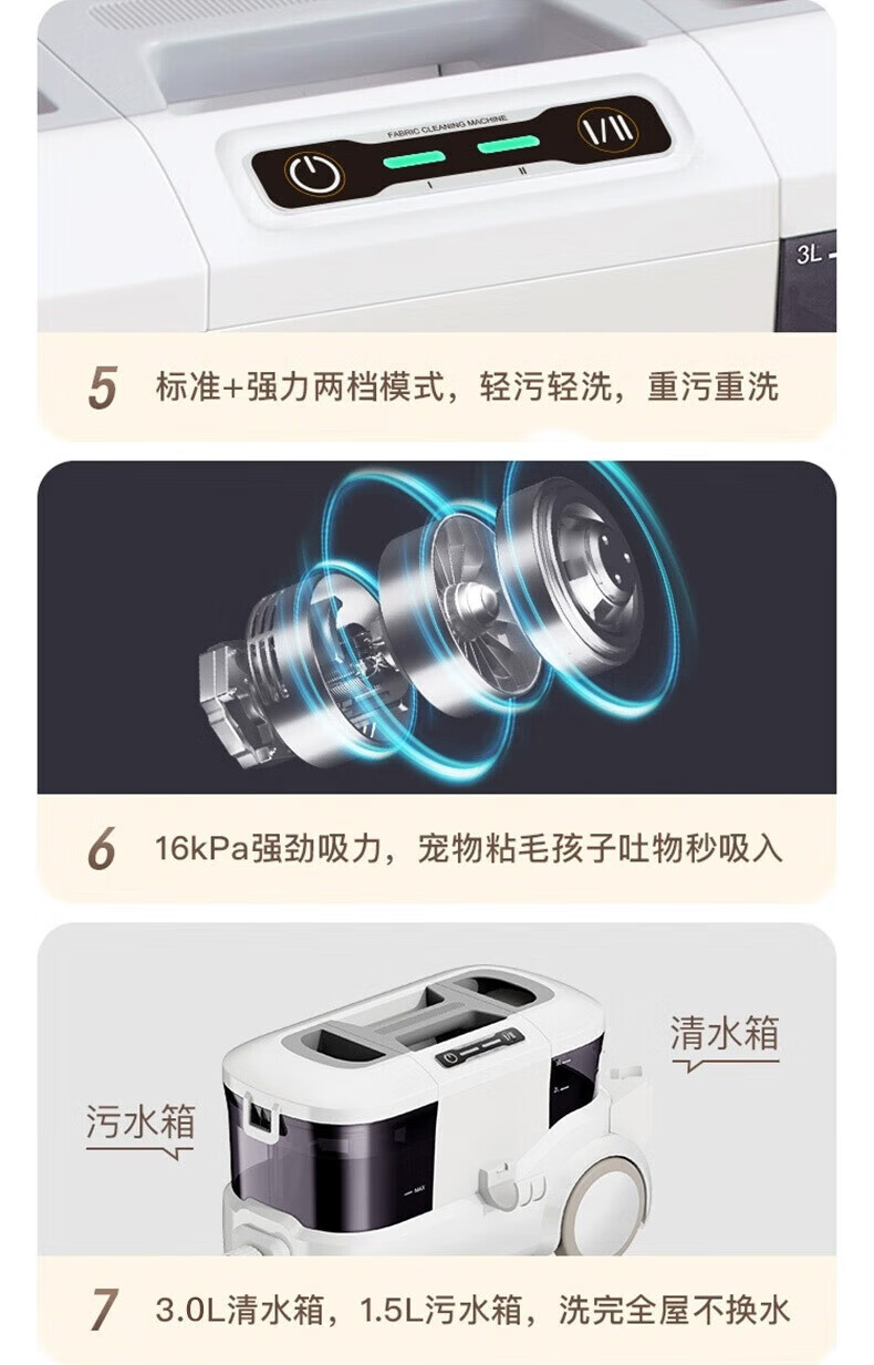Yili cloth cleaning machine household vacuum cleaner multi-function large suction carpet cleaning sofa curtain mattress cleaning machine magic spray suction all-in-one machine with rollers movable 6338 Multi-function vacuum cleaner/fabric cleaning machine with rollers movable 6338 Brand top vacuum cleaner + 30 days trial machine + 6 periods of interest-free + 1 year quality damage replacement